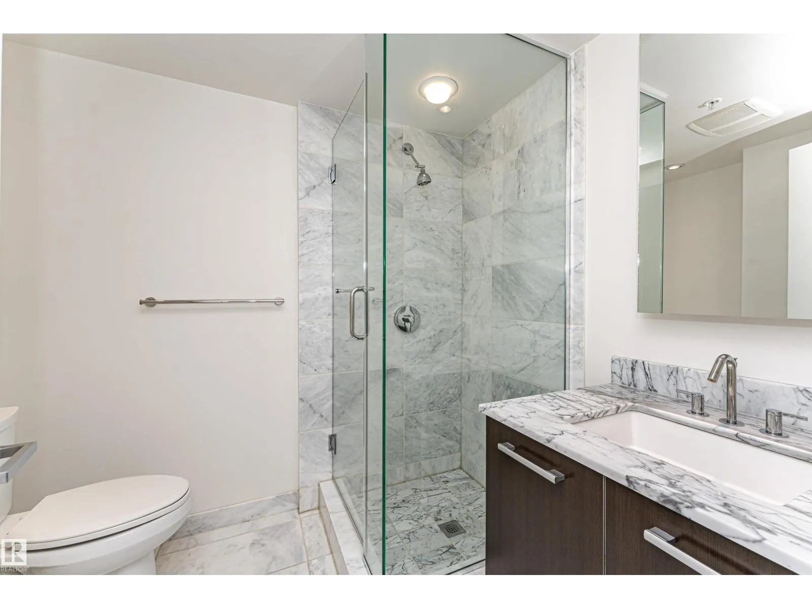 This exceptional unit offers 847 sq. ft. of comfortable living space, featuring 2 bedrooms, 2 bathrooms, in-suite laundry, titled storage locker (#106), and a titled heated Underground parking (#68). The kitchen is equipped with granite countertop, a breakfast eating bar, and stainless-steel appliances. The bright, open-concept living room boasts sliding doors leading to a south-facing balcony with stunning views of the city. The primary bedroom includes a walk-through closet and a 5-piece ensuite, while the second bedroom is adjacent to its own 3-piece bathroom. Ideally located just steps from parks, dog parks, groceries, shopping, and the LRT! Amazing location! (id:27476)