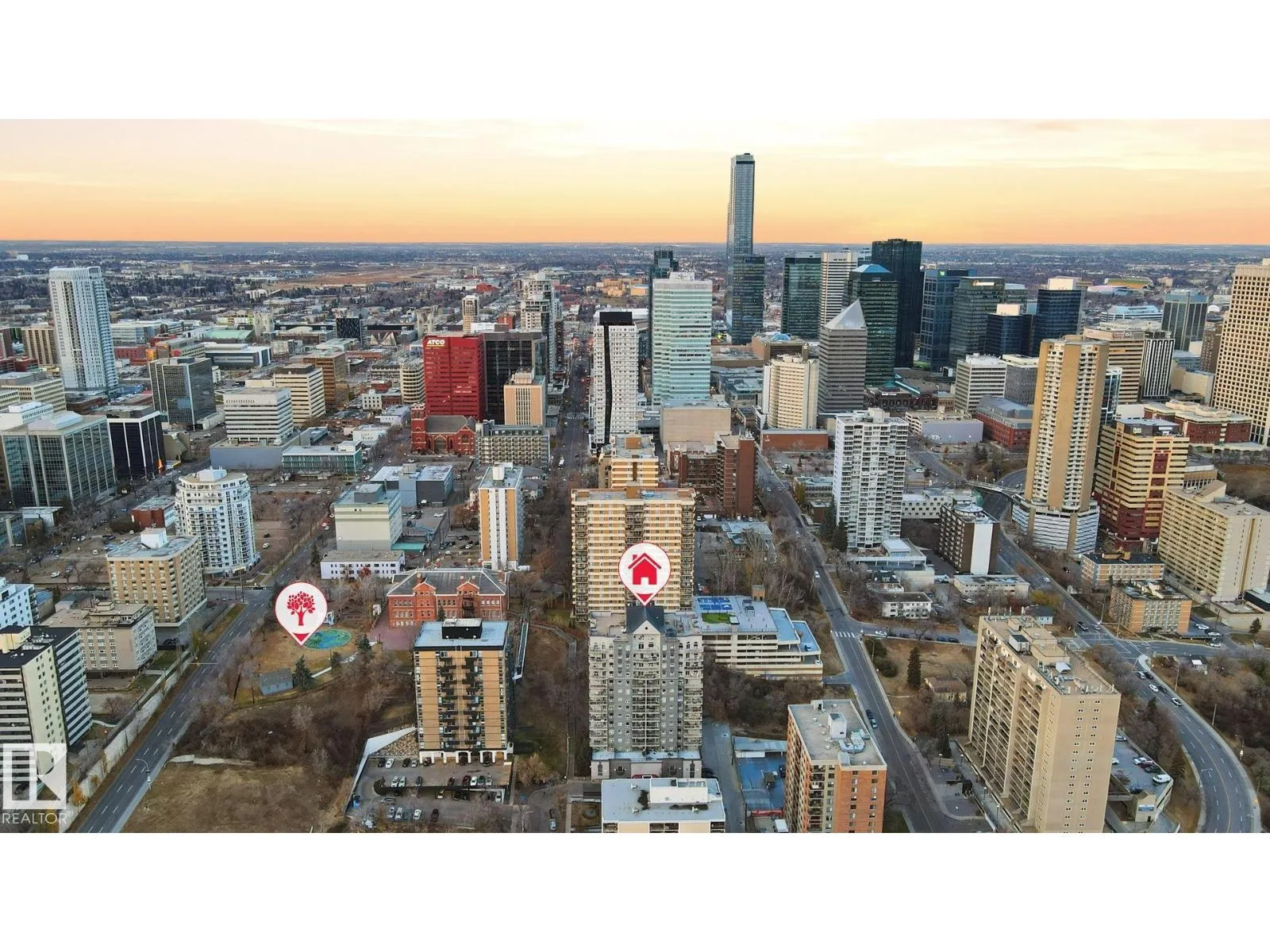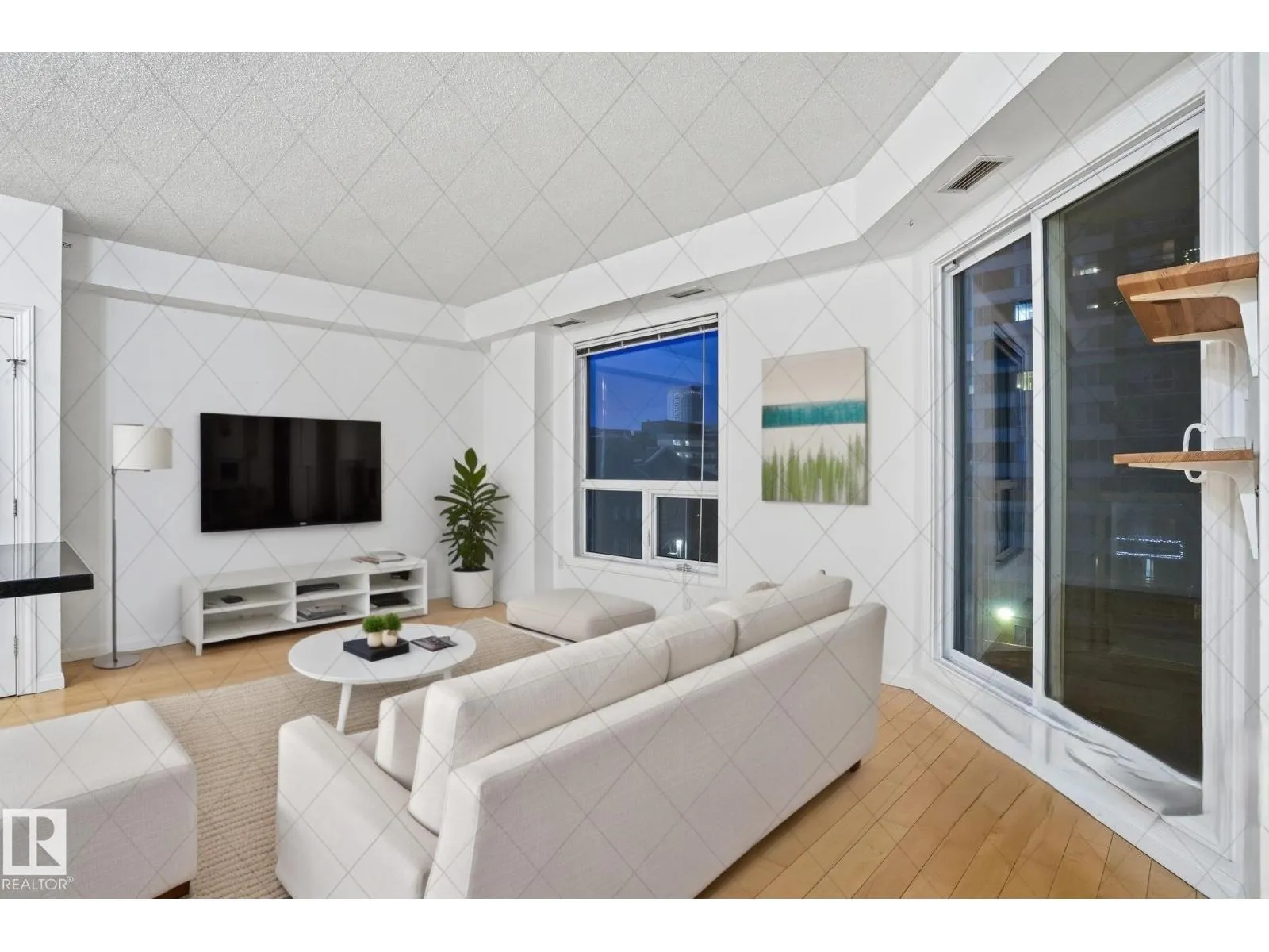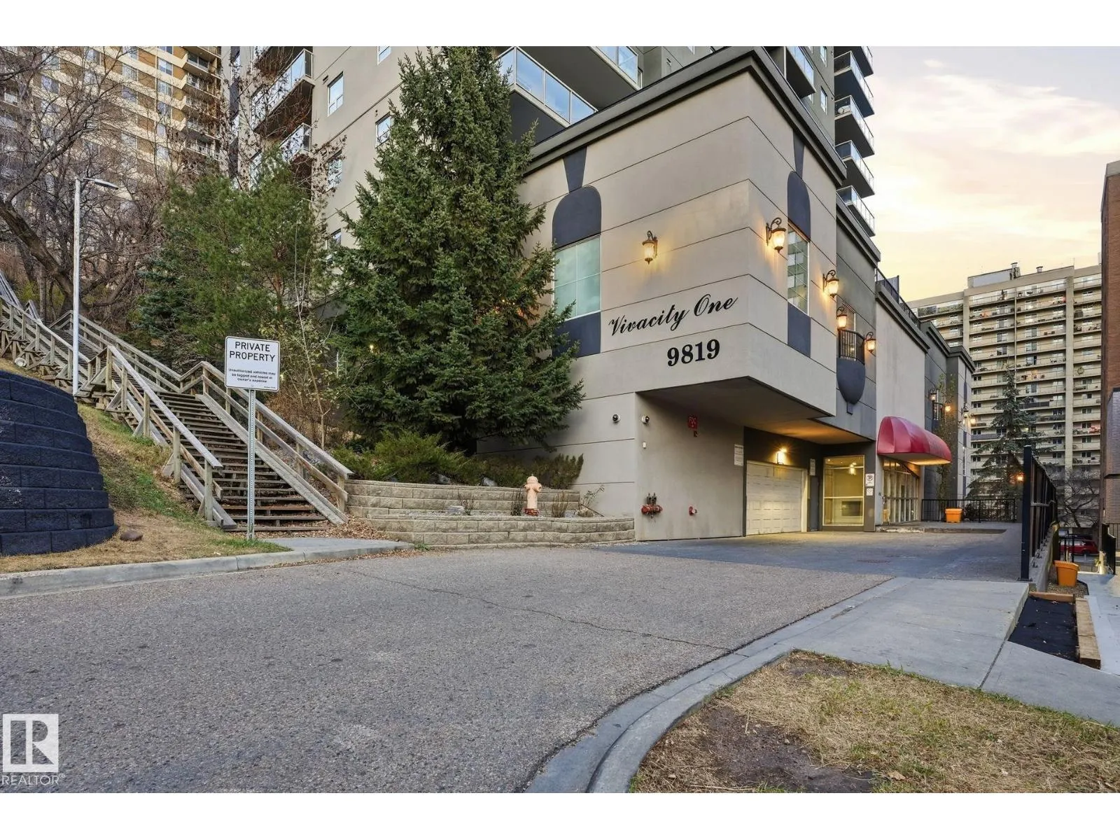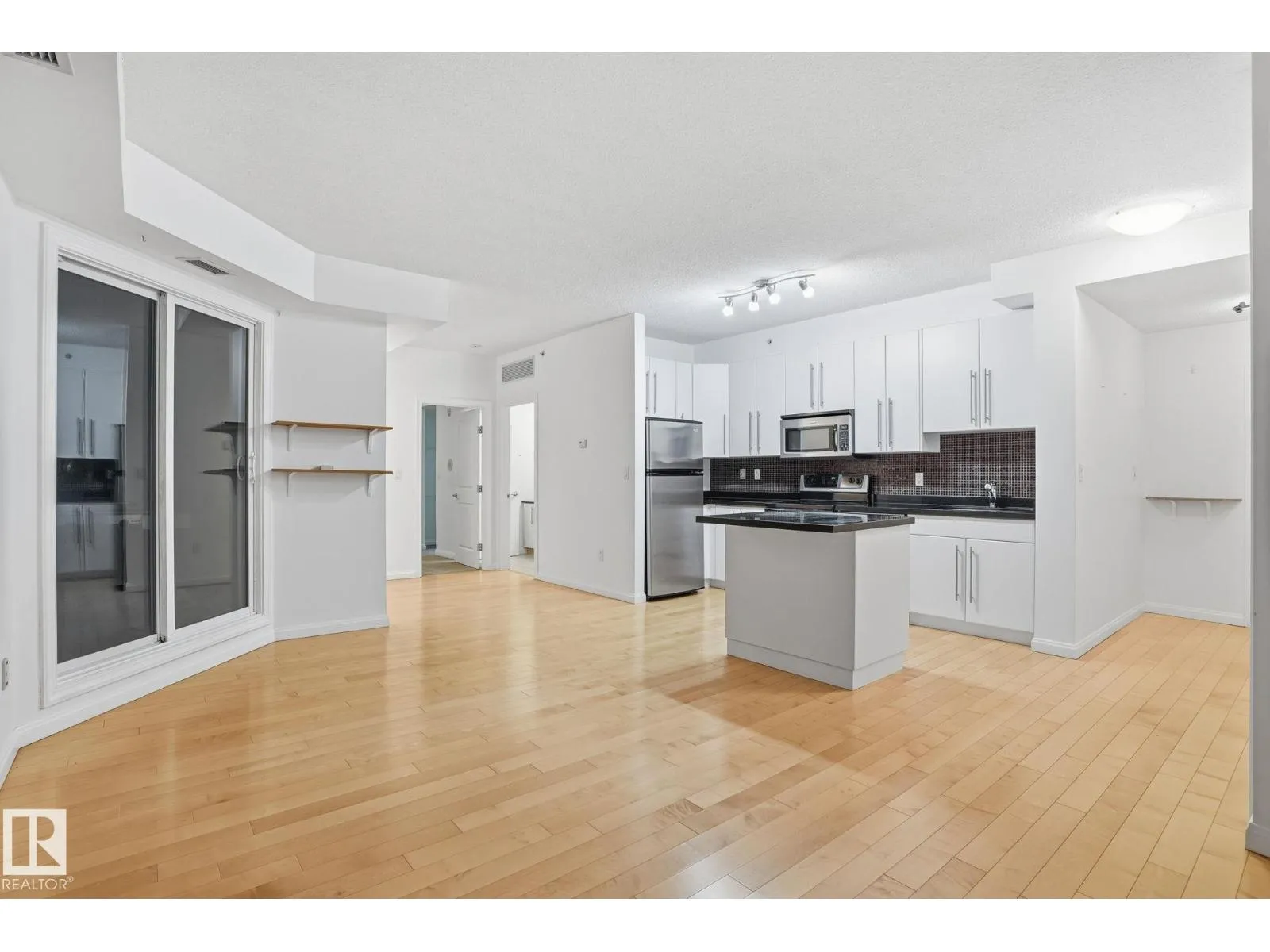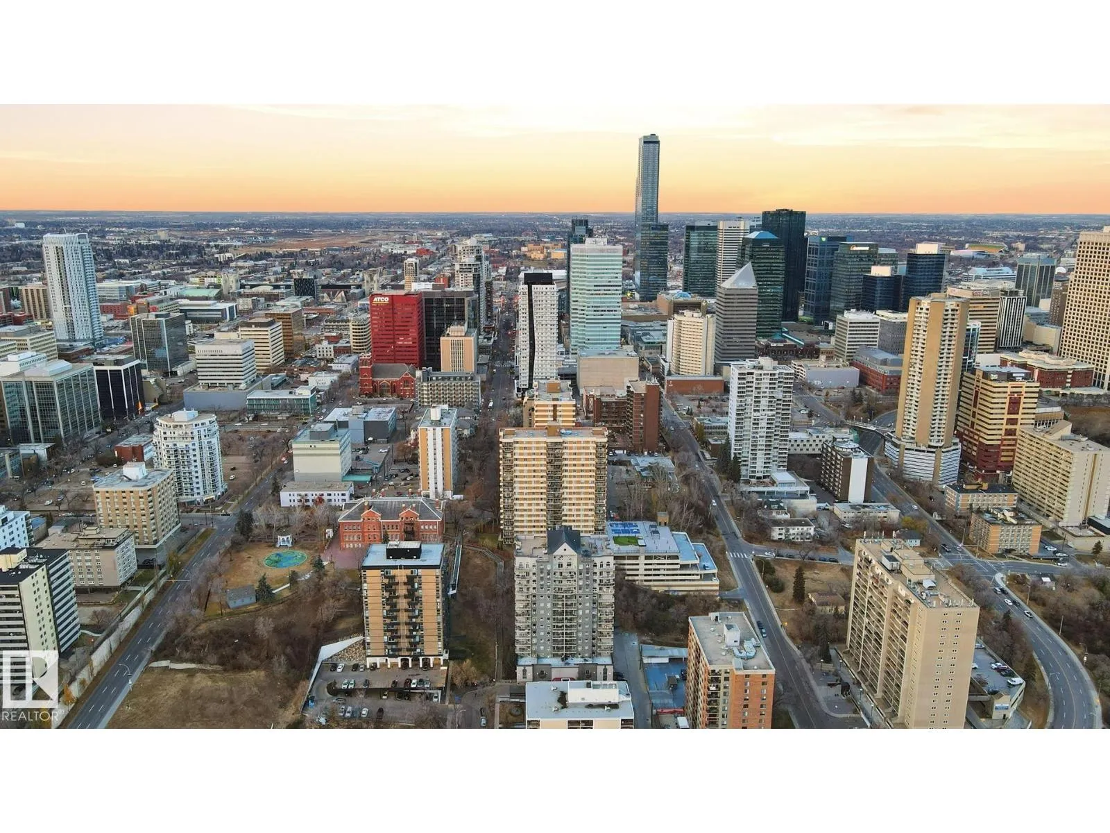 Enjoy downtown views from this move in ready condo in Vivacity, perfectly located near downtown, public transit, the river valley trails, shopping, restaurants, and the U of A. This modern open-concept suite features 9 ft ceilings, granite countertops, white cabinetry, stainless steel appliances, a kitchen island, and maple engineered hardwood flooring. The bright living area offers north and east exposures plus a gas BBQ hookup on the balcony. Recent upgrades include new carpet in the bedroom and a new furnace for added comfort. Included are the fridge, ceramic top stove, built-in microwave, dishwasher, in-suite washer & dryer, window coverings, and A/C. Comes with titled underground parking stall #96 on P1. Condo fees include heat, water, power, and access to building amenities: a rooftop patio with panoramic views, fitness room, and event room. A must-see condo offering modern living and unbeatable downtown convenience! (id:27476)