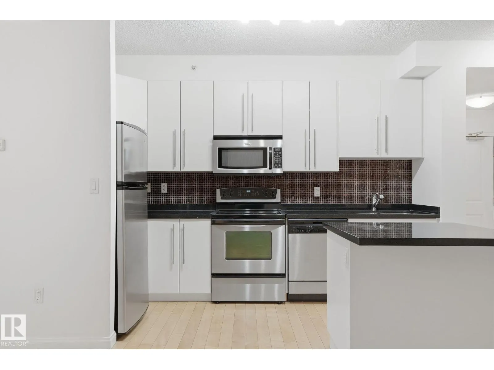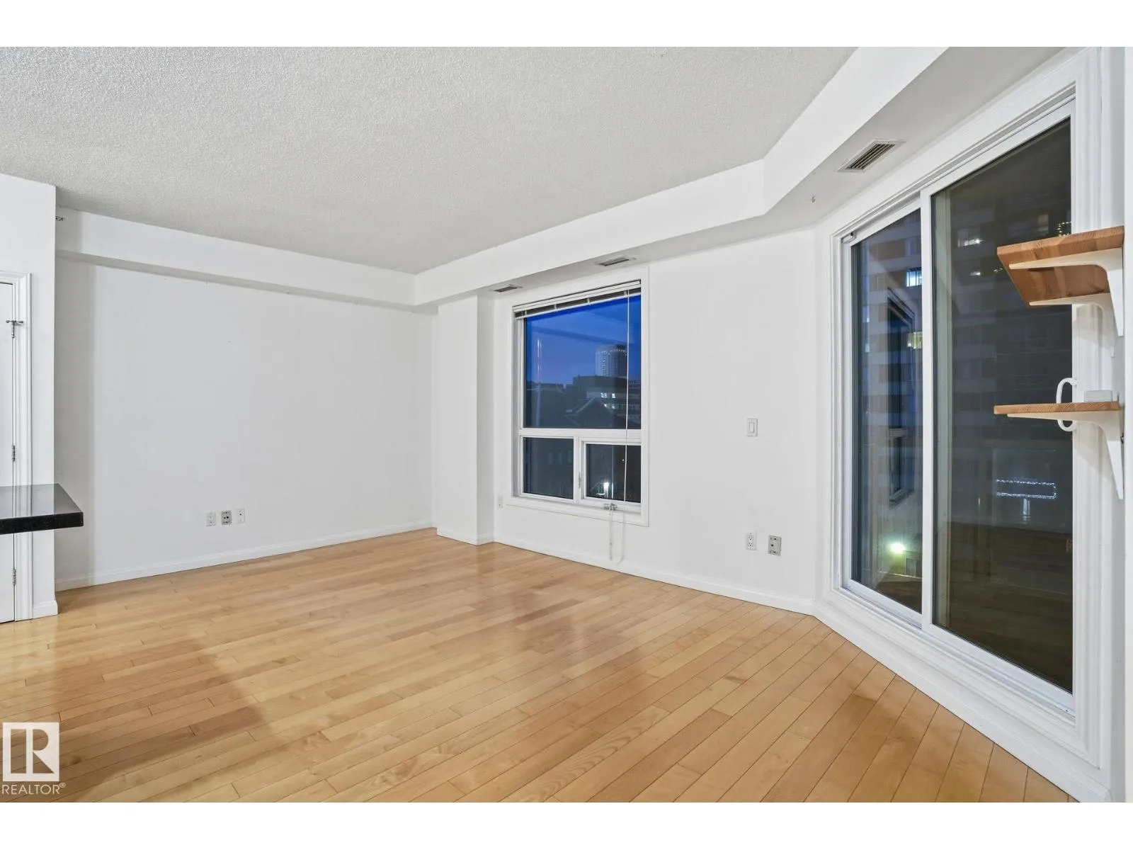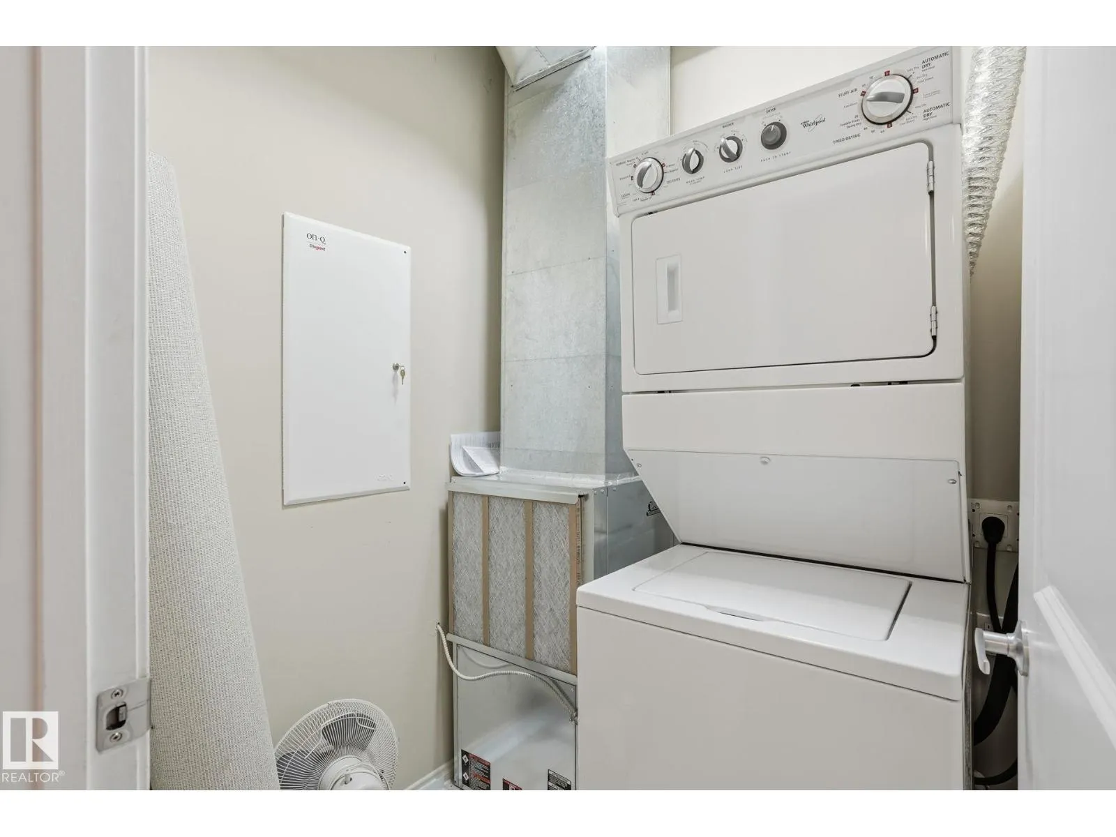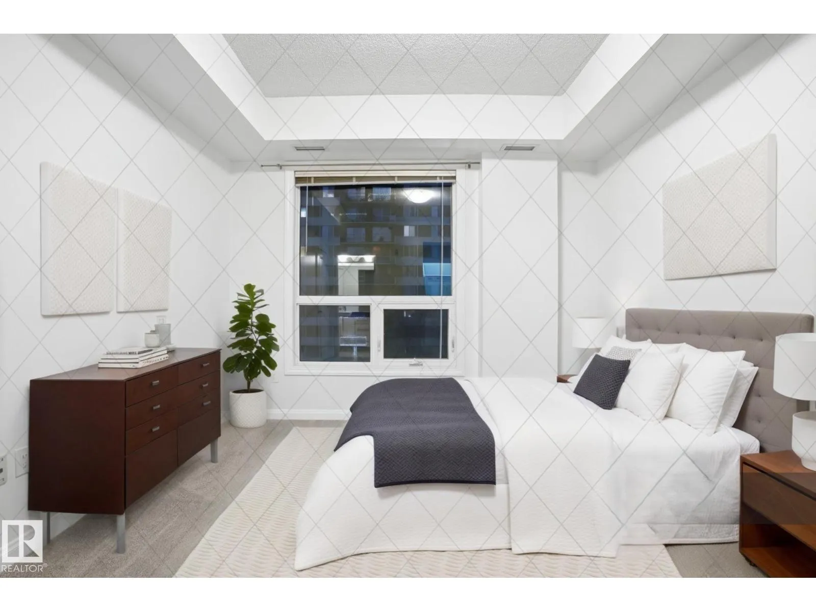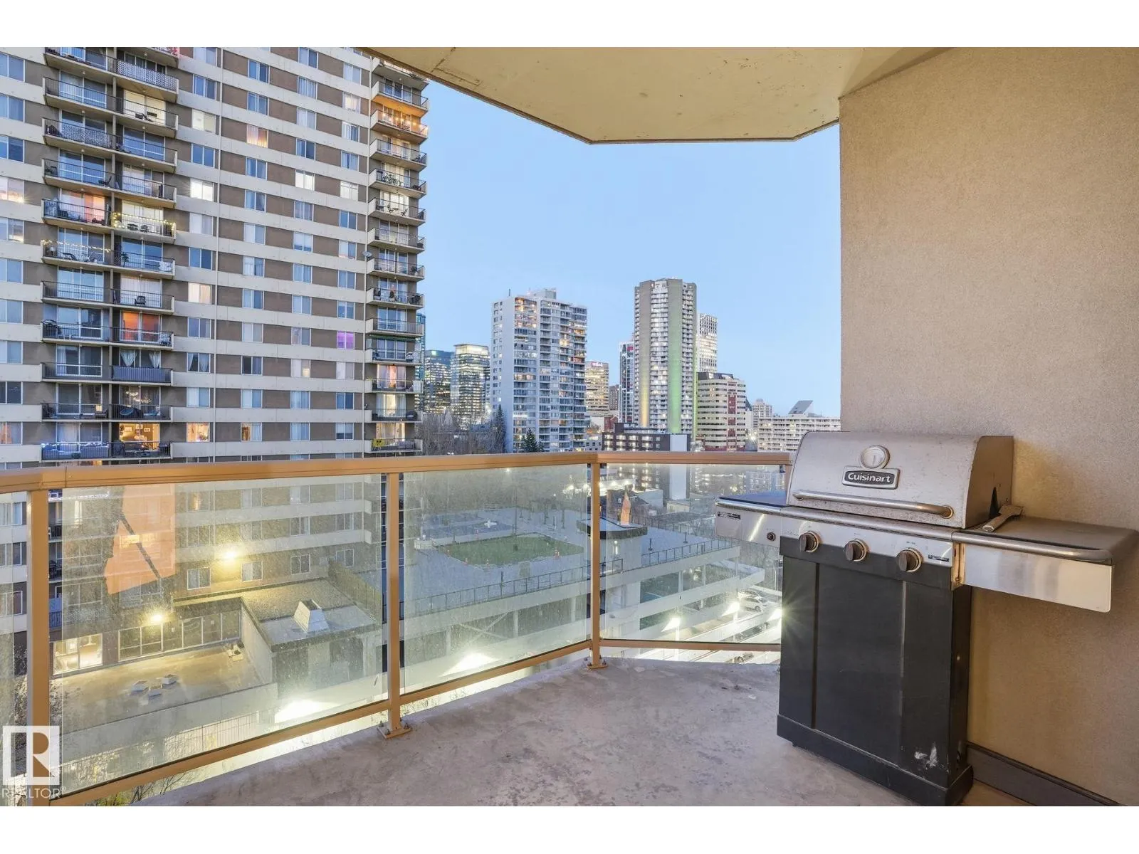 Enjoy downtown views from this move in ready condo in Vivacity, perfectly located near downtown, public transit, the river valley trails, shopping, restaurants, and the U of A. This modern open-concept suite features 9 ft ceilings, granite countertops, white cabinetry, stainless steel appliances, a kitchen island, and maple engineered hardwood flooring. The bright living area offers north and east exposures plus a gas BBQ hookup on the balcony. Recent upgrades include new carpet in the bedroom and a new furnace for added comfort. Included are the fridge, ceramic top stove, built-in microwave, dishwasher, in-suite washer & dryer, window coverings, and A/C. Comes with titled underground parking stall #96 on P1. Condo fees include heat, water, power, and access to building amenities: a rooftop patio with panoramic views, fitness room, and event room. A must-see condo offering modern living and unbeatable downtown convenience! (id:27476)