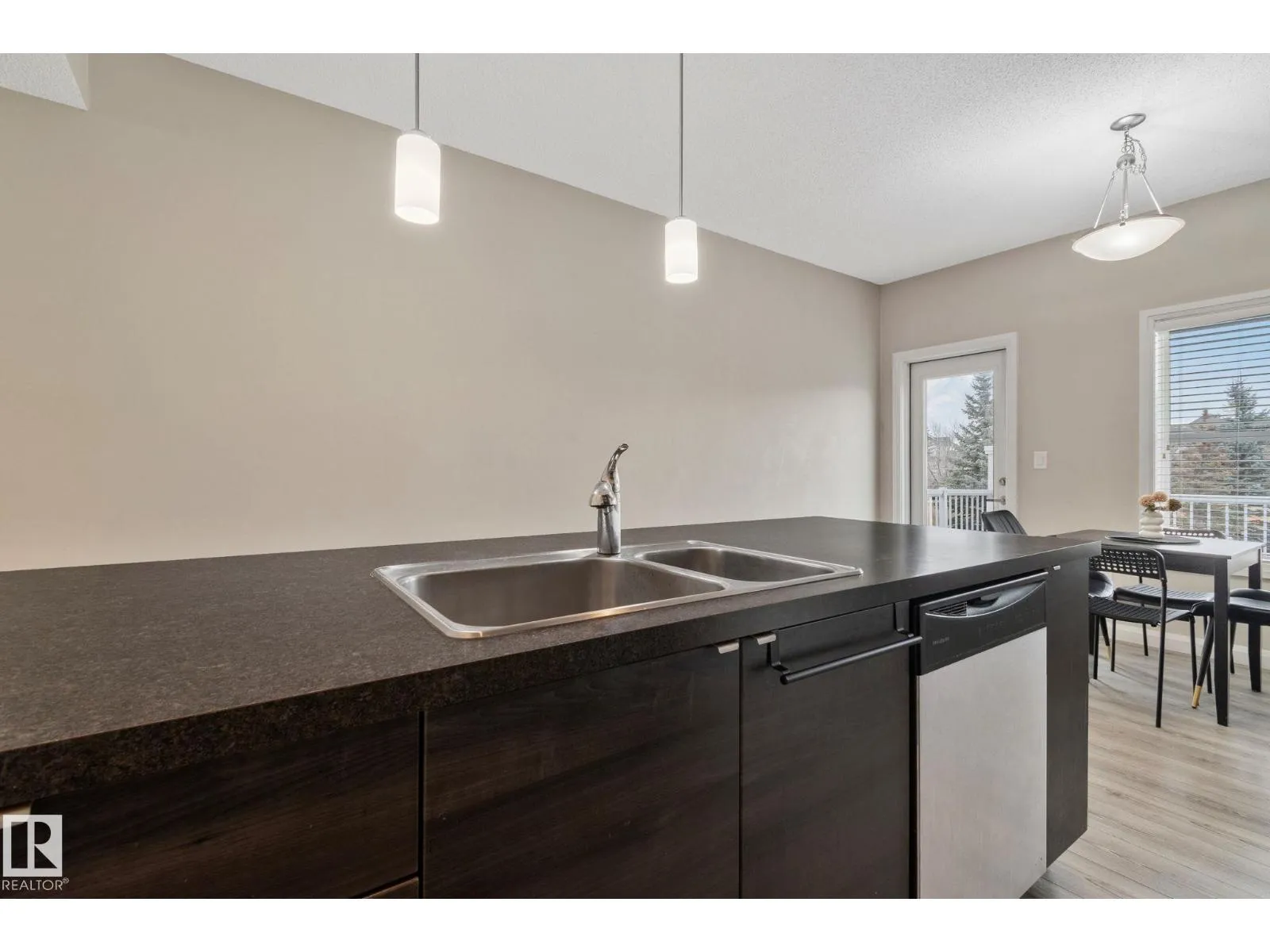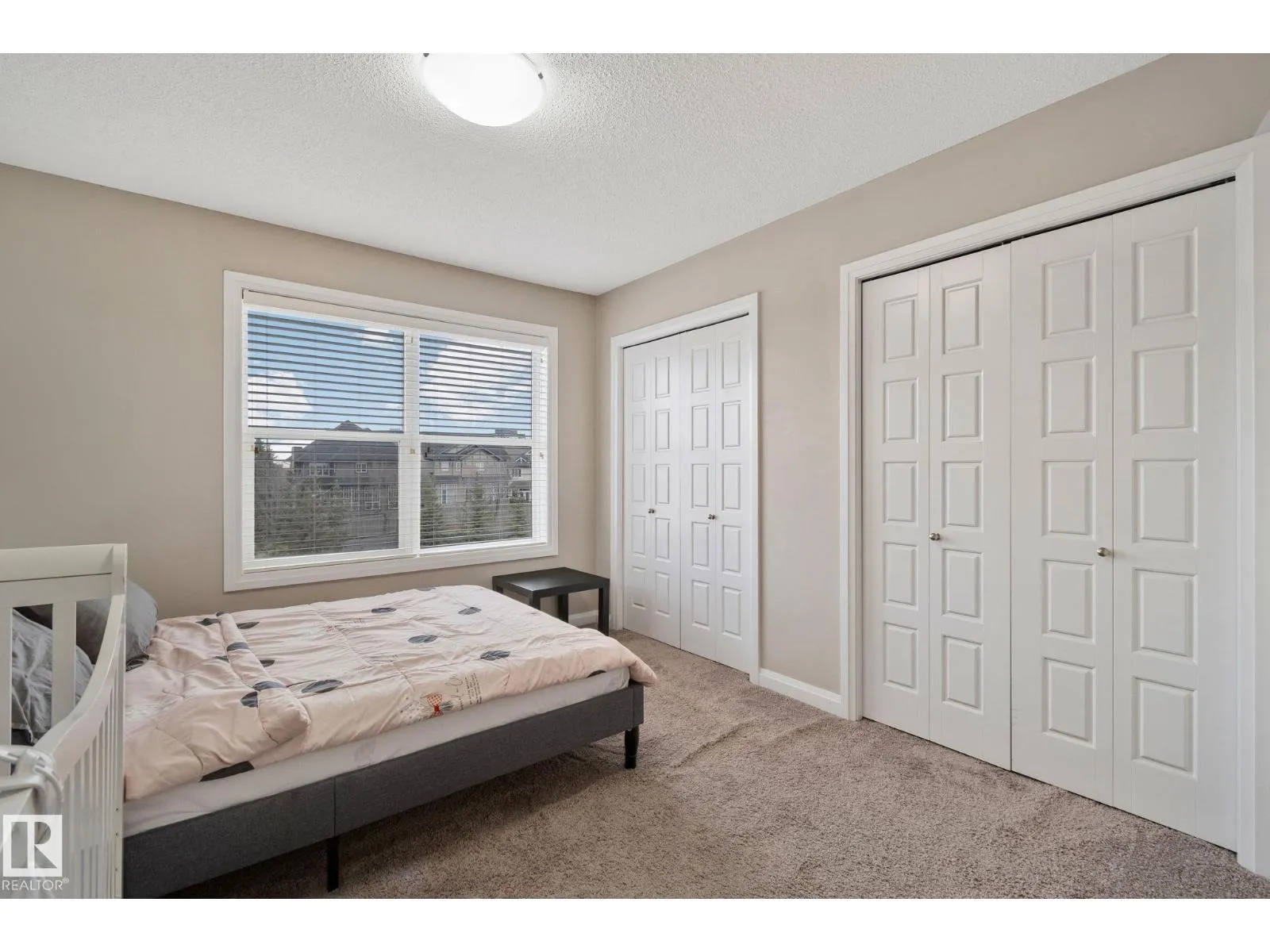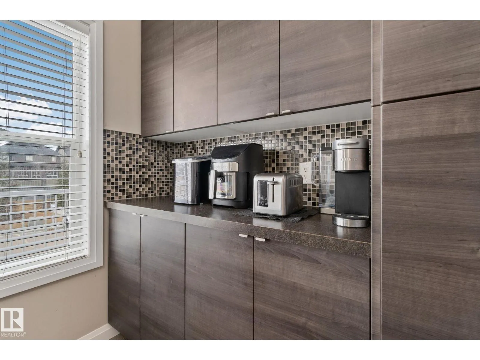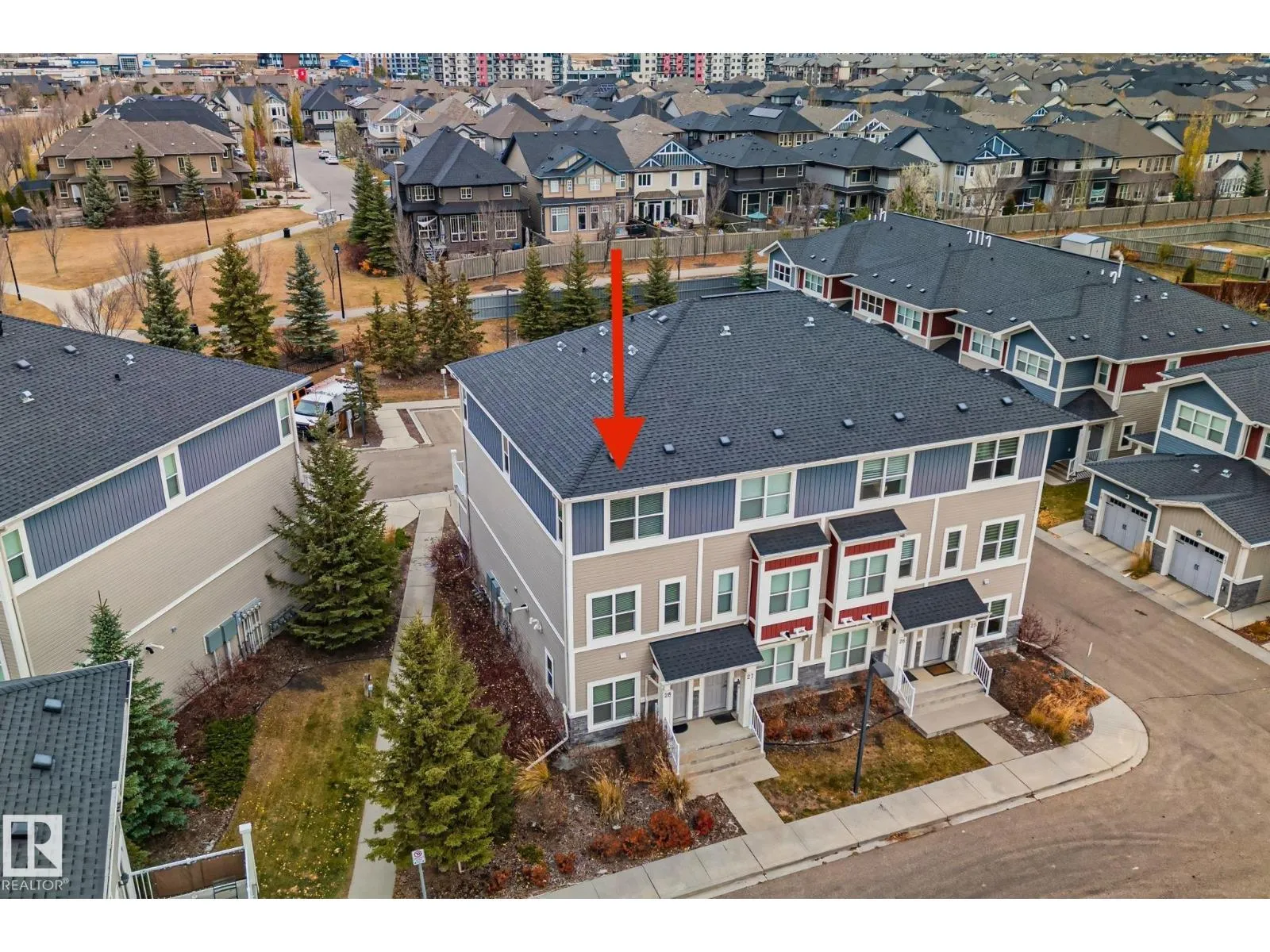 WELCOME to this modern and affordable 2 bedroom + den townhouse, ideally located across from Dr. Margaret-Ann Armour School. This corner unit features extra windows and 9-foot ceilings on two levels, creating a bright, open living space. The kitchen offers stainless steel appliances, a large island, and extended cabinetry which is perfect for daily living or entertaining. The dining area opens to a balcony overlooking a park/trail. Upstairs, two spacious bedrooms each feature a 4-piece ensuite and his/her dual closets. Ground-level den/home office is great for remote work or study. Enjoy the convenience of an attached heated garage (23x13) and driveway parking. Steps from public transit and minutes to the Currents of Windermere, schools, shopping, and the Anthony Henday. An exceptional choice for first-time buyers, downsizers, or investors! (id:27476)