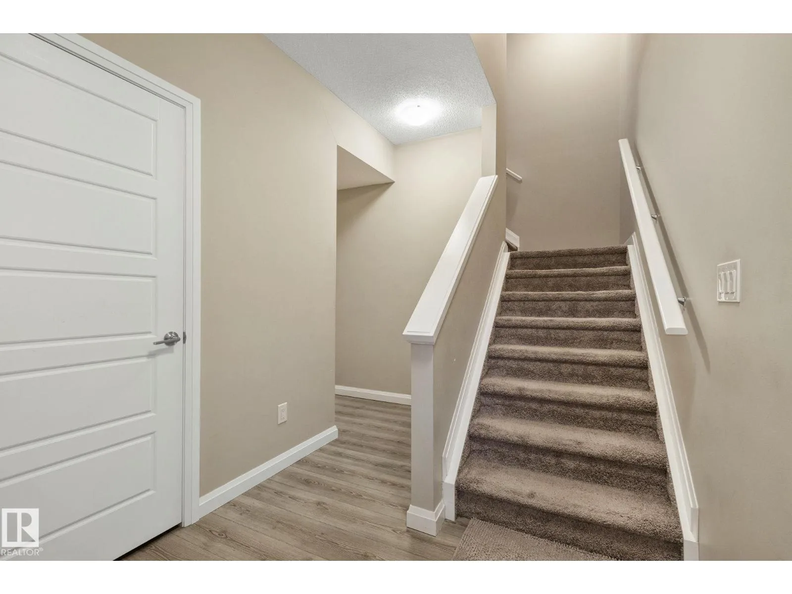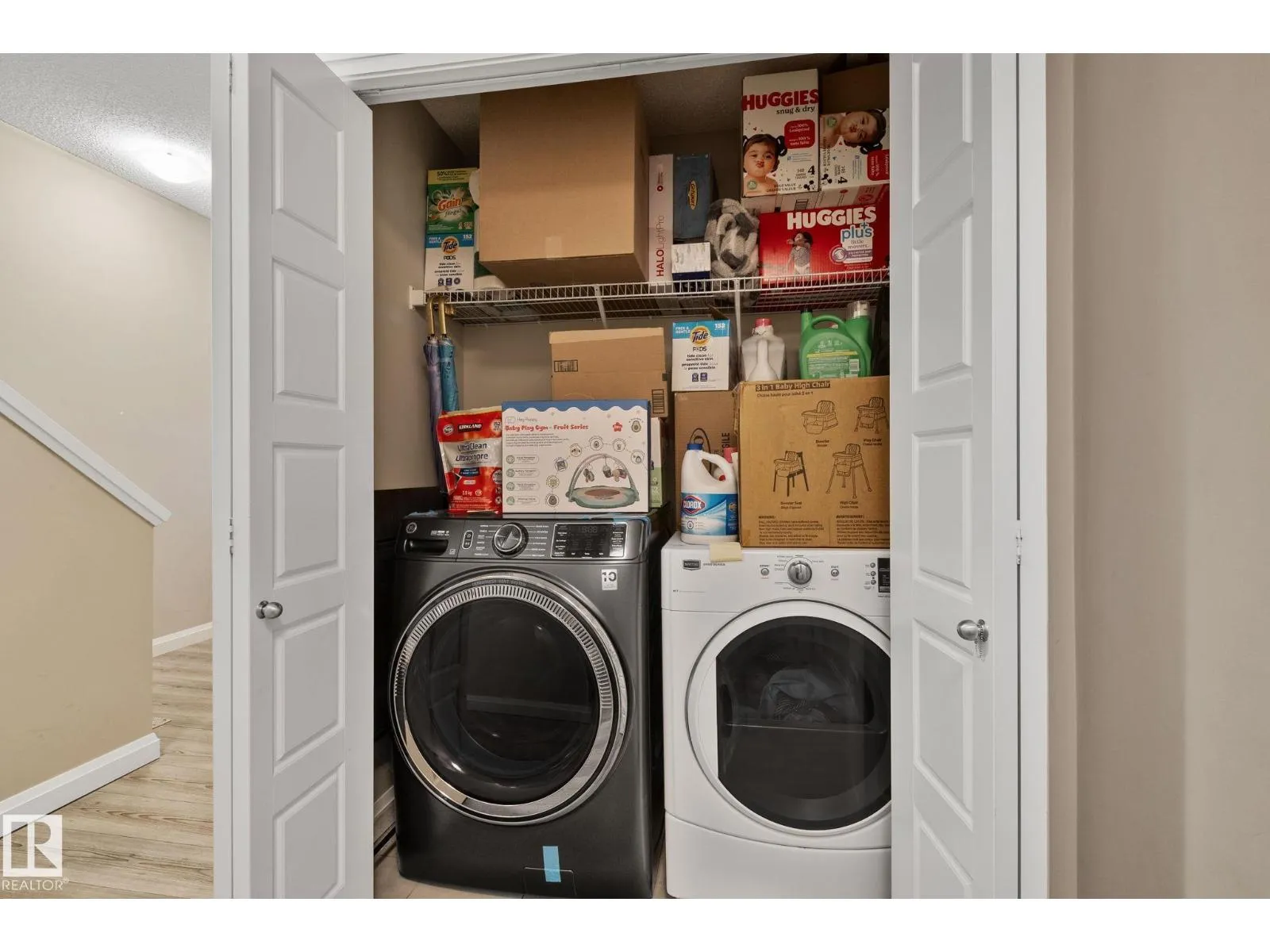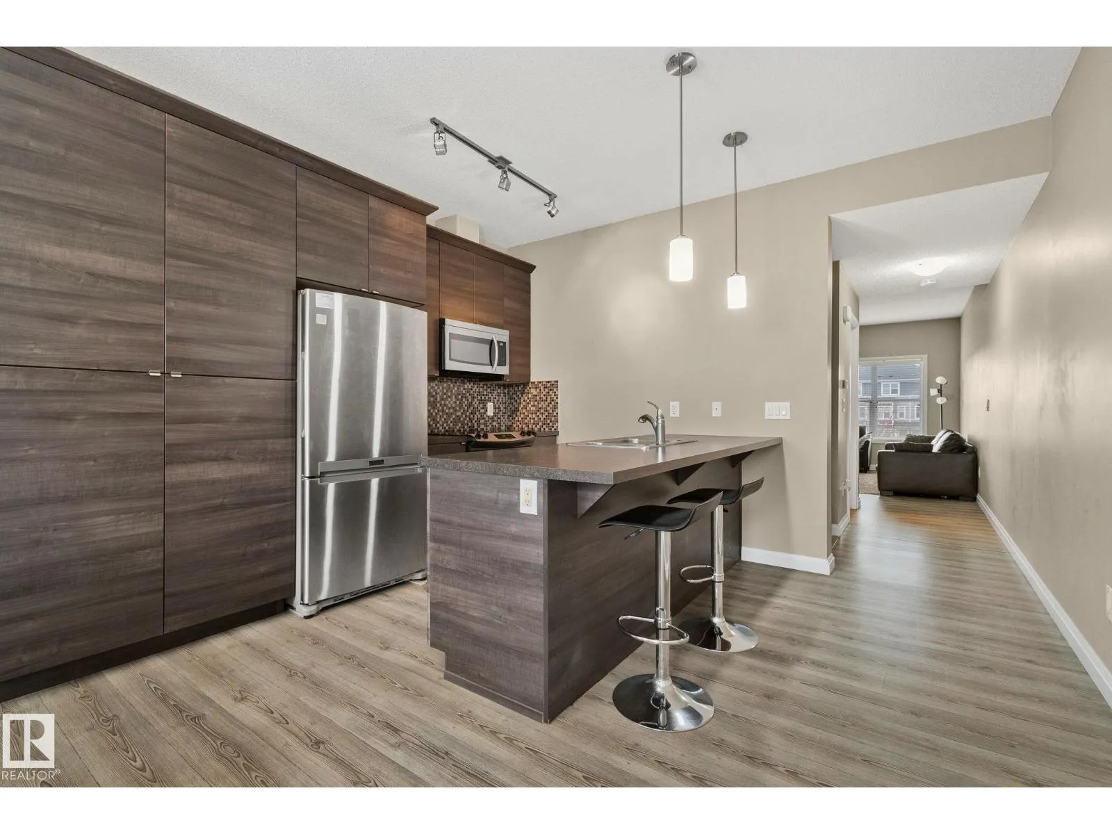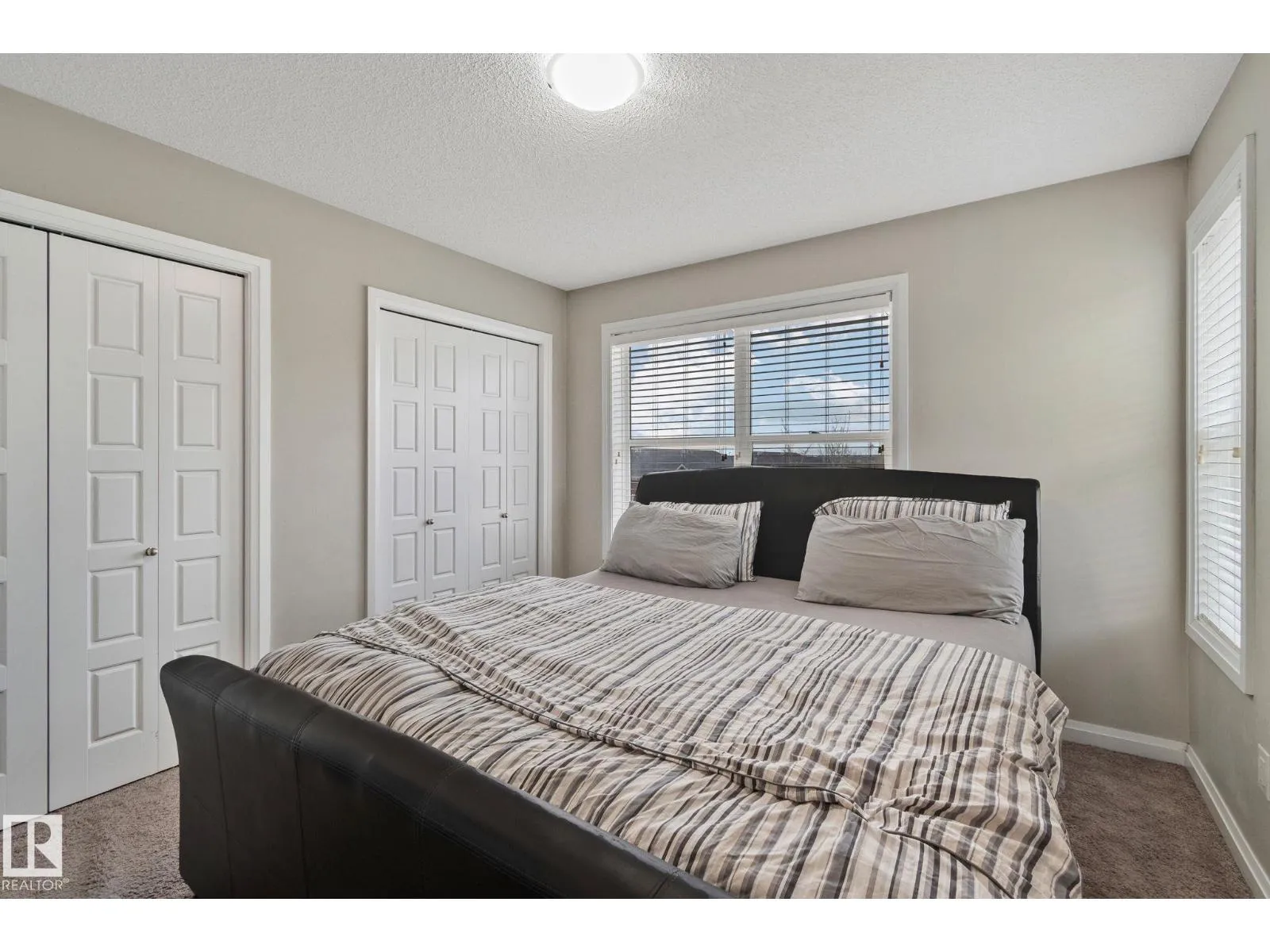 WELCOME to this modern and affordable 2 bedroom + den townhouse, ideally located across from Dr. Margaret-Ann Armour School. This corner unit features extra windows and 9-foot ceilings on two levels, creating a bright, open living space. The kitchen offers stainless steel appliances, a large island, and extended cabinetry which is perfect for daily living or entertaining. The dining area opens to a balcony overlooking a park/trail. Upstairs, two spacious bedrooms each feature a 4-piece ensuite and his/her dual closets. Ground-level den/home office is great for remote work or study. Enjoy the convenience of an attached heated garage (23x13) and driveway parking. Steps from public transit and minutes to the Currents of Windermere, schools, shopping, and the Anthony Henday. An exceptional choice for first-time buyers, downsizers, or investors! (id:27476)