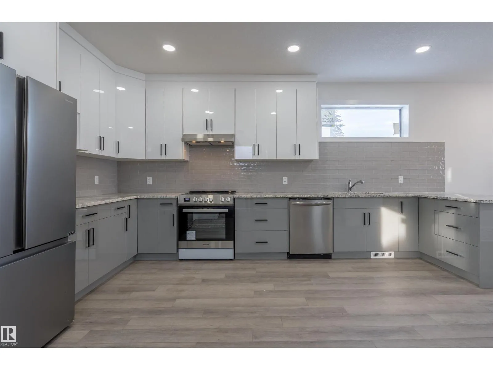 Amazing opportunity to own a full duplex with four legal suites in a prime west-central Edmonton location. This property offers 8 bedrooms, 6 full bathrooms, and 2 half bathrooms, making it a fantastic investment with strong income potential. Each side features an open-concept main floor with a bright living room, dining area, and modern kitchen with white cabinetry and full appliances. The main units include 3 bedrooms and 2.5 bathrooms, while each legal basement suite offers 1 bedroom and 1 bathroom. High-end finishes and attention to detail are evident throughout. Conveniently located near amenities, public transit, and major routes, the property provides quick access to downtown Edmonton and is only 10 minutes from West Edmonton Mall. With current city zoning, there is potential to add a fifth unit as a garage suite, making this a rare and valuable opportunity for investors or those seeking a versatile income-generating property. (id:27476)