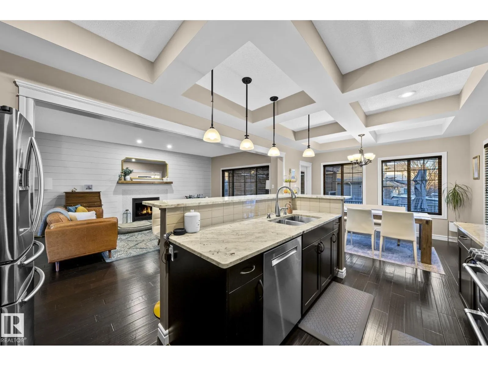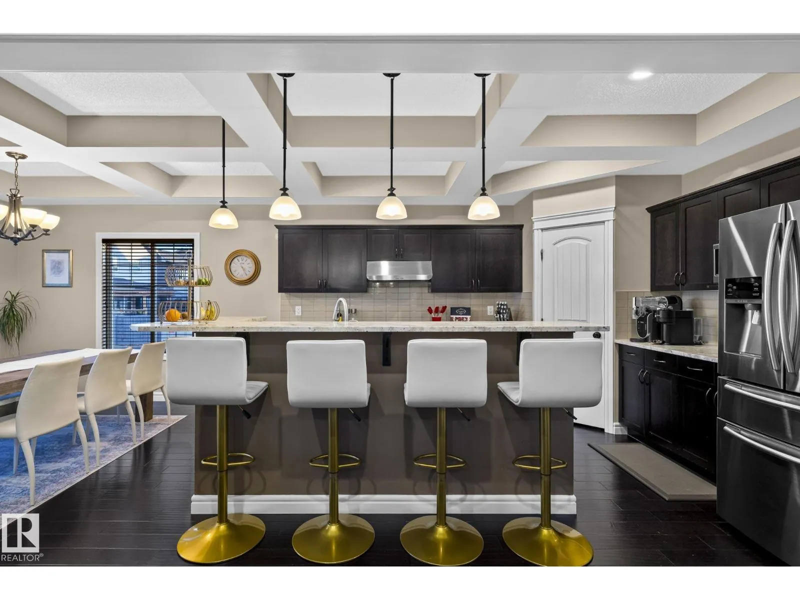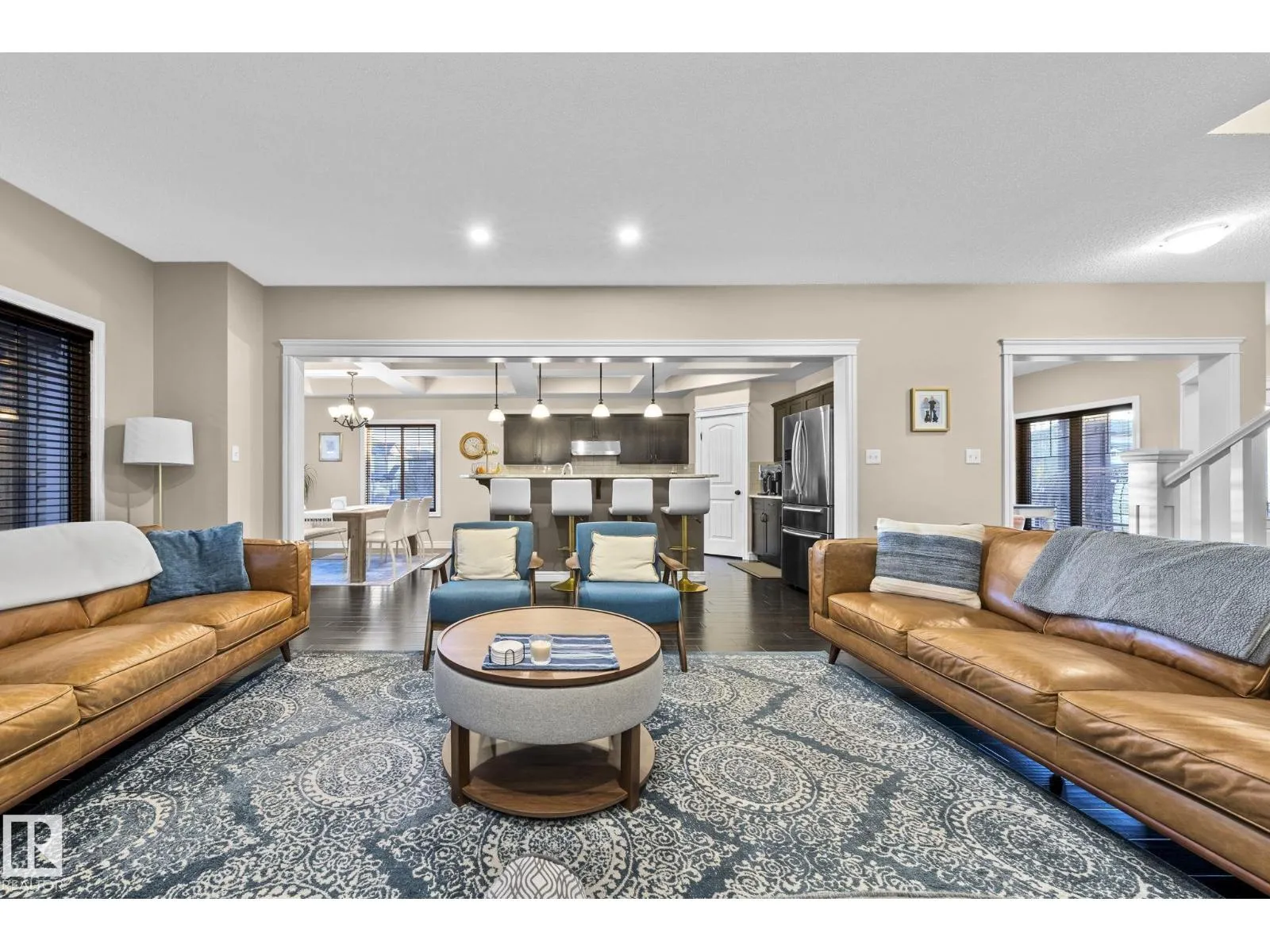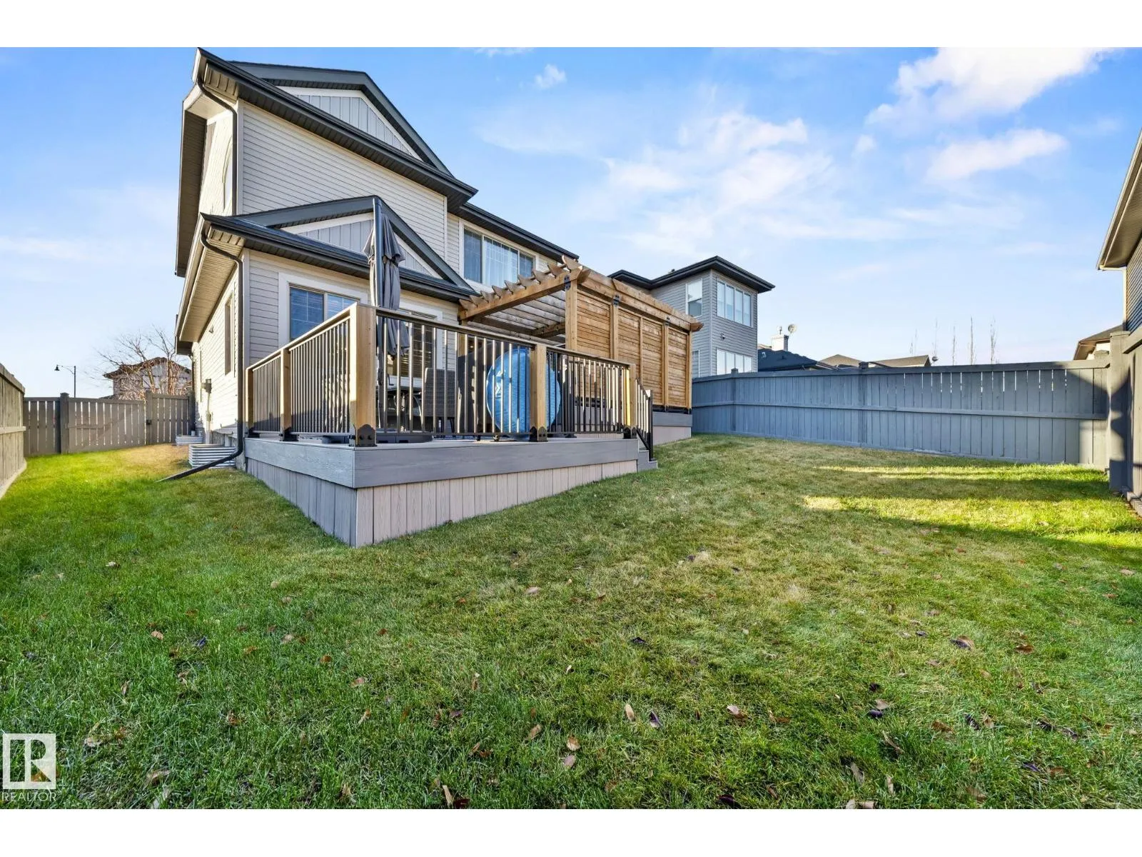 STUNNING GRANVILLE HOME WITH TRIPLE HEATED GARAGE. This impressive 2,300+ sq. ft. two-storey blends modern style with everyday comfort. The main floor showcases 9' ceilings, a bright open layout, and a chef-inspired kitchen featuring granite countertops, a raised bar, and solid wood cabinetry, enhanced by a coffered ceiling adding timeless character. Upstairs, there is ample room in the king-sized primary suite, featuring a walk-in closet and a 5-piece en-suite. Two additional generously sized bedrooms, a full bath, and a bonus room complete the upper level. Enjoy year-round comfort with central air conditioning and a triple heated garage. Unwind outdoors on the newly constructed deck, reminiscent of those featured on HGTV, which is perfect for relaxing and entertaining. Ideally located near schools, parks, and all major amenities, with the convenience of easy access to the Henday and Whitemud. What are you waiting for? (id:27476)