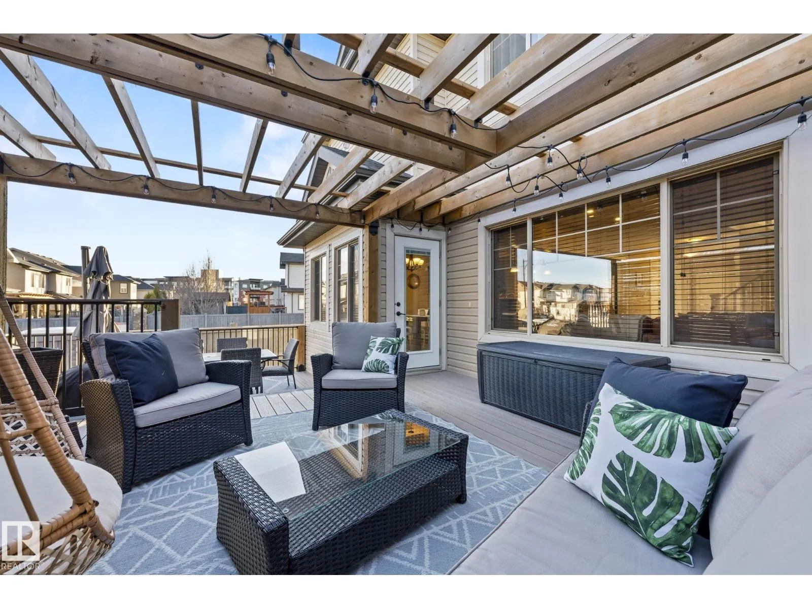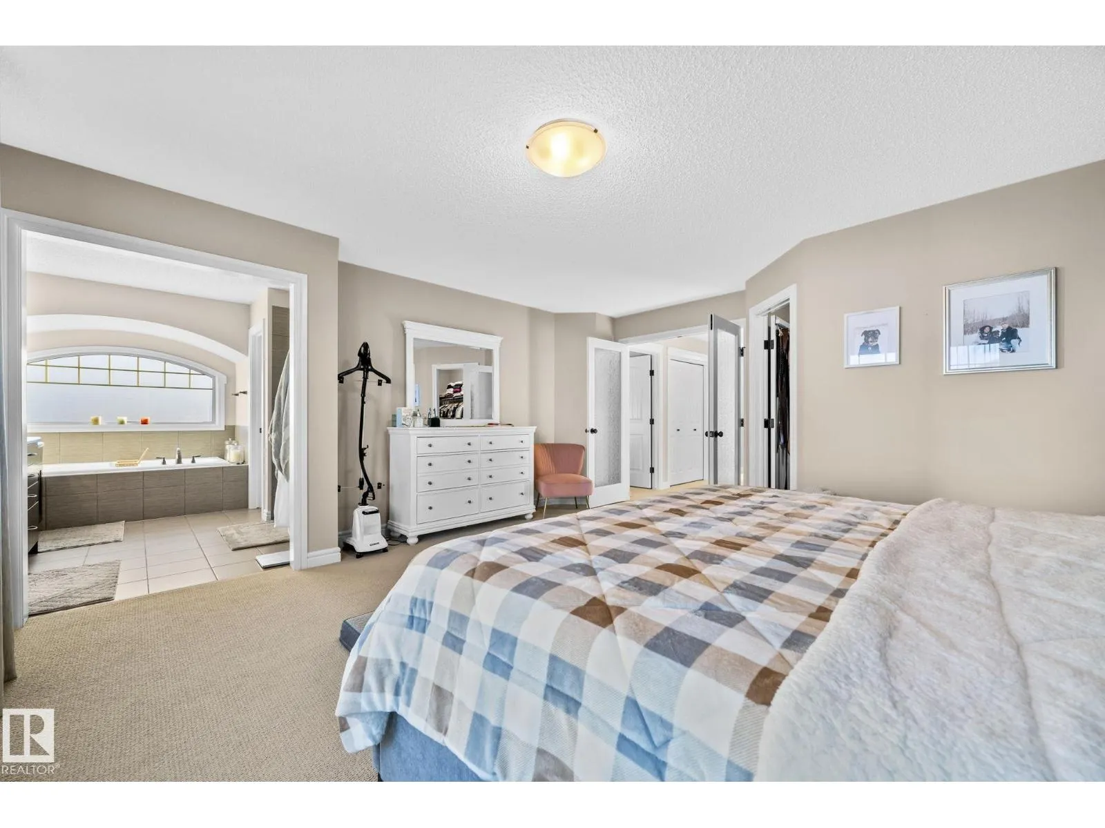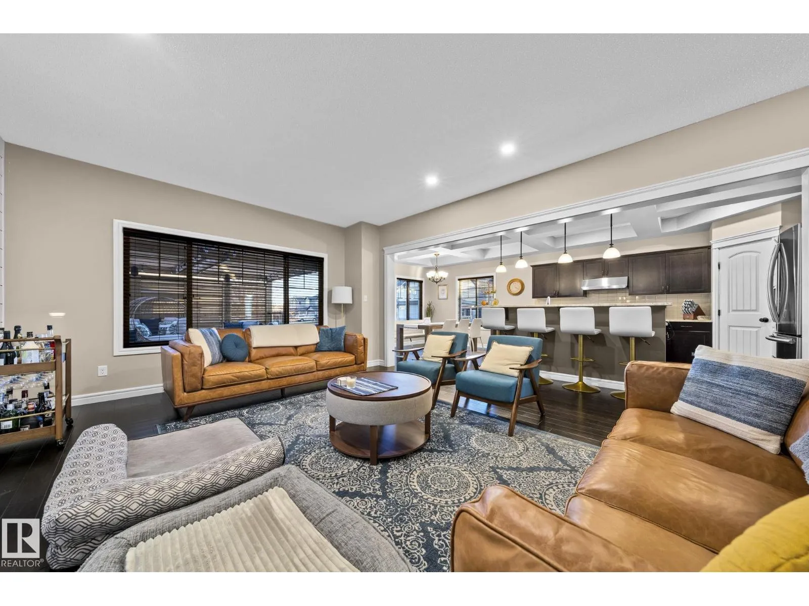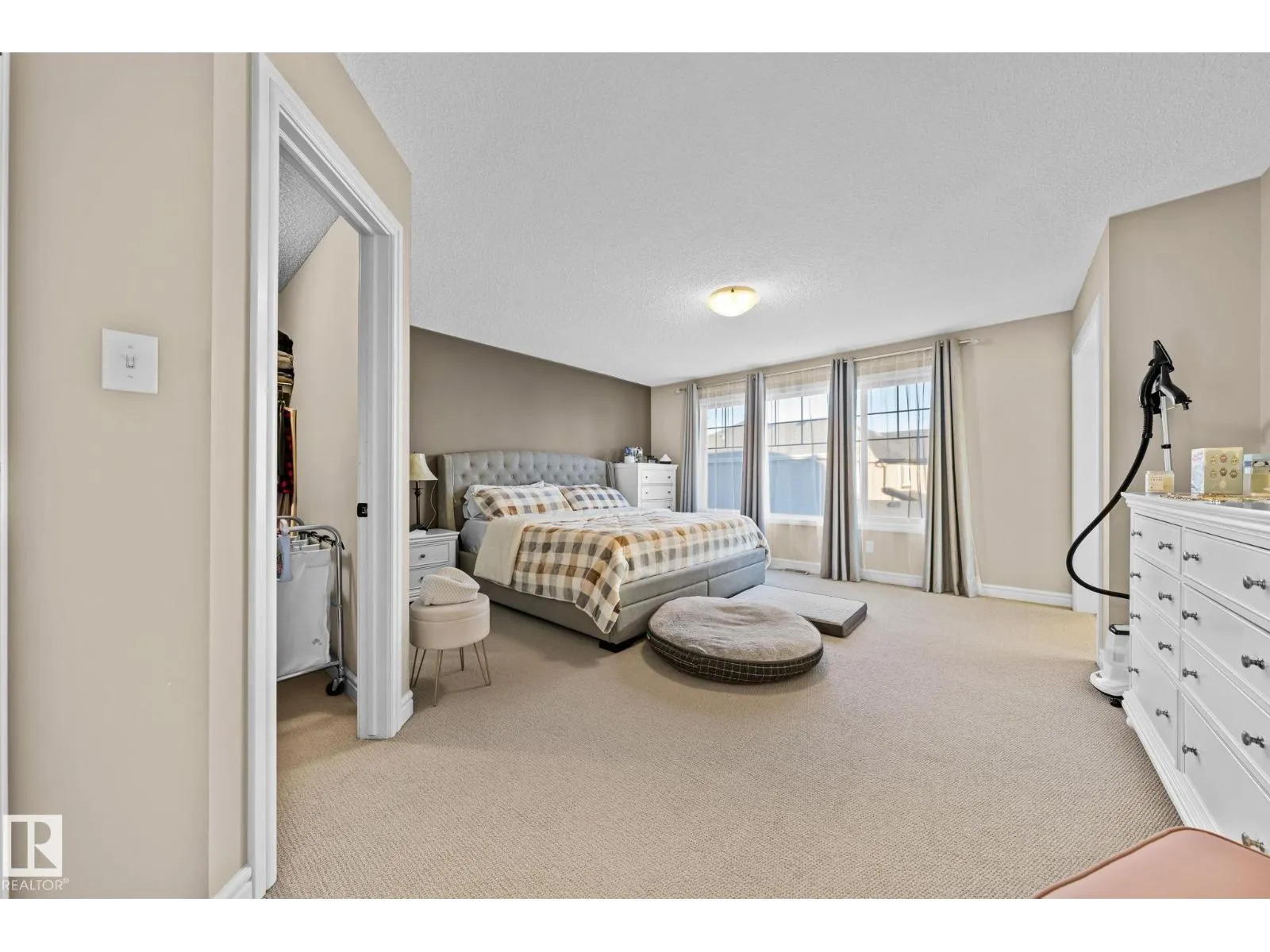 STUNNING GRANVILLE HOME WITH TRIPLE HEATED GARAGE. This impressive 2,300+ sq. ft. two-storey blends modern style with everyday comfort. The main floor showcases 9' ceilings, a bright open layout, and a chef-inspired kitchen featuring granite countertops, a raised bar, and solid wood cabinetry, enhanced by a coffered ceiling adding timeless character. Upstairs, there is ample room in the king-sized primary suite, featuring a walk-in closet and a 5-piece en-suite. Two additional generously sized bedrooms, a full bath, and a bonus room complete the upper level. Enjoy year-round comfort with central air conditioning and a triple heated garage. Unwind outdoors on the newly constructed deck, reminiscent of those featured on HGTV, which is perfect for relaxing and entertaining. Ideally located near schools, parks, and all major amenities, with the convenience of easy access to the Henday and Whitemud. What are you waiting for? (id:27476)