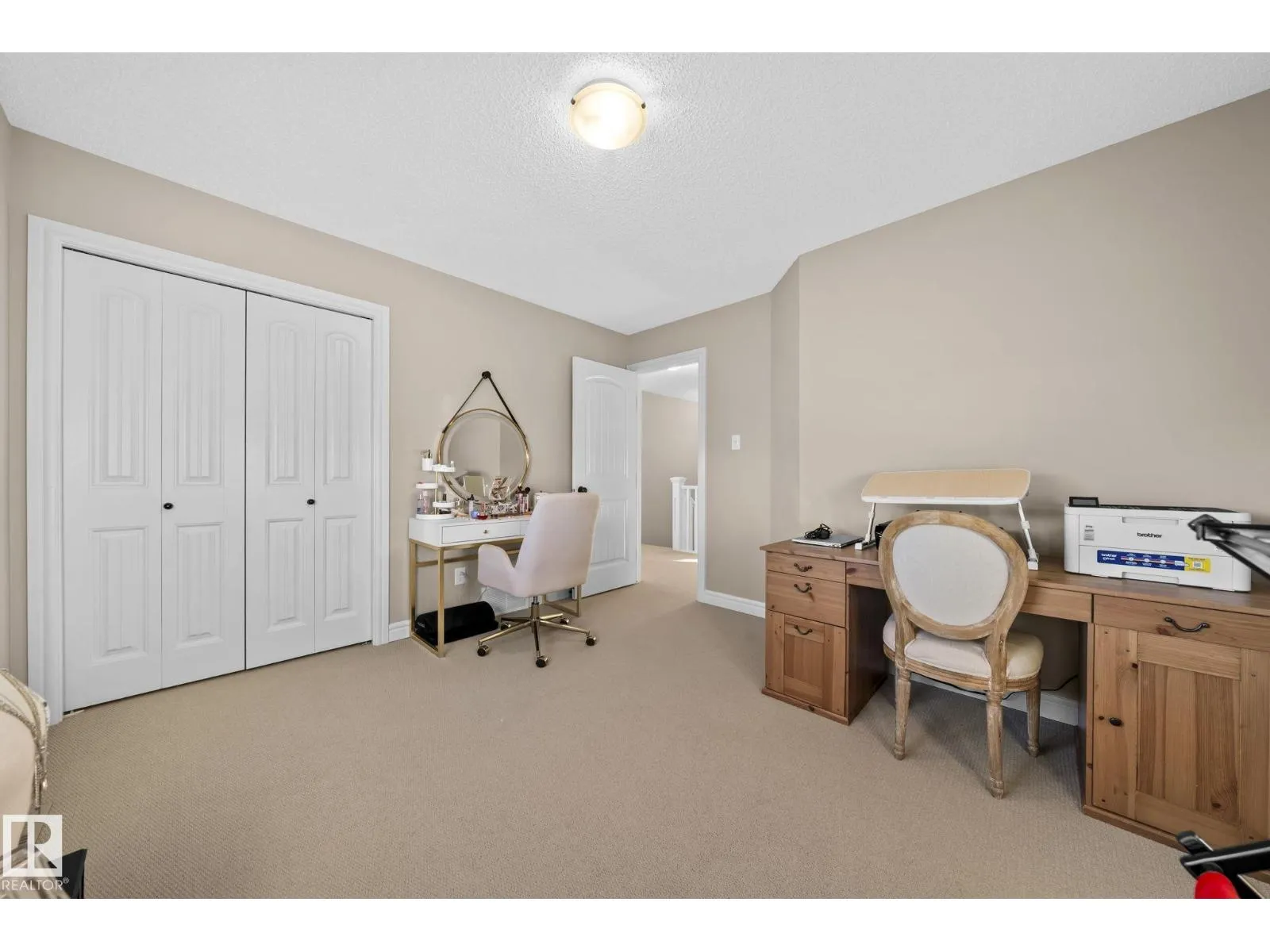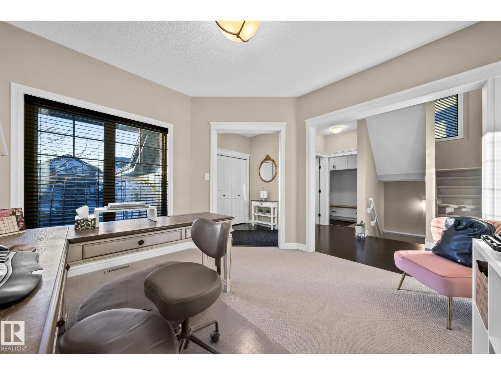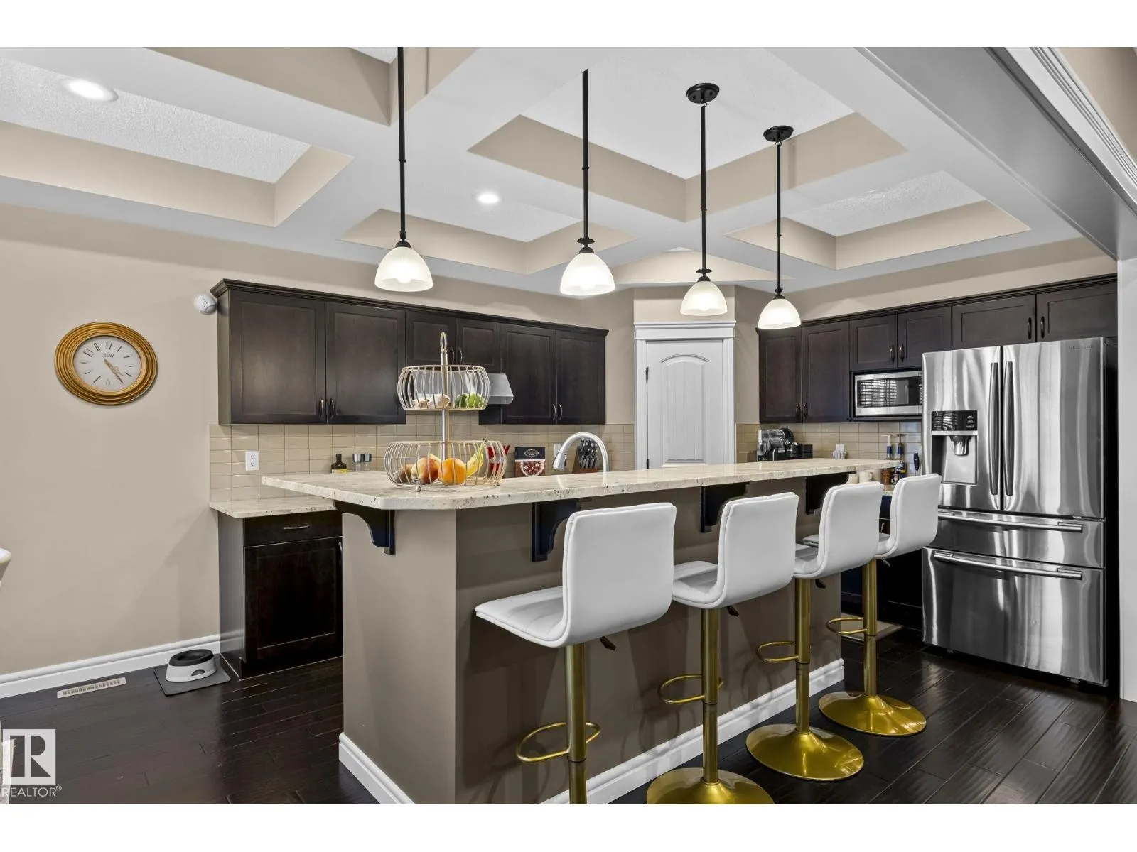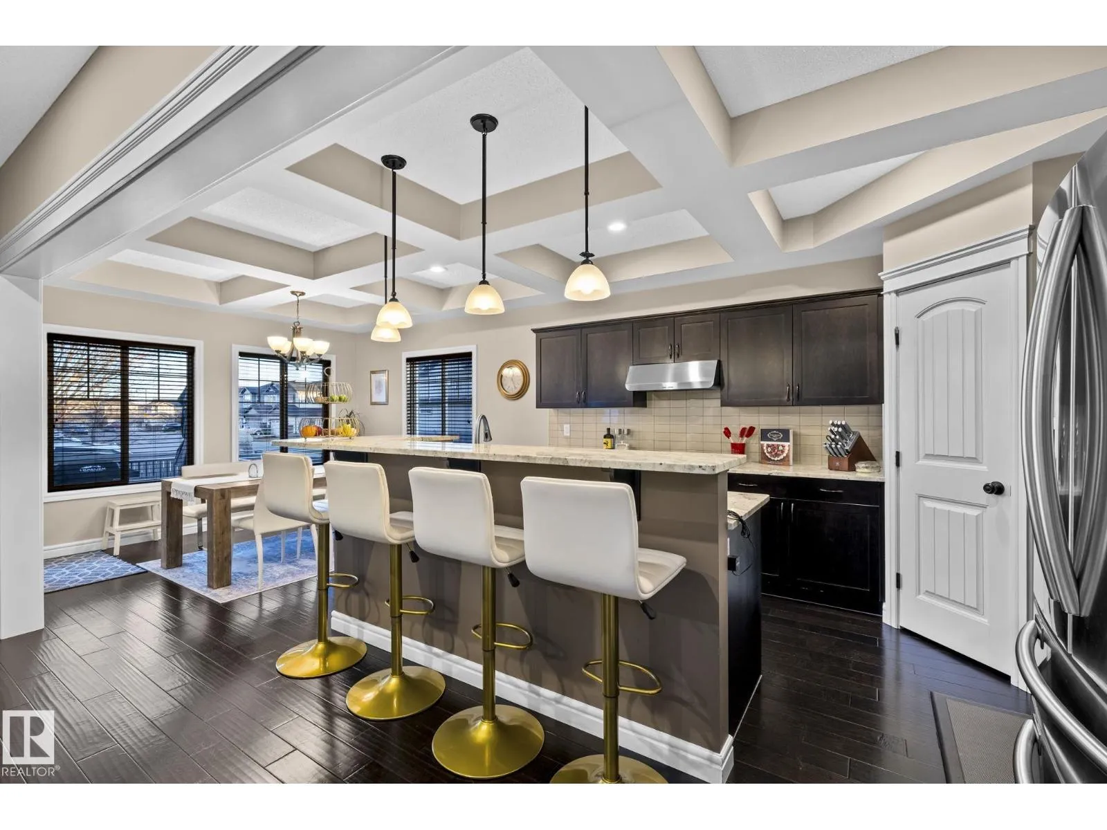STUNNING GRANVILLE HOME WITH TRIPLE HEATED GARAGE. This impressive 2,300+ sq. ft. two-storey blends modern style with everyday comfort. The main floor showcases 9' ceilings, a bright open layout, and a chef-inspired kitchen featuring granite countertops, a raised bar, and solid wood cabinetry, enhanced by a coffered ceiling adding timeless character. Upstairs, there is ample room in the king-sized primary suite, featuring a walk-in closet and a 5-piece en-suite. Two additional generously sized bedrooms, a full bath, and a bonus room complete the upper level. Enjoy year-round comfort with central air conditioning and a triple heated garage. Unwind outdoors on the newly constructed deck, reminiscent of those featured on HGTV, which is perfect for relaxing and entertaining. Ideally located near schools, parks, and all major amenities, with the convenience of easy access to the Henday and Whitemud. What are you waiting for? (id:27476)