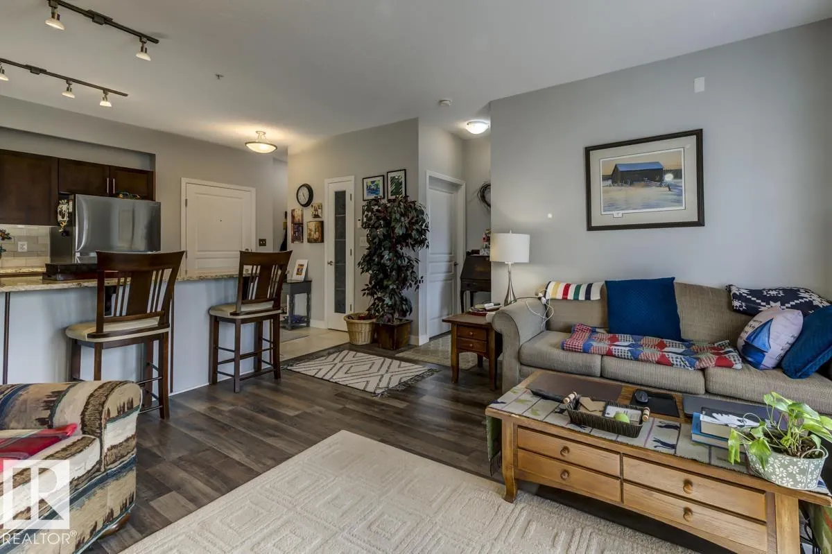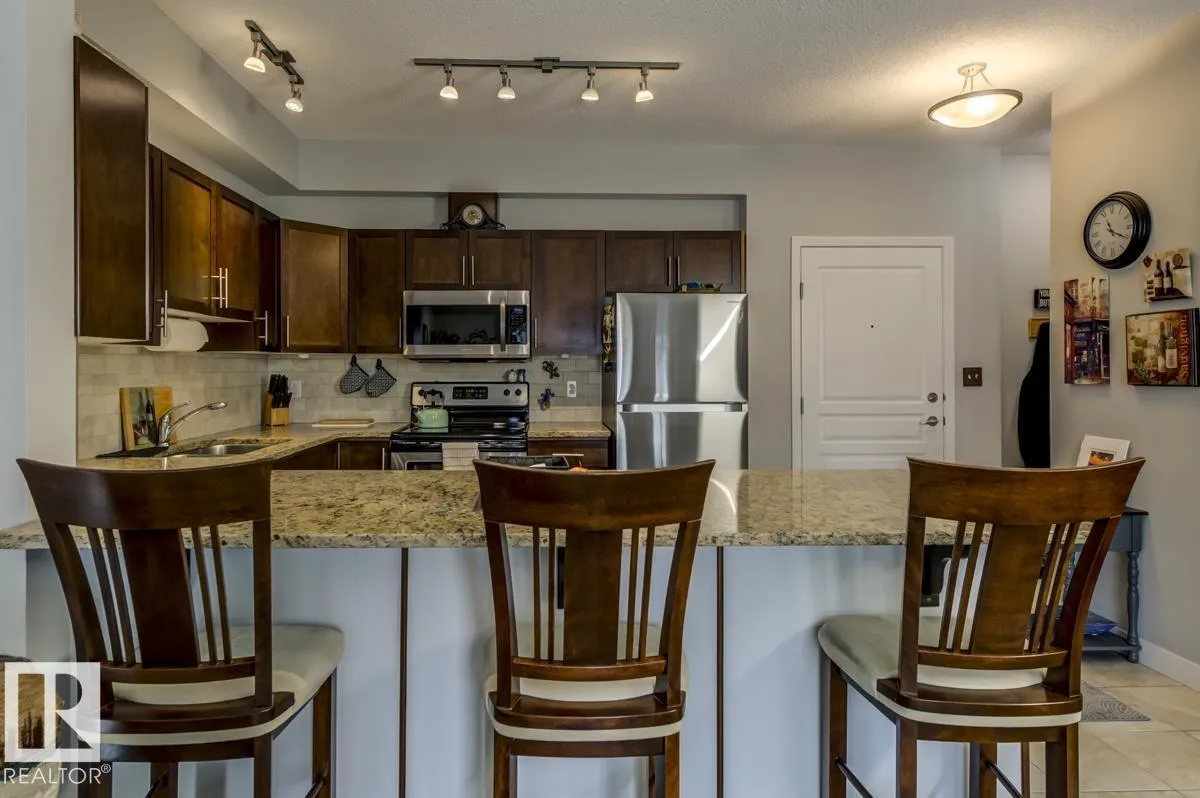 Welcome to Californian Parkland in Glastonbury! This clean & bright 1 bedroom condo features 9' ceilings and a well-planned, open concept layout. The spacious kitchen offers tile flooring, granite countertops, stainless steel appliances, plenty of cabinets (including pot drawers), and large breakfast bar. The large living room has modern vinyl plank flooring, a corner fireplace (ornamental), and access to the private balcony. The generous primary bedroom includes a walk-through closet and direct access to the 4-piece bathroom (also accessible from the hall). Enjoy the convenience of in-suite laundry & storage plus the comfort of heated underground parking with secure storage. This well-managed building offers excellent amenities including a fitness room, guest suite, social lounge, and car wash. Pets are allowed with board approval and low condo fees of 404.61 per month include heat and water. Perfectly located near shopping, parks, and restaurants, with easy access to the Anthony Henday and Whitemud too! (id:27476)