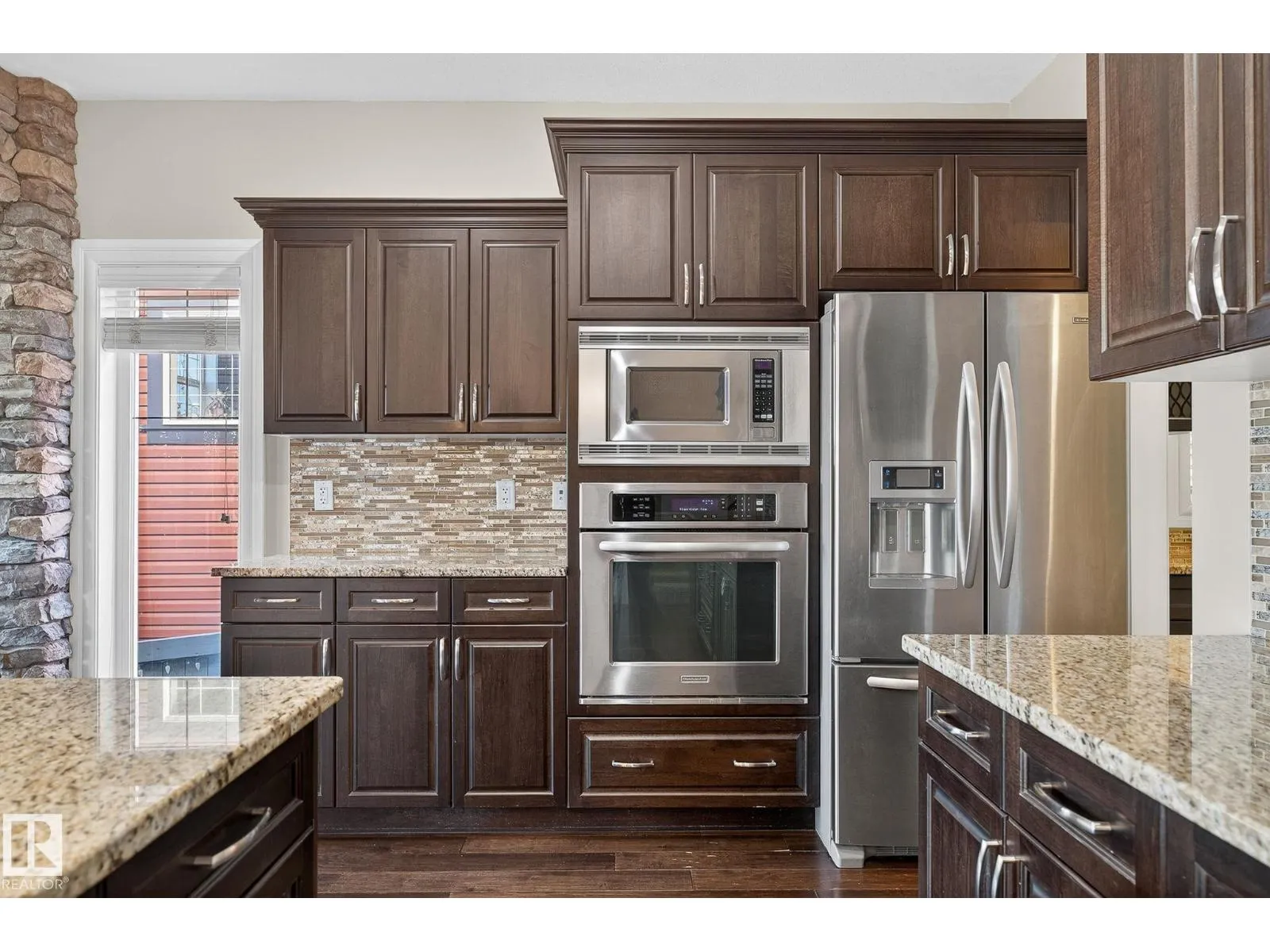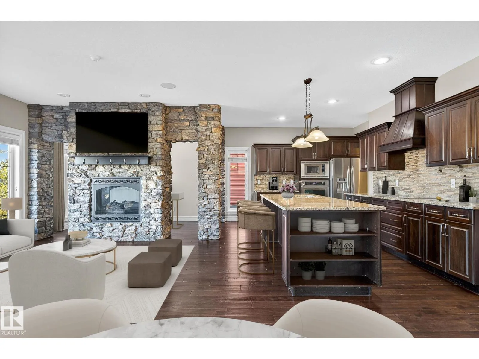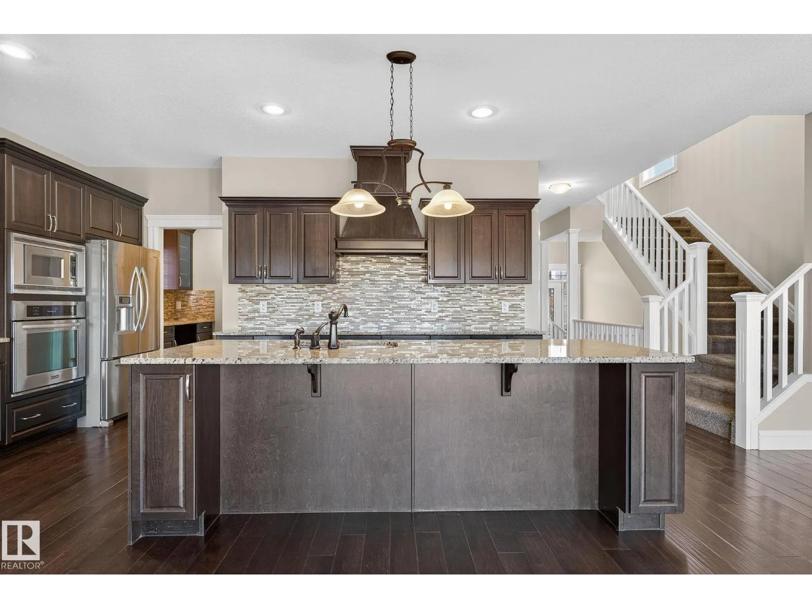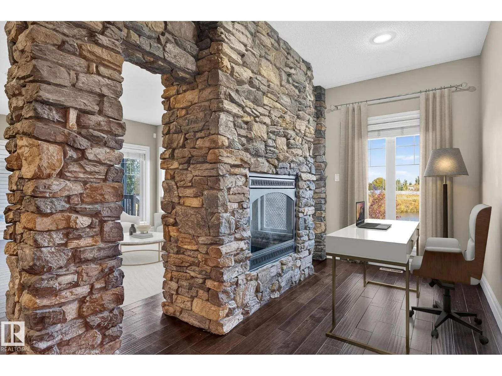 INCREDIBLE VIEW & PRIVACY BACKING POND IN GRANVILLE! Pacesetter Homes built 2800 sqft 2-storey in the sought-after West-End neighbourhood of Granville! You will love the expansive main floor with 9ft ceilings offering formal dining room, mudroom, walk-through pantry, & open concept kitchen/living/dining area overlooking the pond, plus an extra flex space (computer nook, kid's homework station, etc) next to the incredible double sided stone fireplace! Upper level offers 3 large bedrooms, bonus room (10ft ceiling), & laundry. Primary bedroom is massive with it's own double sided fireplace, 5-piece ensuite, walk-in closet, plus extra flex-space (perfect for office, yoga, or reading nook). Basement has framing & subfloor complete, plus a stack of drywall sheets ready to go! Central A/C to keep cool during Summer. Backyard offers a beautiful pond setting & there's no walking path behind you! Conveniently located close to Kim Hung K-9 School, Costco, & all amenities! *Some photos virtually staged* (id:27476)