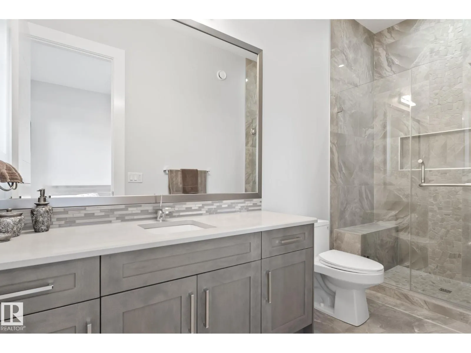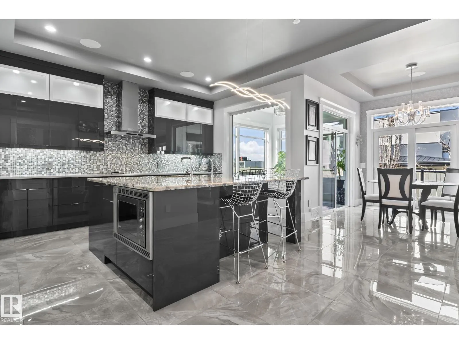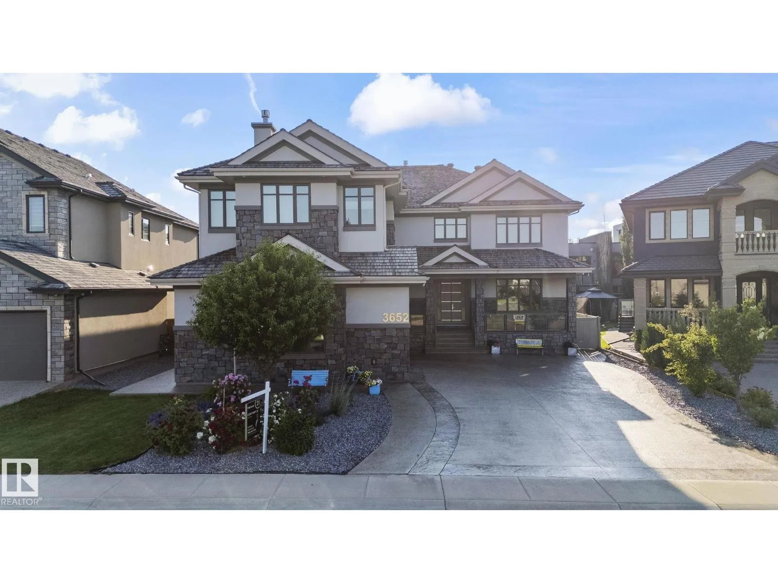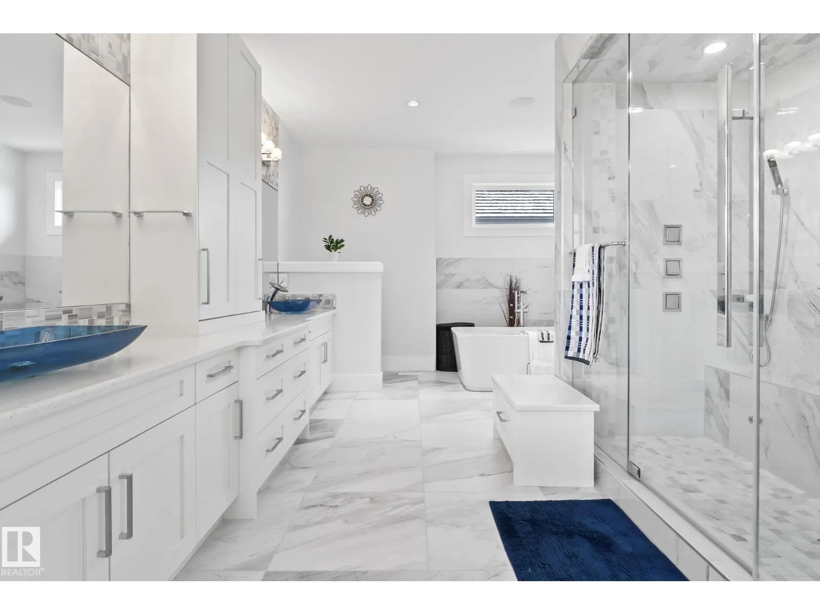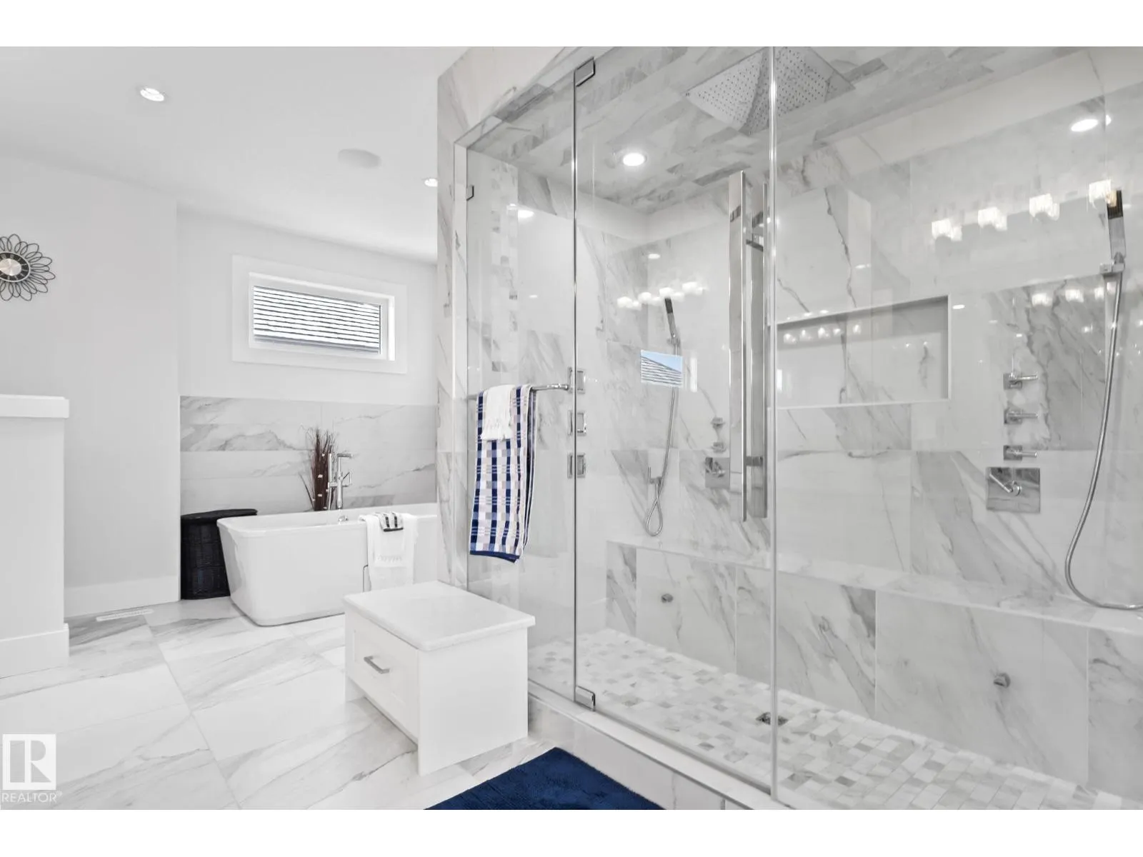 Executive living in southwest Edmonton awaits! Located in the highly sought after community of Upper Windermere, this masterpiece is absolutely brimming with features & upgrades, too many to list. The main floor boasts a grand open to below entrance that extends into the living room and over to the formal dining area with rare parquet flooring, office with built in desks, bedroom with ensuite, stunning kitchen with wall to wall and floor to ceiling cabinetry, built in appliances, and tucked just beyond that is a full sized spice kitchen. Heading upstairs we have a primary bedroom the size of a modest apartment with its own sitting area, gas fireplace & steam shower, towel warmer, heated flooring, along with 3 additional bedrooms, each with it own ensuite, as well as a bonus room with private balcony. The basement is also fully finished, with a theatre room, gym, 2 bedrooms and 2 full bathrooms, bar area, as well as a full kitchen, and secondary laundry rough-ins, perfect for multi-gen living. A MUST SEE!! (id:27476)