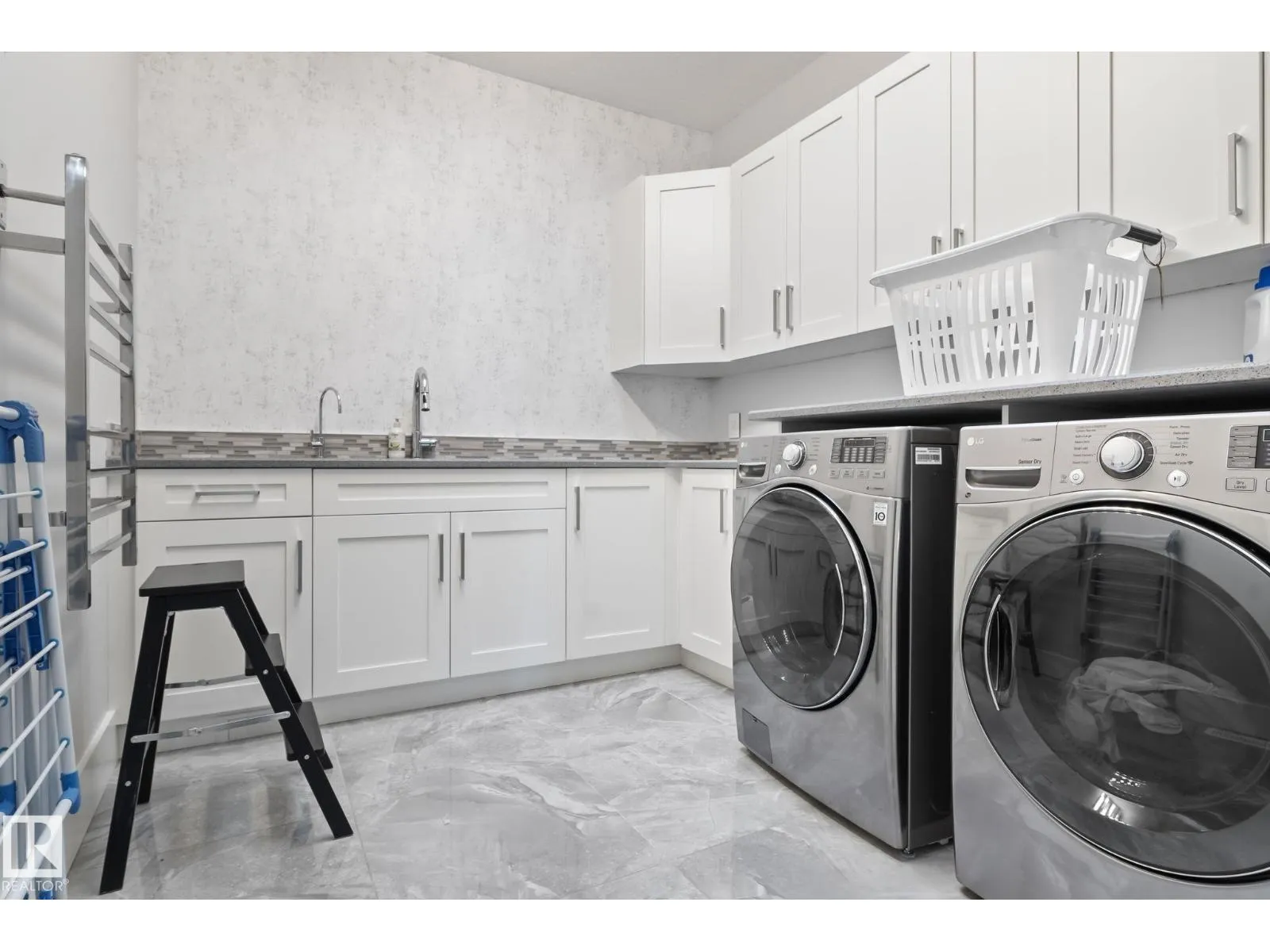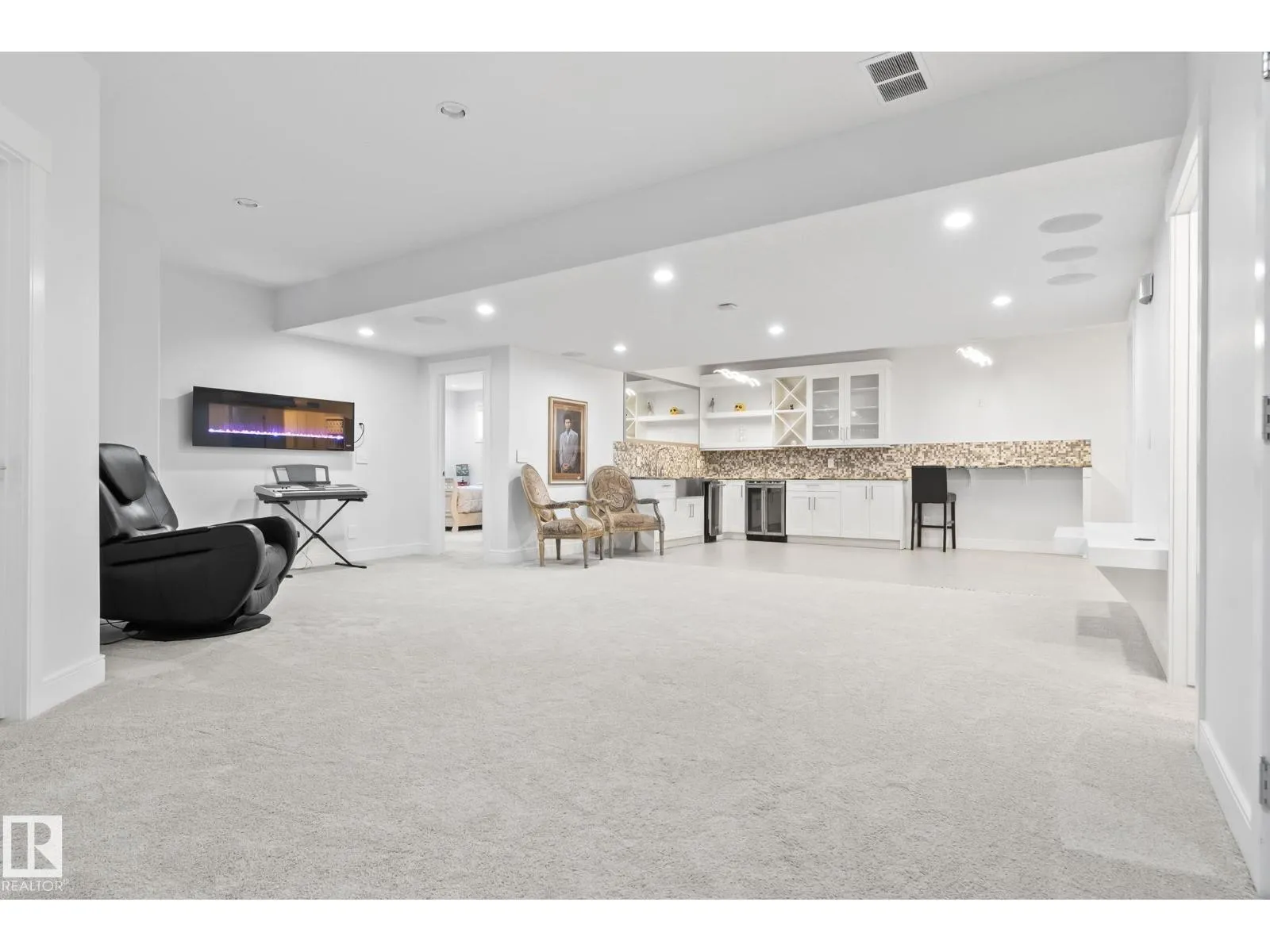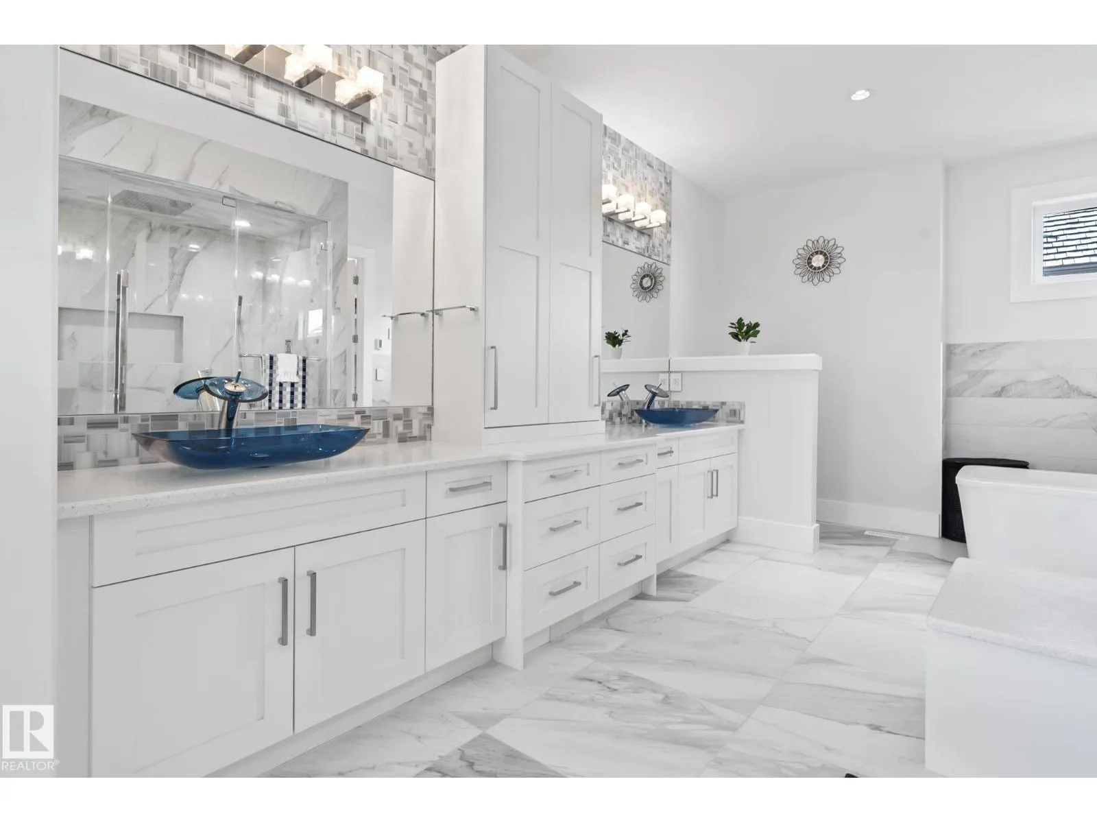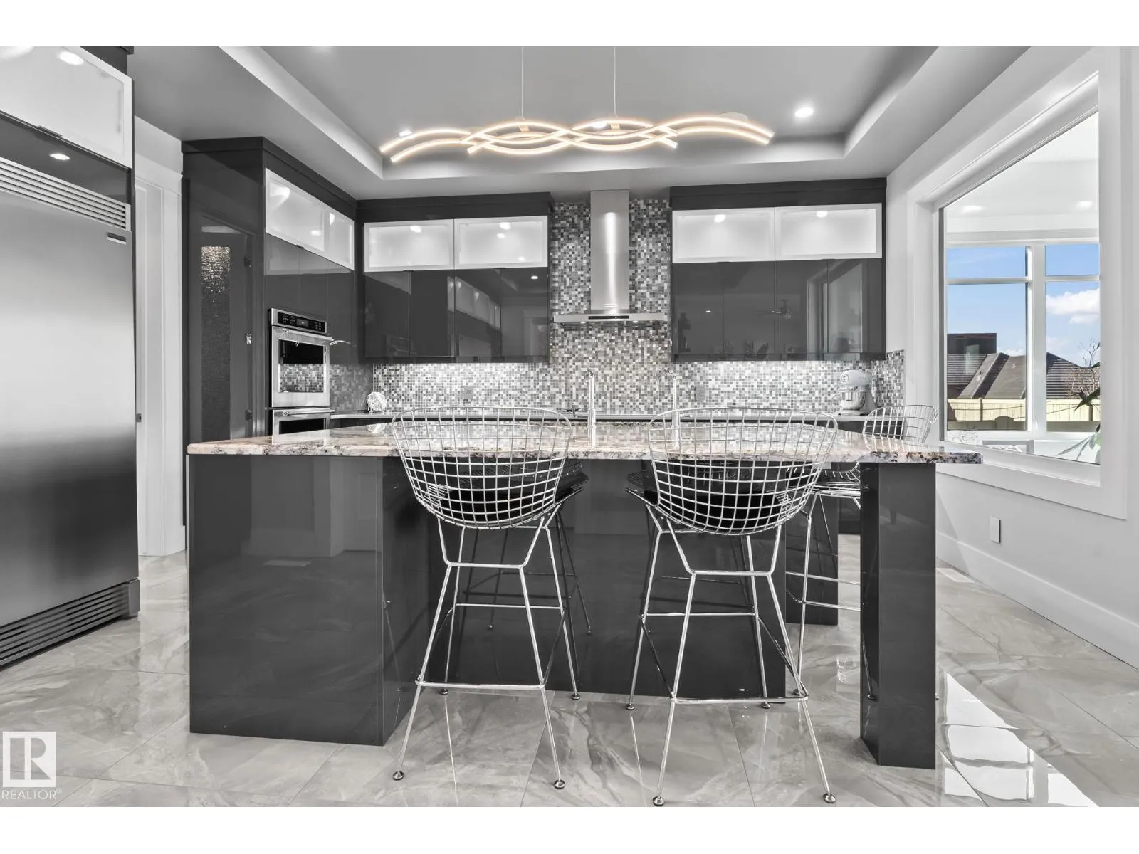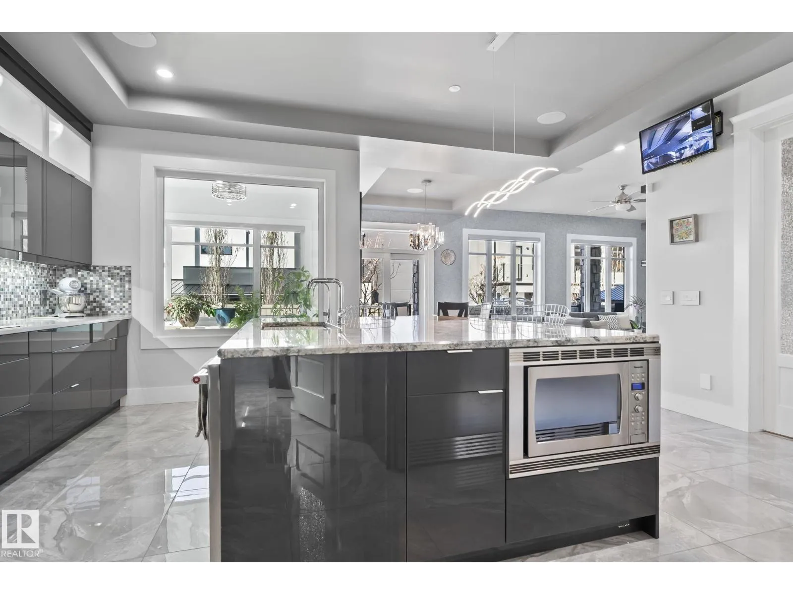 Executive living in southwest Edmonton awaits! Located in the highly sought after community of Upper Windermere, this masterpiece is absolutely brimming with features & upgrades, too many to list. The main floor boasts a grand open to below entrance that extends into the living room and over to the formal dining area with rare parquet flooring, office with built in desks, bedroom with ensuite, stunning kitchen with wall to wall and floor to ceiling cabinetry, built in appliances, and tucked just beyond that is a full sized spice kitchen. Heading upstairs we have a primary bedroom the size of a modest apartment with its own sitting area, gas fireplace & steam shower, towel warmer, heated flooring, along with 3 additional bedrooms, each with it own ensuite, as well as a bonus room with private balcony. The basement is also fully finished, with a theatre room, gym, 2 bedrooms and 2 full bathrooms, bar area, as well as a full kitchen, and secondary laundry rough-ins, perfect for multi-gen living. A MUST SEE!! (id:27476)