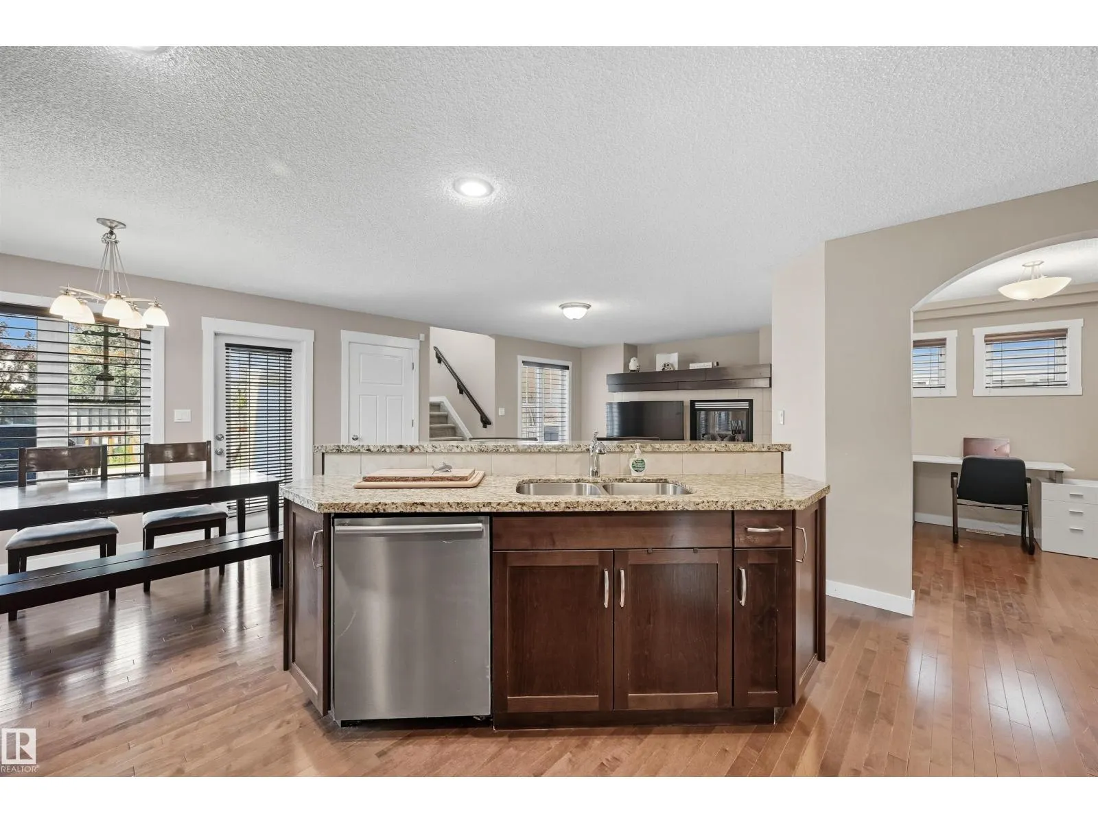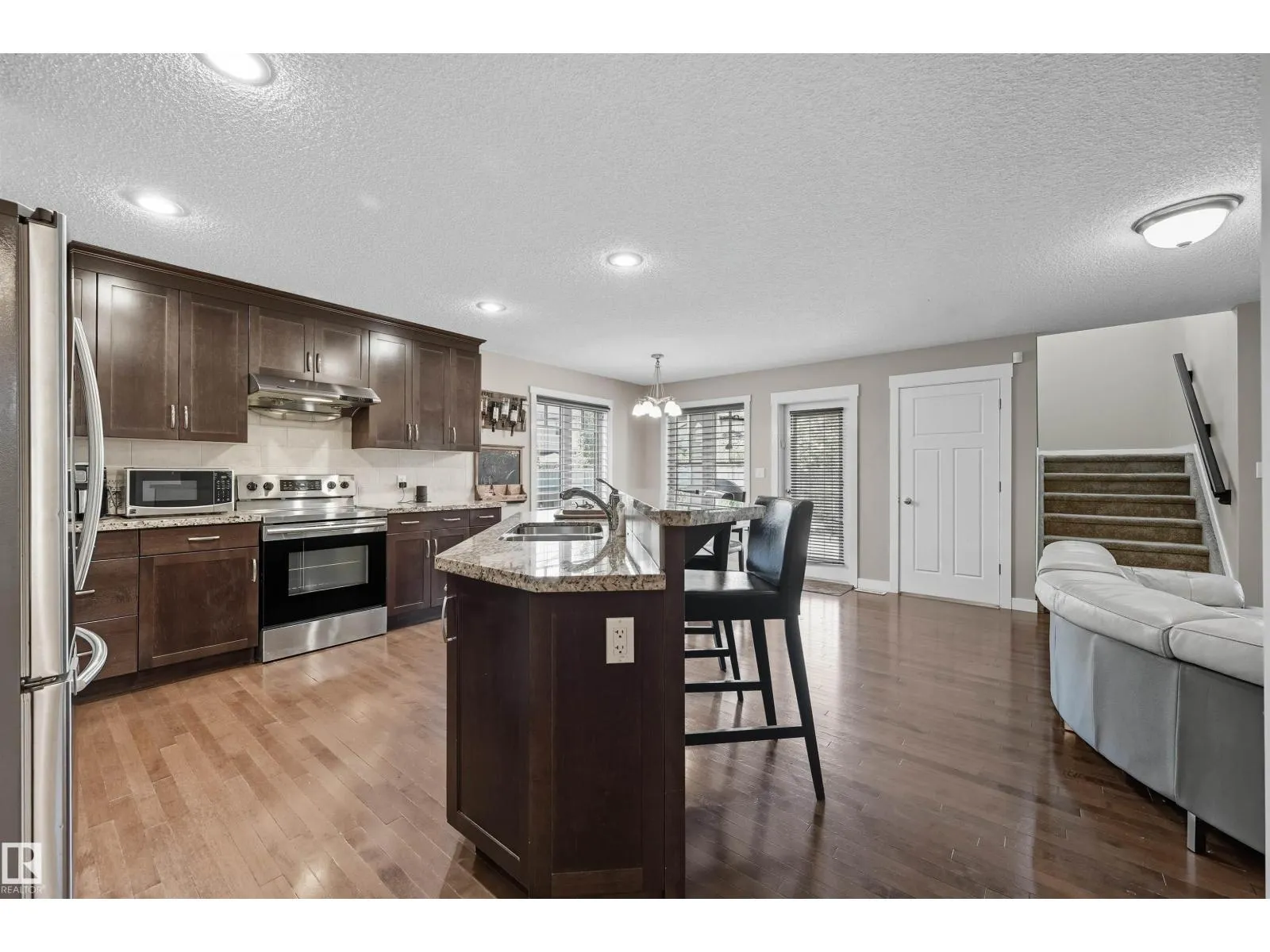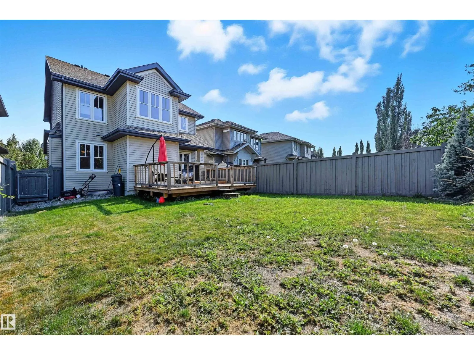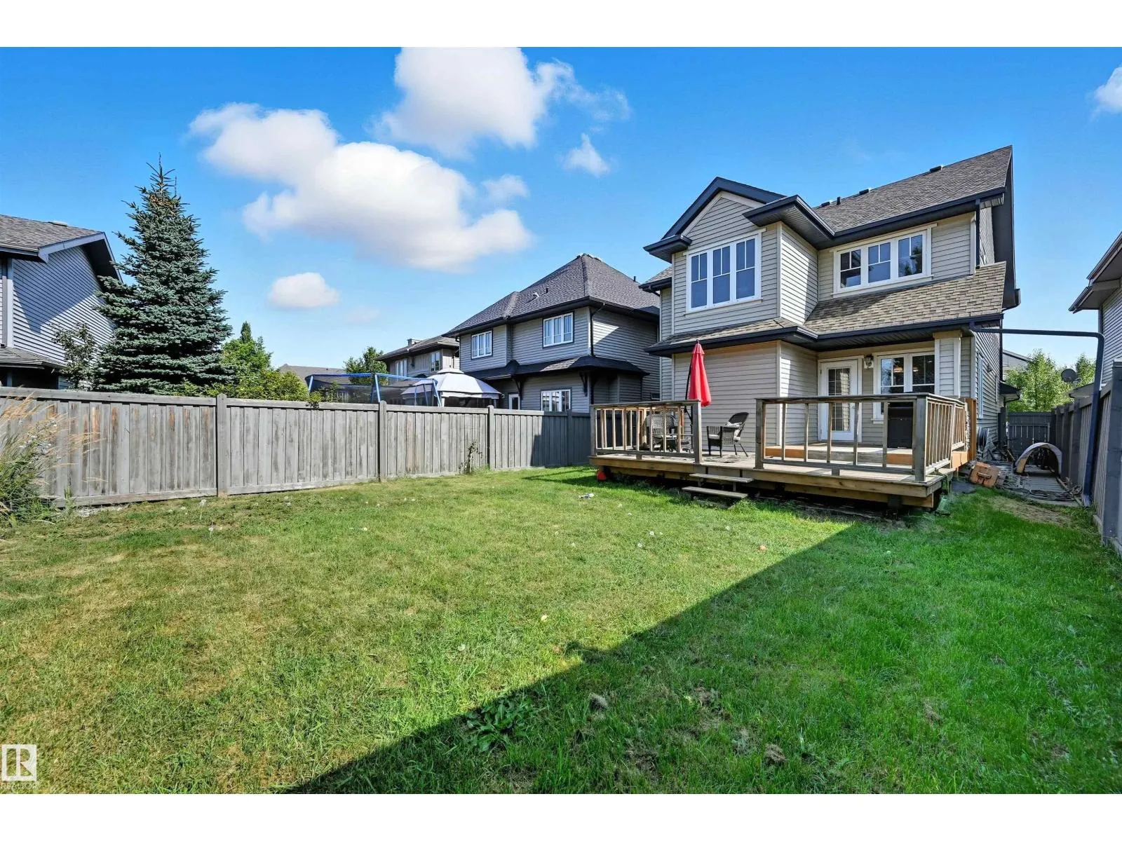 This 2-storey has everything on your checklist including a fabulous Ambleside location just steps to Dr. Margaret-Ann Armour School! Open concept plan w/ lots of natural light, ideal for those who love to entertain. Main floor flex rm can be used as a den or formal dining rm. Living rm located right off of kitchen & bright dining nook. Enjoy spacious kitchen w/ cabinets galore, stainless steel appliances & a W/I pantry leading to mudrm. Upper level has 3 spacious bdrms & bonus rm (all baths have granite counters & tile flooring). Sunny primary rm boasts a sitting area, walk-in closet plus double closets. Ensuite equipped w/ dual sinks, oversized soaker tub & separate shower. Extended deck for outdoor entertaining plus big yard! NEW BASEMENT development adds addtl living room, 2 more bdrms & bathrm roughed-in! Upgrades include newer carpet, AC, granite throughout, central vac, hardwood, water softener & more! Close to parks/pond, transit, shopping/Windermere Currents & easy access to the Henday (id:27476)