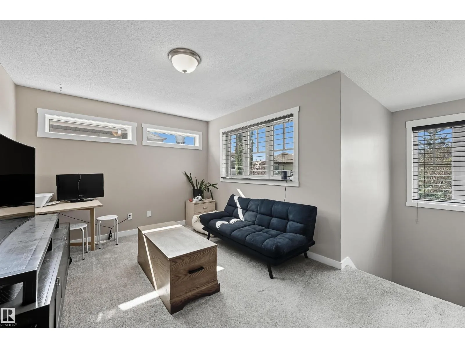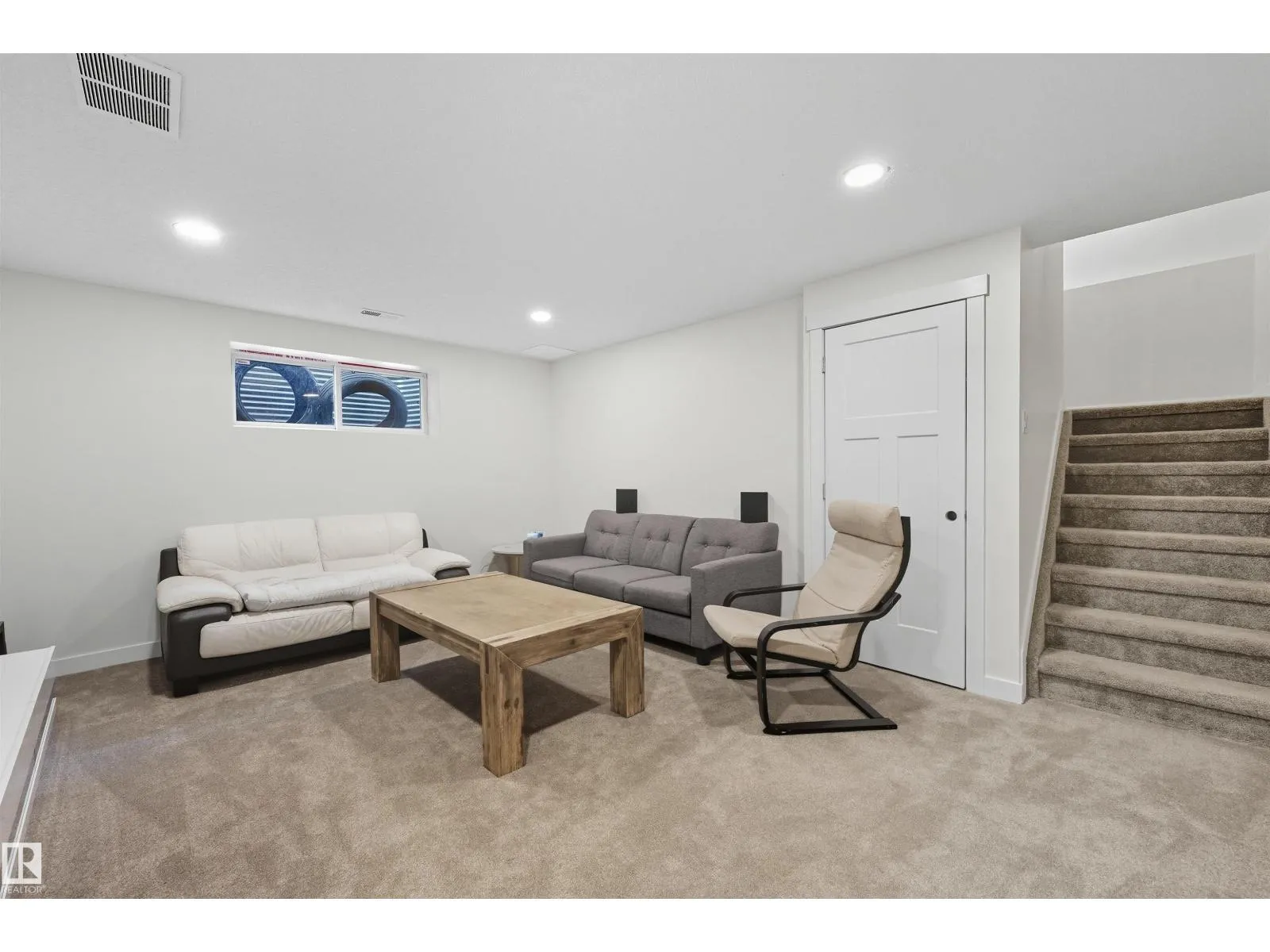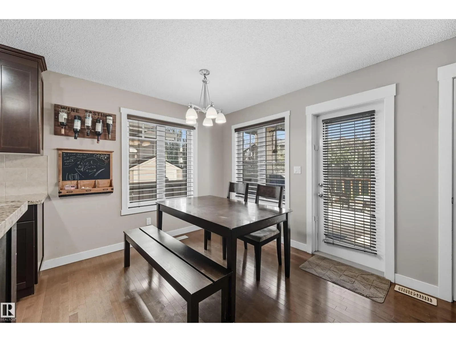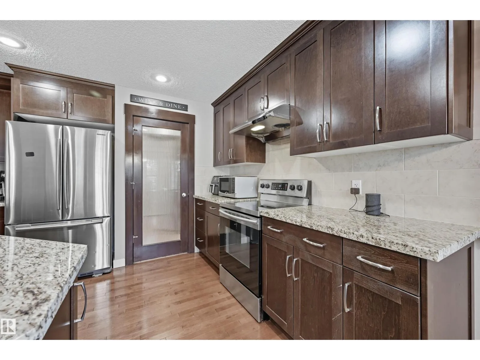 This 2-storey has everything on your checklist including a fabulous Ambleside location just steps to Dr. Margaret-Ann Armour School! Open concept plan w/ lots of natural light, ideal for those who love to entertain. Main floor flex rm can be used as a den or formal dining rm. Living rm located right off of kitchen & bright dining nook. Enjoy spacious kitchen w/ cabinets galore, stainless steel appliances & a W/I pantry leading to mudrm. Upper level has 3 spacious bdrms & bonus rm (all baths have granite counters & tile flooring). Sunny primary rm boasts a sitting area, walk-in closet plus double closets. Ensuite equipped w/ dual sinks, oversized soaker tub & separate shower. Extended deck for outdoor entertaining plus big yard! NEW BASEMENT development adds addtl living room, 2 more bdrms & bathrm roughed-in! Upgrades include newer carpet, AC, granite throughout, central vac, hardwood, water softener & more! Close to parks/pond, transit, shopping/Windermere Currents & easy access to the Henday (id:27476)