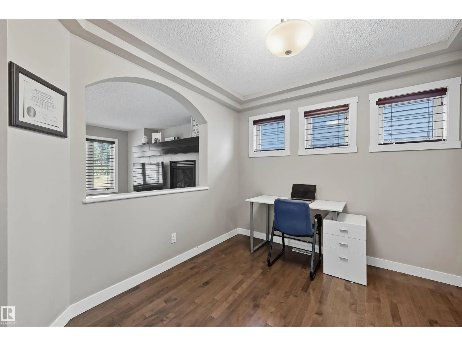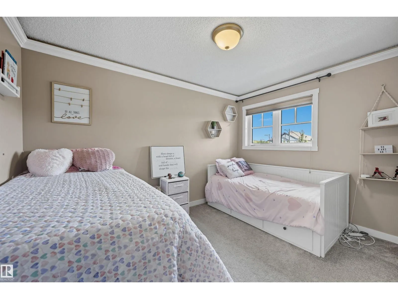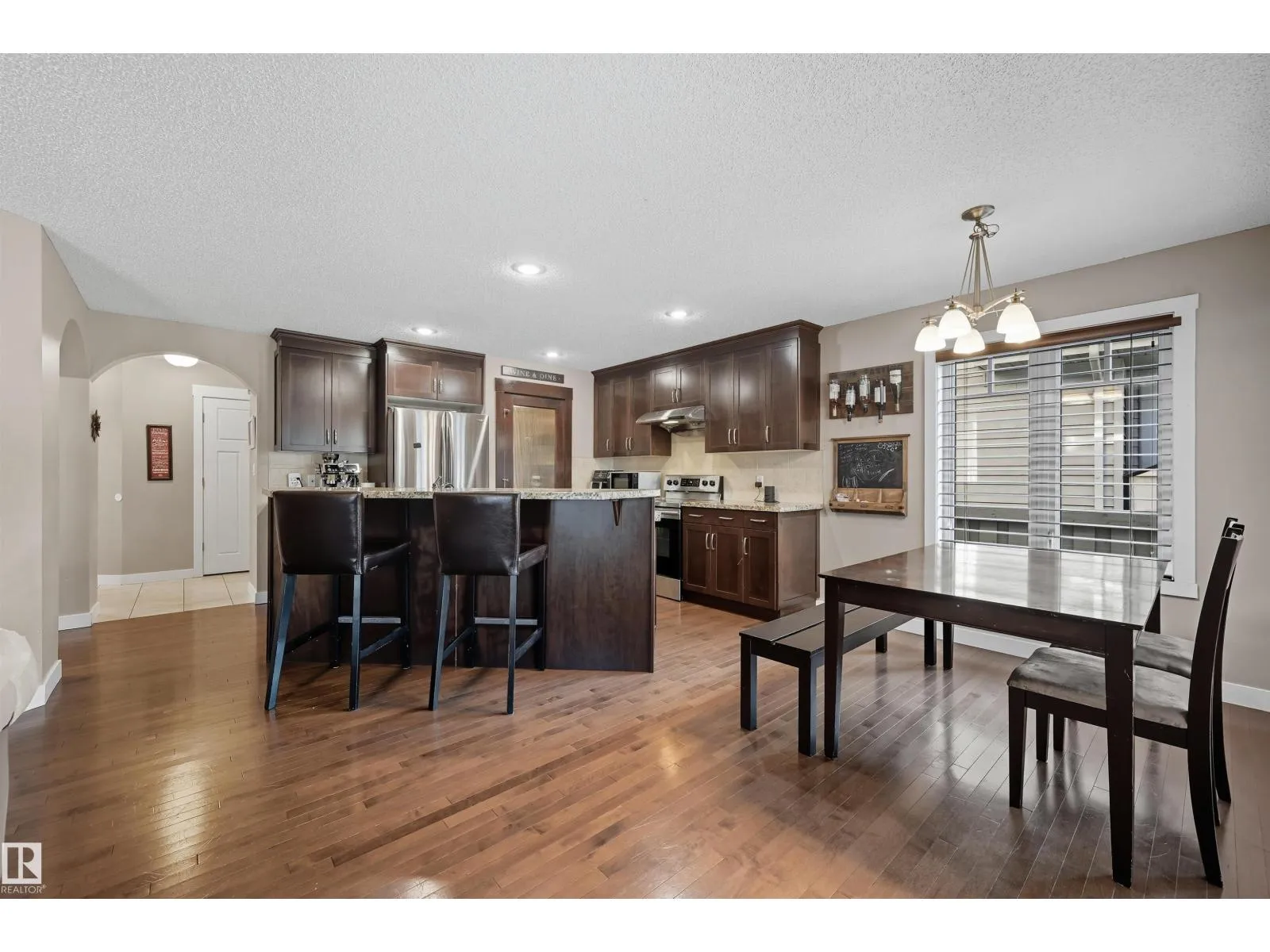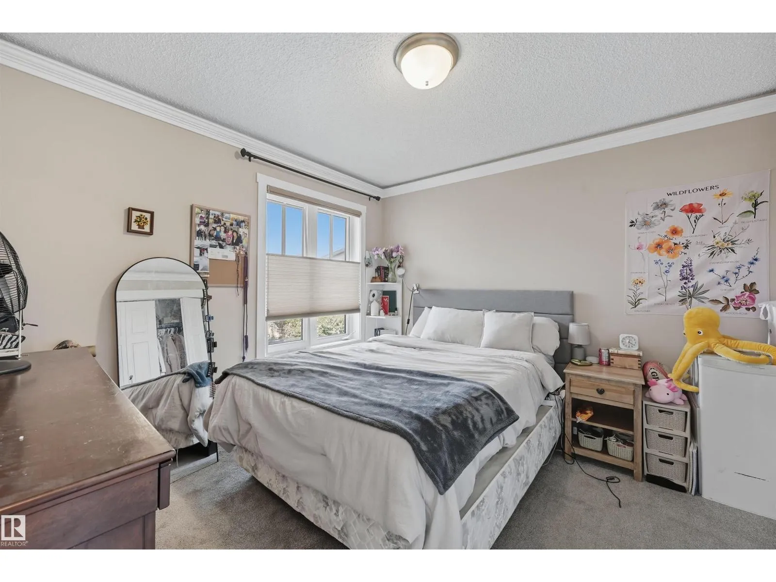 This 2-storey has everything on your checklist including a fabulous Ambleside location just steps to Dr. Margaret-Ann Armour School! Open concept plan w/ lots of natural light, ideal for those who love to entertain. Main floor flex rm can be used as a den or formal dining rm. Living rm located right off of kitchen & bright dining nook. Enjoy spacious kitchen w/ cabinets galore, stainless steel appliances & a W/I pantry leading to mudrm. Upper level has 3 spacious bdrms & bonus rm (all baths have granite counters & tile flooring). Sunny primary rm boasts a sitting area, walk-in closet plus double closets. Ensuite equipped w/ dual sinks, oversized soaker tub & separate shower. Extended deck for outdoor entertaining plus big yard! NEW BASEMENT development adds addtl living room, 2 more bdrms & bathrm roughed-in! Upgrades include newer carpet, AC, granite throughout, central vac, hardwood, water softener & more! Close to parks/pond, transit, shopping/Windermere Currents & easy access to the Henday (id:27476)