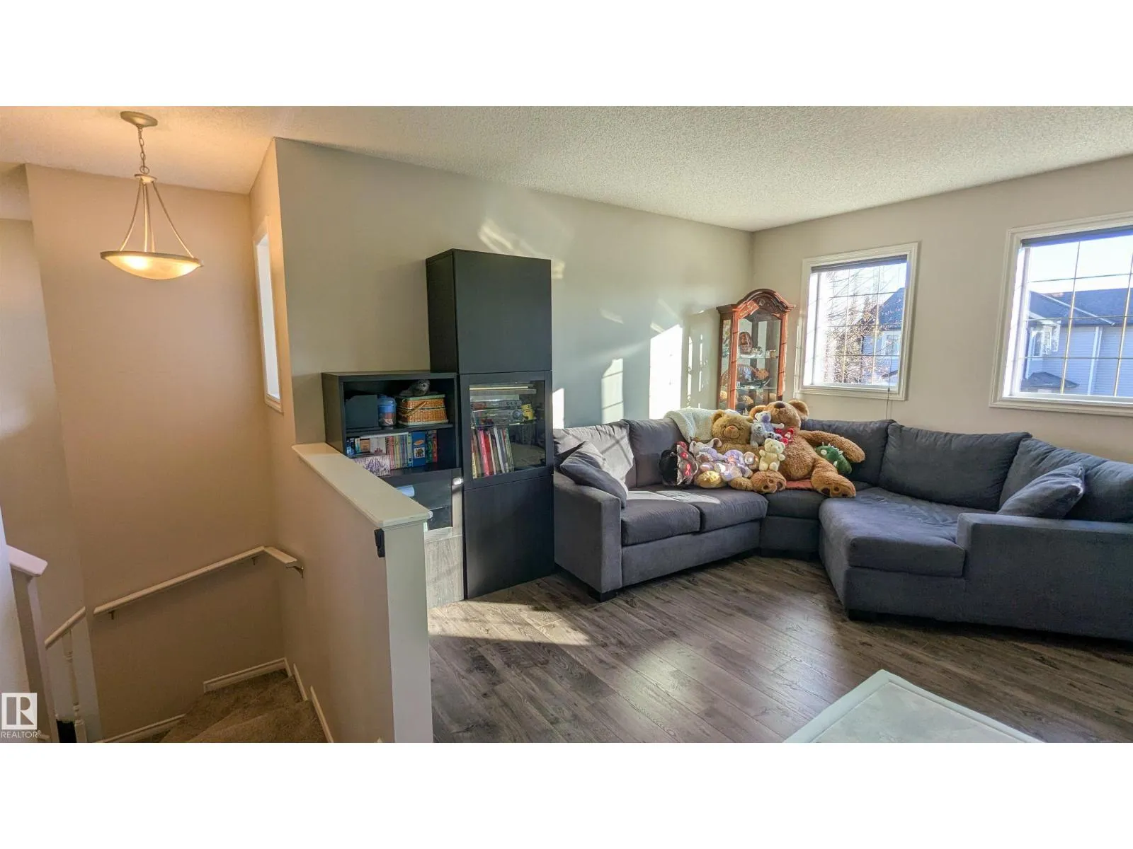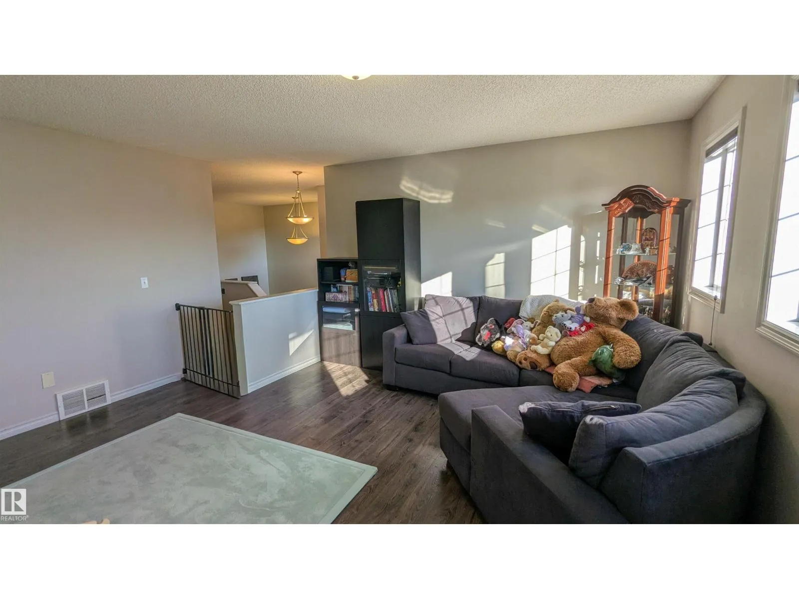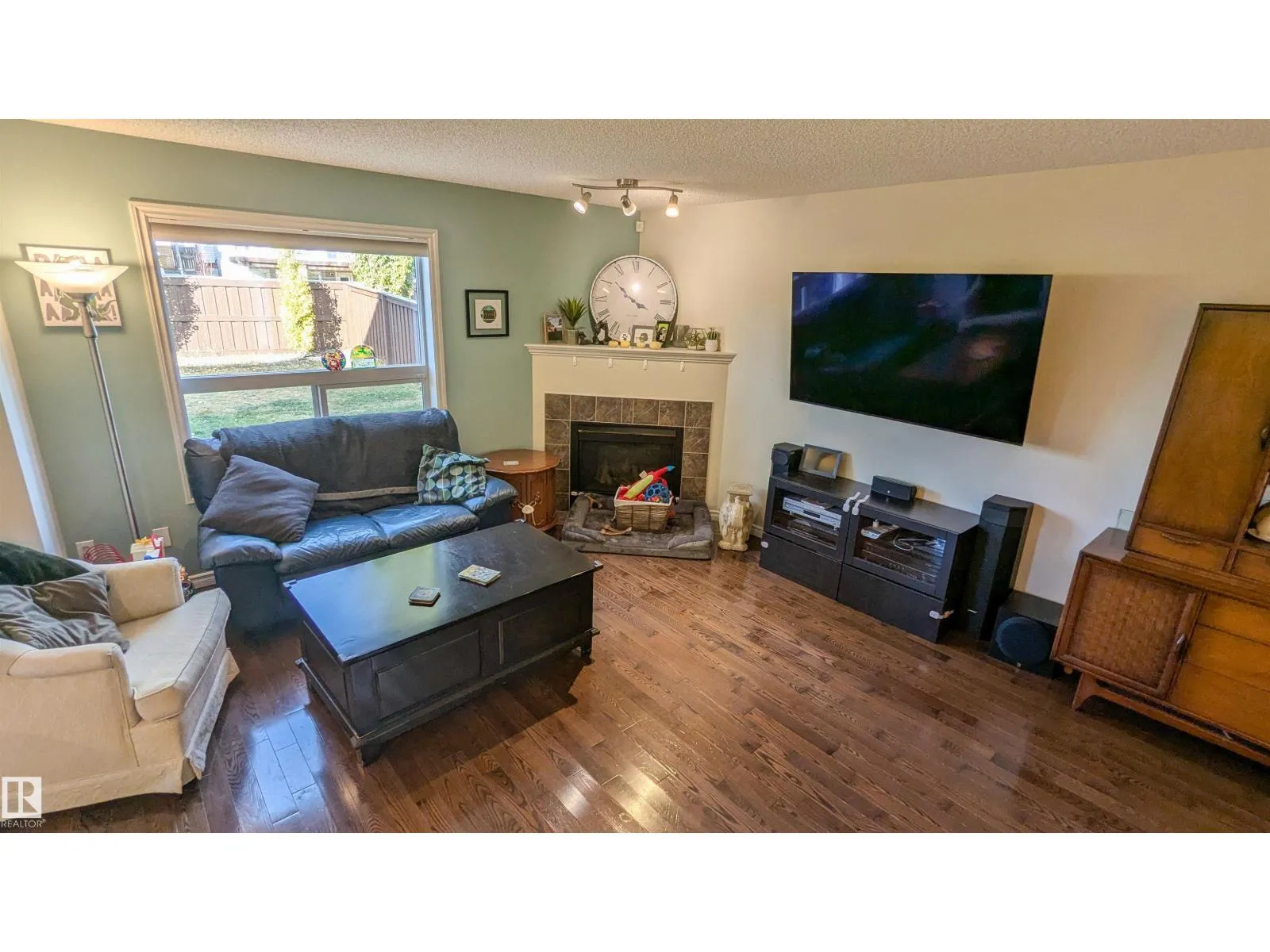 Spacious and family-friendly, this fully finished 4-bedroom, 3.5-bath home offers comfort, function, and room to grow. The main floor features hardwood flooring, a cozy gas fireplace, and an open-concept layout with plenty of natural light. The kitchen includes stainless steel appliances, spacious pantry, and a newer washer and dryer for everyday convenience. Upstairs youâll find a bright bonus room, generous bedrooms including a primary suite with walk-in closet and ensuite, plus updated flooring throughout. The finished basement adds flexible living space perfect for family use, hobbies, or guests. Enjoy summer evenings in the backyard with a stamped concrete patio, and access to a walking path that leads to schools, parks, and the rec centre. With central air conditioning, an attached garage, and a great location close to every amenity, this home is ready for your family to make it their own. (id:27476)