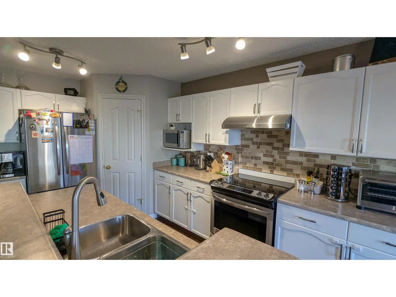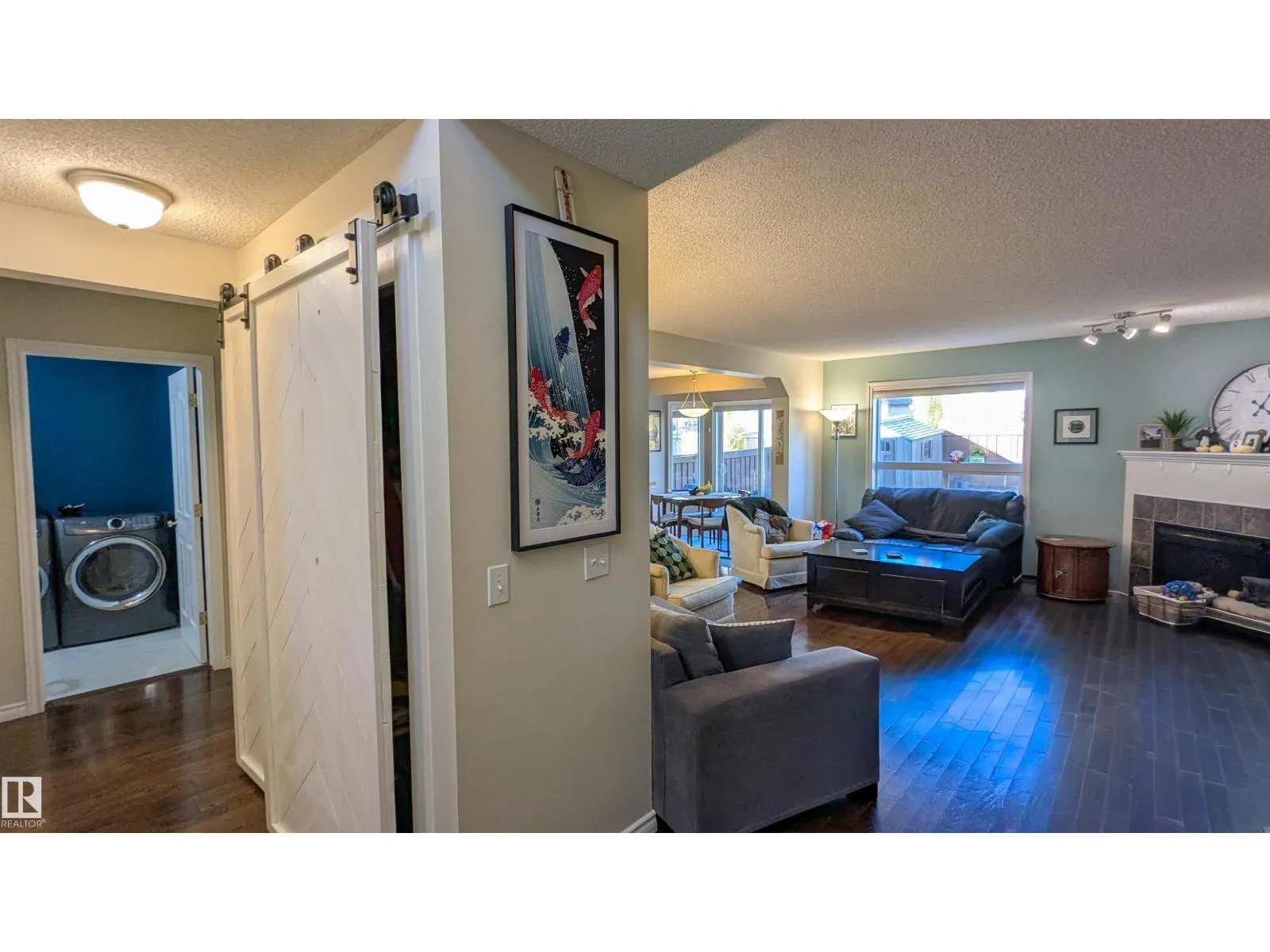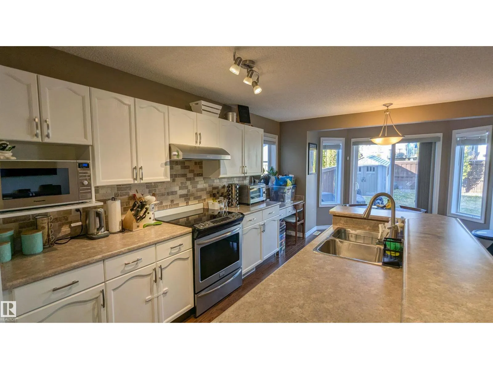 Spacious and family-friendly, this fully finished 4-bedroom, 3.5-bath home offers comfort, function, and room to grow. The main floor features hardwood flooring, a cozy gas fireplace, and an open-concept layout with plenty of natural light. The kitchen includes stainless steel appliances, spacious pantry, and a newer washer and dryer for everyday convenience. Upstairs youâll find a bright bonus room, generous bedrooms including a primary suite with walk-in closet and ensuite, plus updated flooring throughout. The finished basement adds flexible living space perfect for family use, hobbies, or guests. Enjoy summer evenings in the backyard with a stamped concrete patio, and access to a walking path that leads to schools, parks, and the rec centre. With central air conditioning, an attached garage, and a great location close to every amenity, this home is ready for your family to make it their own. (id:27476)