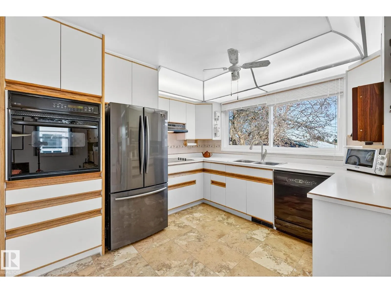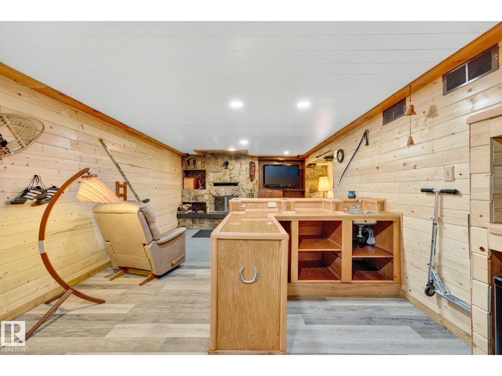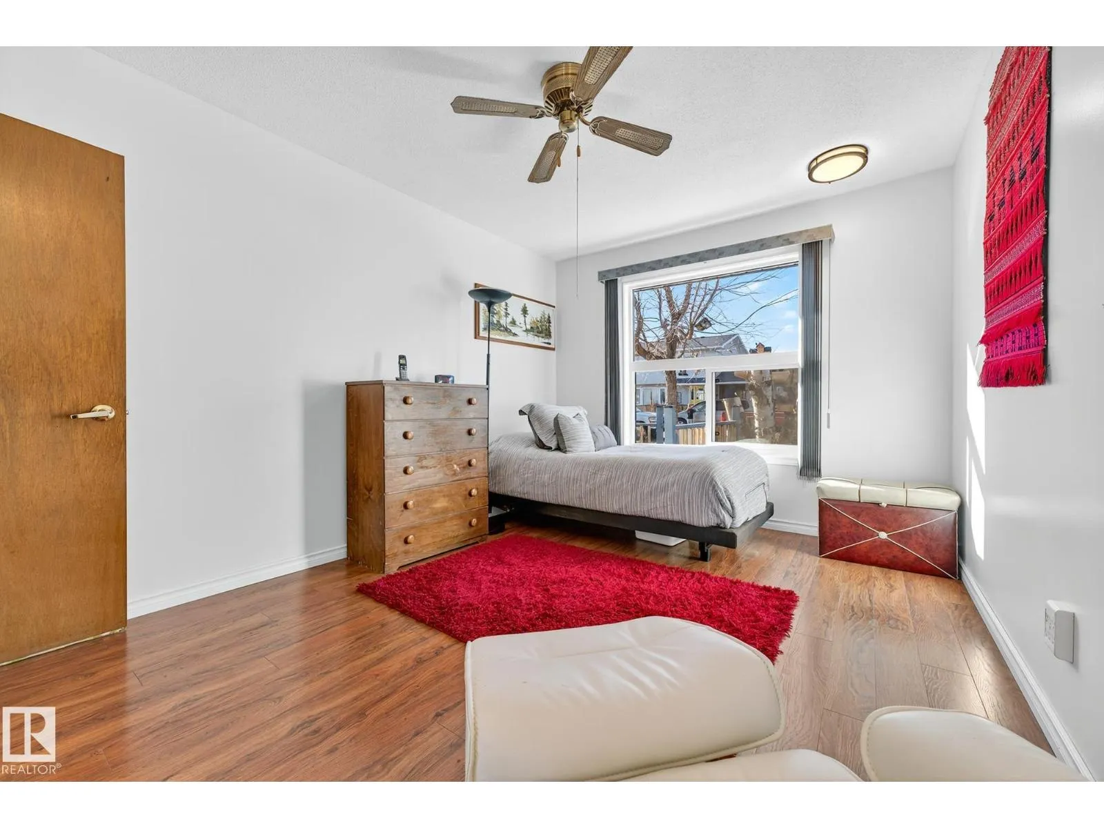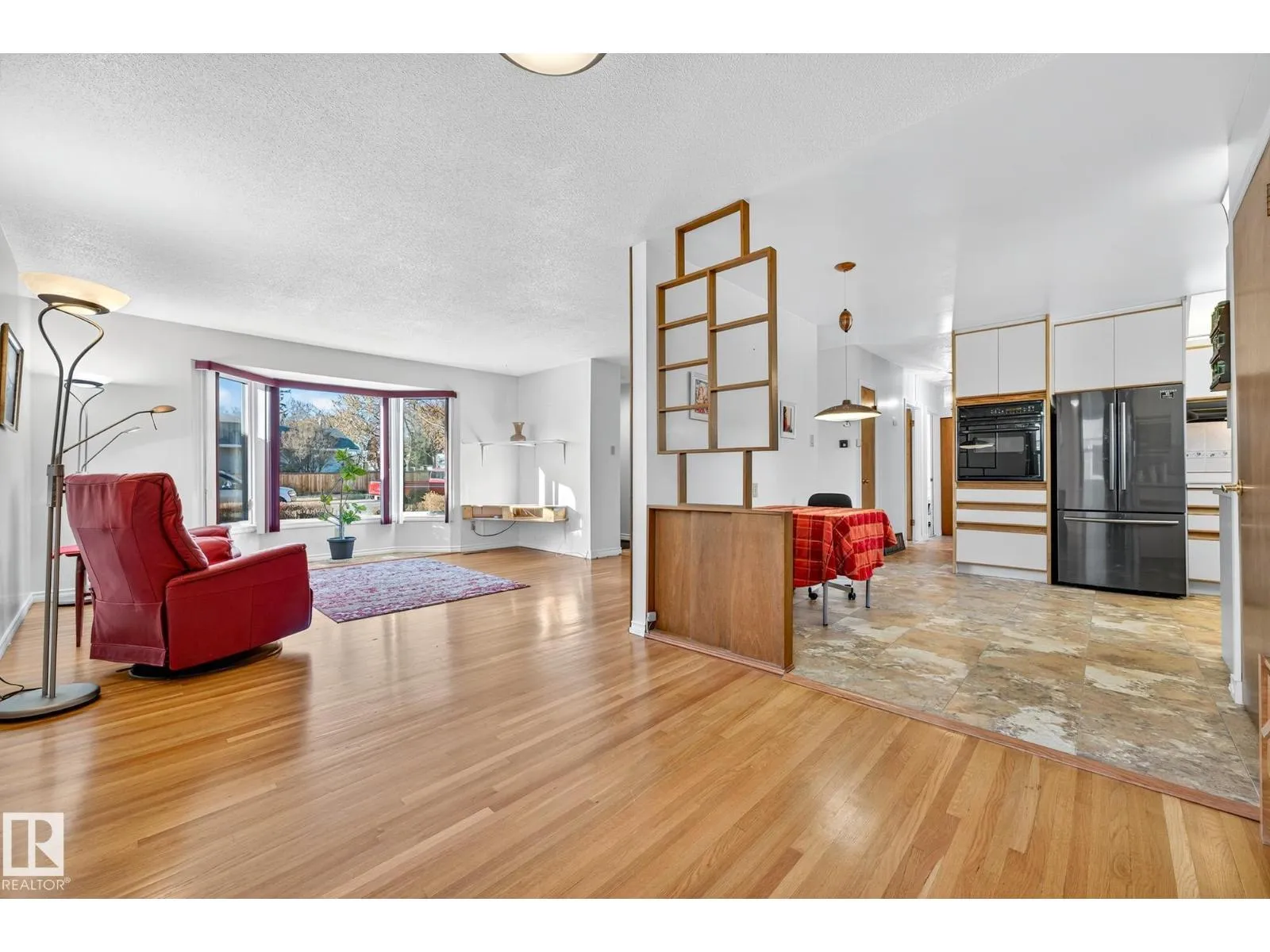 Nestled just off Ada Boulevard and steps from Rundle Park, this bungalow tells a story of warmth and belonging. Morning light filters through triple-pane Pella windows, catching the texture of hardwood floors and mid-century details that speak to another era of craftsmanship. The living and dining spaces flow effortlessly, creating room for conversation and quiet moments alike, while the bright kitchen overlooks the backyard, a view of changing seasons framed by trees and sky. Three main-floor bedrooms offer comfort and calm, and downstairs, a pine-paneled rec room with a wood-burning fireplace and wet bar sets the stage for gatherings that linger into the night. Two additional bedrooms, a full bath, and generous storage complete the homeâs thoughtful layout. Outside, a pergola-topped deck and oversized heated double garage extend both function and charm. In a community defined by river trails, parks, and connection, this is a haven where every season feels like home. (id:27476)