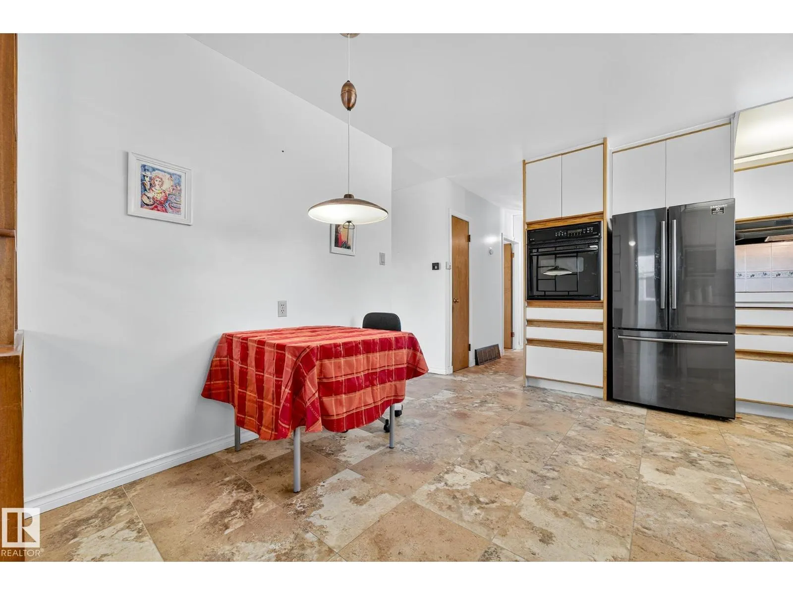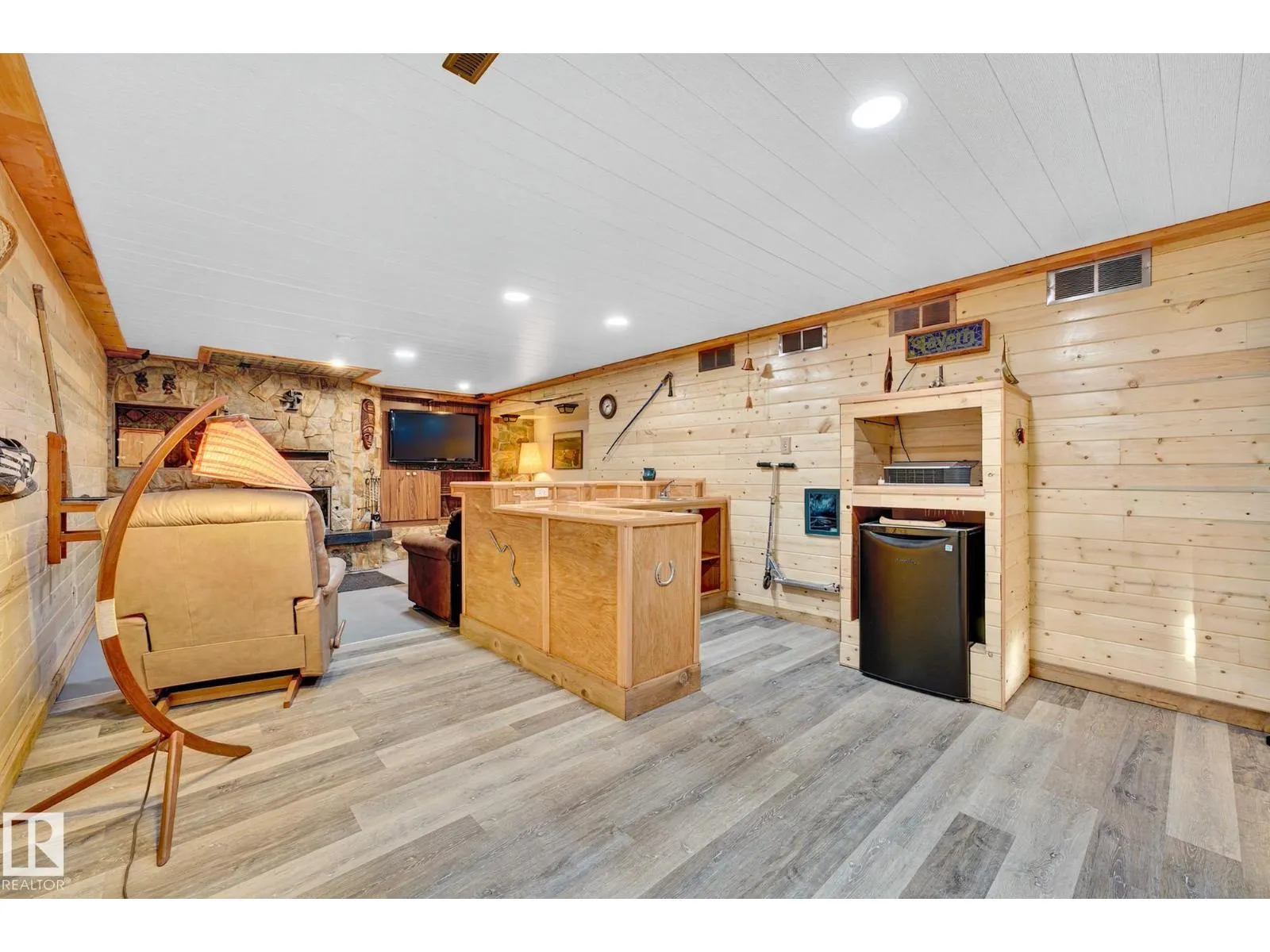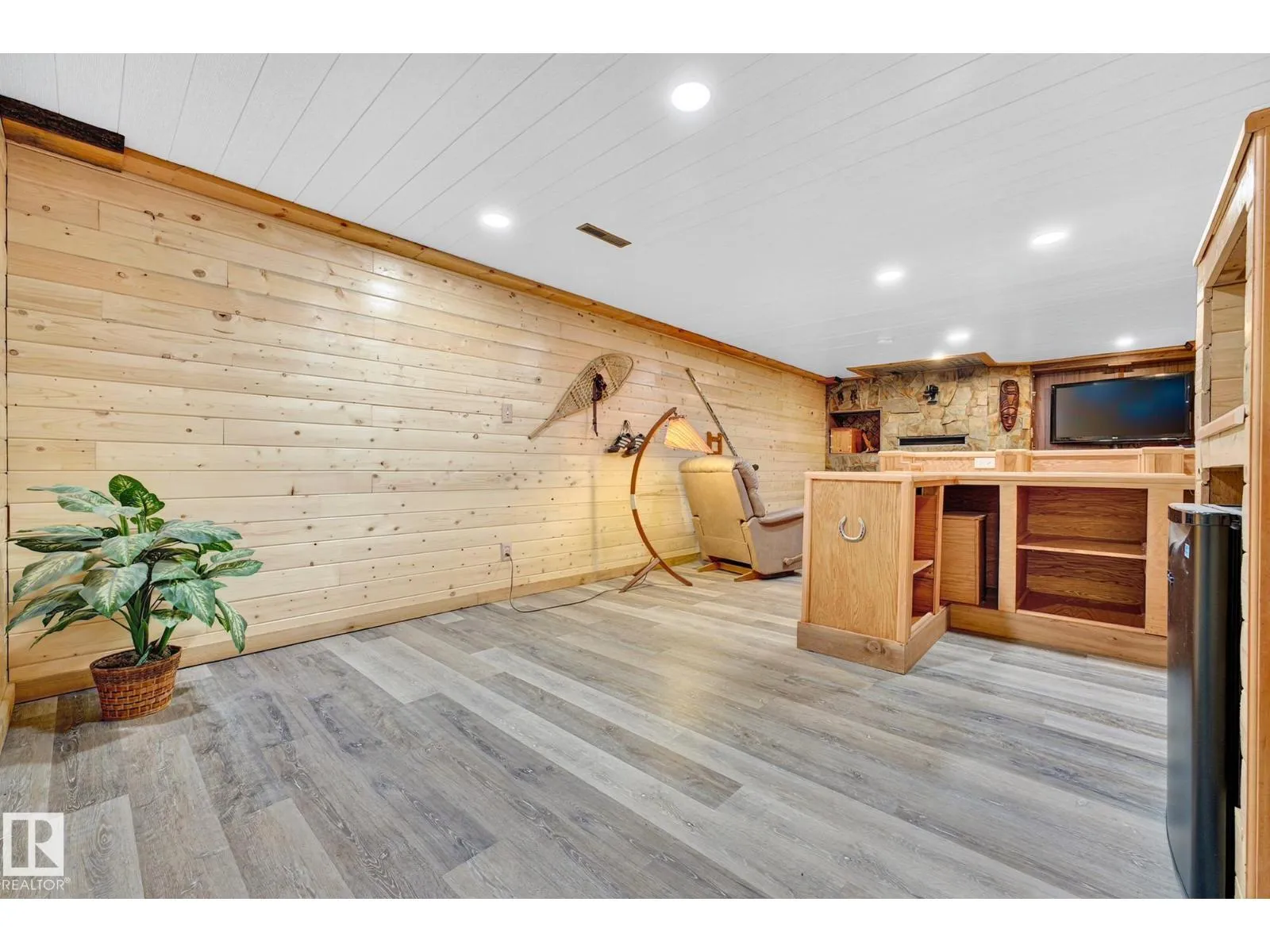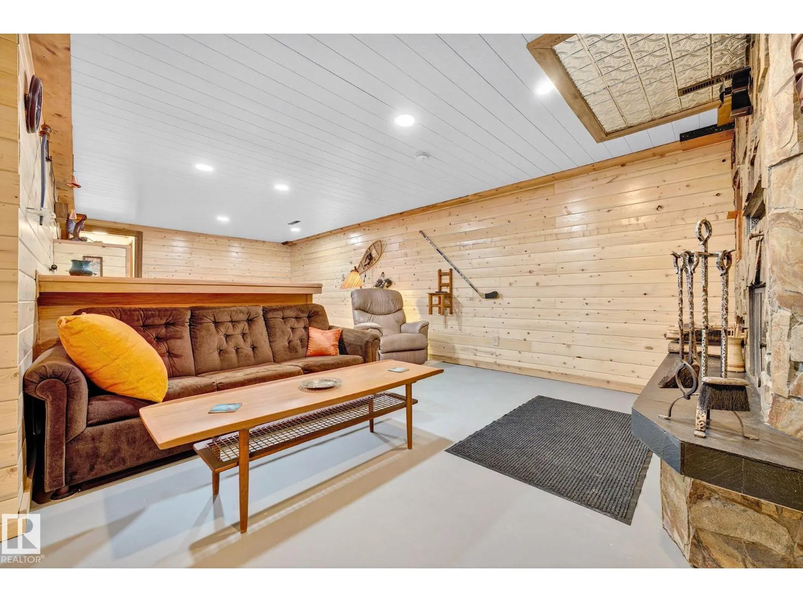 Nestled just off Ada Boulevard and steps from Rundle Park, this bungalow tells a story of warmth and belonging. Morning light filters through triple-pane Pella windows, catching the texture of hardwood floors and mid-century details that speak to another era of craftsmanship. The living and dining spaces flow effortlessly, creating room for conversation and quiet moments alike, while the bright kitchen overlooks the backyard, a view of changing seasons framed by trees and sky. Three main-floor bedrooms offer comfort and calm, and downstairs, a pine-paneled rec room with a wood-burning fireplace and wet bar sets the stage for gatherings that linger into the night. Two additional bedrooms, a full bath, and generous storage complete the homeâs thoughtful layout. Outside, a pergola-topped deck and oversized heated double garage extend both function and charm. In a community defined by river trails, parks, and connection, this is a haven where every season feels like home. (id:27476)