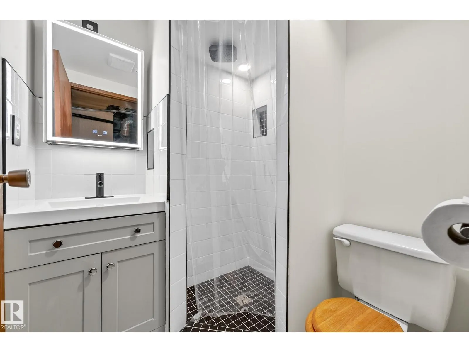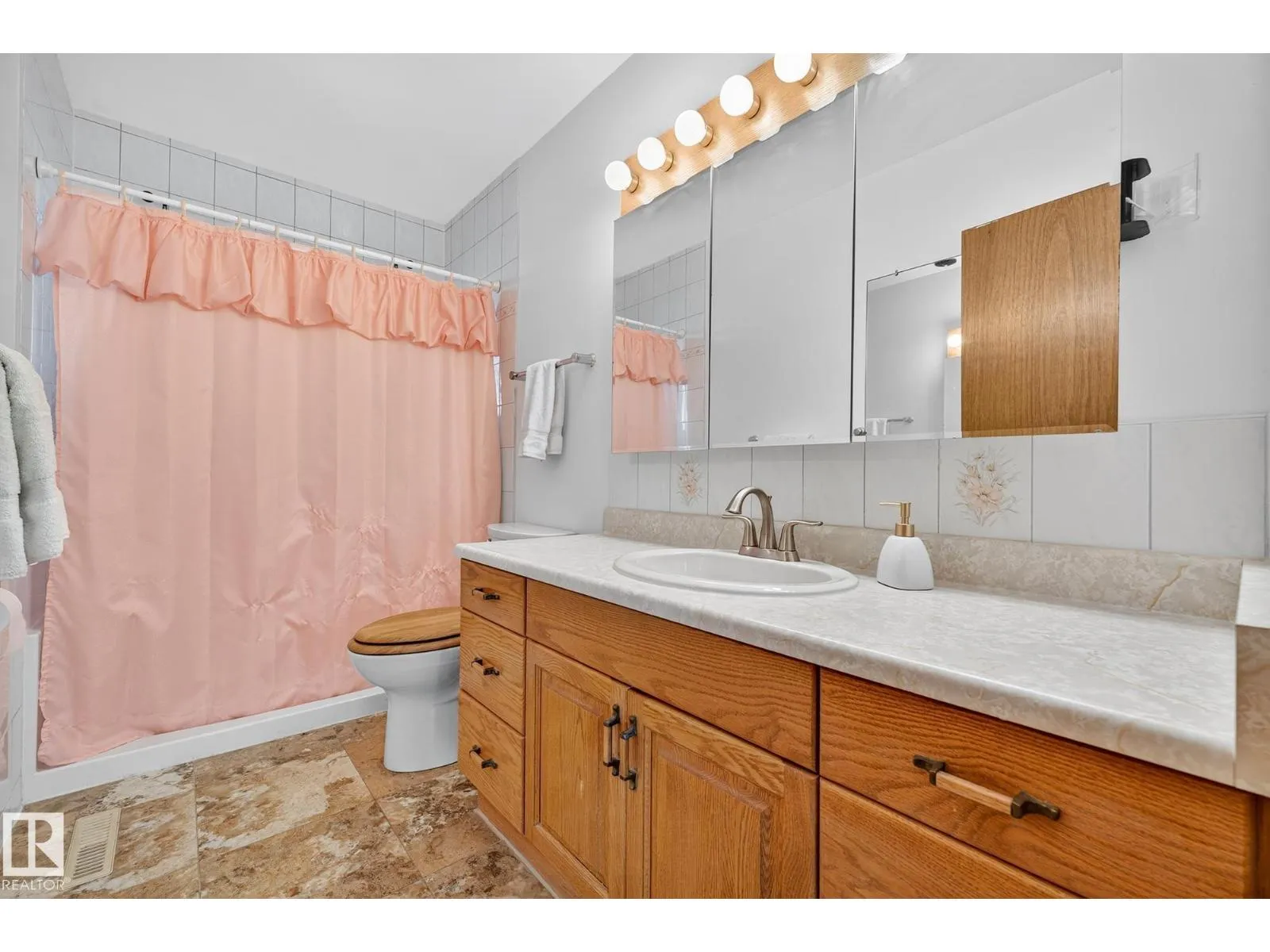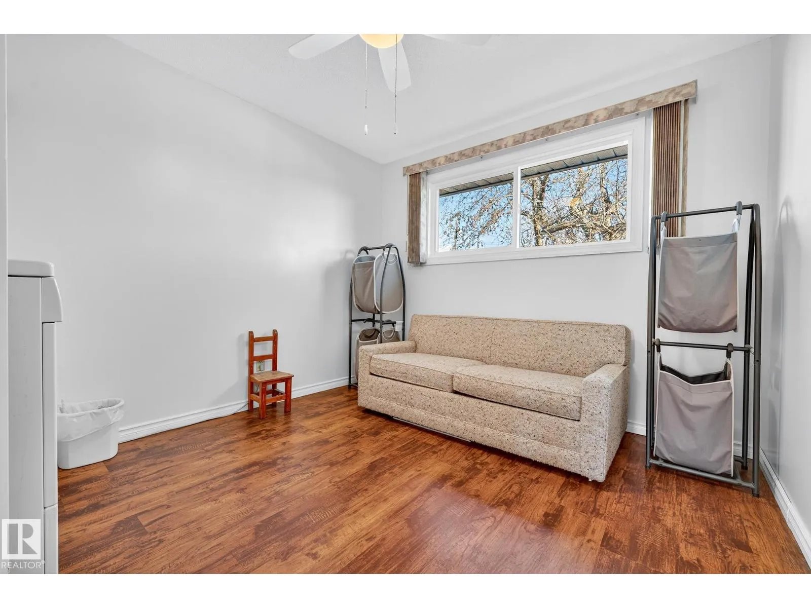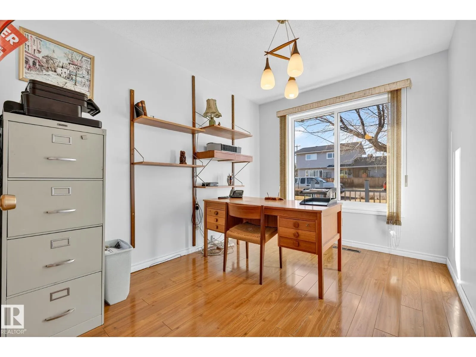 Nestled just off Ada Boulevard and steps from Rundle Park, this bungalow tells a story of warmth and belonging. Morning light filters through triple-pane Pella windows, catching the texture of hardwood floors and mid-century details that speak to another era of craftsmanship. The living and dining spaces flow effortlessly, creating room for conversation and quiet moments alike, while the bright kitchen overlooks the backyard, a view of changing seasons framed by trees and sky. Three main-floor bedrooms offer comfort and calm, and downstairs, a pine-paneled rec room with a wood-burning fireplace and wet bar sets the stage for gatherings that linger into the night. Two additional bedrooms, a full bath, and generous storage complete the homeâs thoughtful layout. Outside, a pergola-topped deck and oversized heated double garage extend both function and charm. In a community defined by river trails, parks, and connection, this is a haven where every season feels like home. (id:27476)