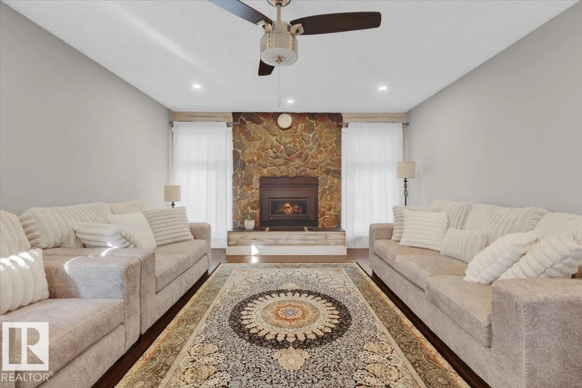 Welcome to Daly Grove! This well-maintained bungalow offers air conditioning, a heated double garage, and great curb appeal. Inside, the bright living room features a beautiful stone-accented fireplace and large windows. The updated kitchen has sleek white cabinetry, stainless steel appliances, and patio doors leading to a sunny south-facing yard. The primary suite includes a walk-in closet and 3-piece ensuite, with two more bedrooms and a full bath on the main floor. The finished basement adds a spacious rec room with wet bar, two additional bedrooms (one nearly 200 sq. ft.), a 4-piece bath with dual vanity, and a convenient laundry area. The fully fenced yard with mature trees offers privacy and space to enjoy. Recent upgrades include a new driveway and sidewalk (2022) plus newer windows and doors (2013). Move-in ready, this home is perfect for families or investors looking for comfort, value, and location! (id:27476)