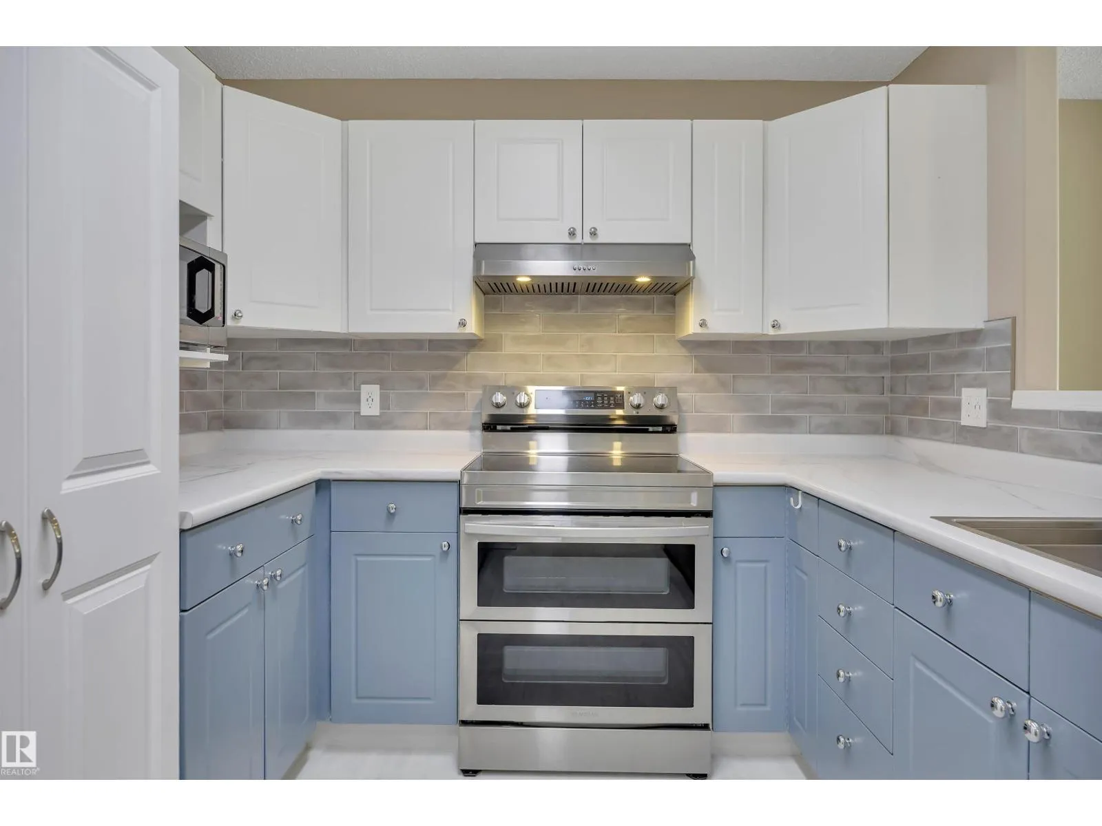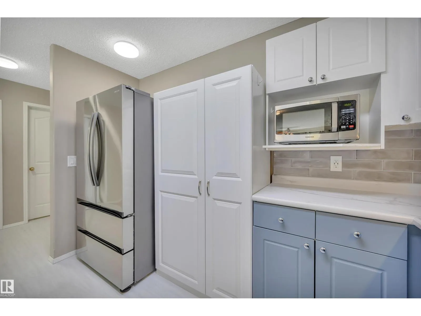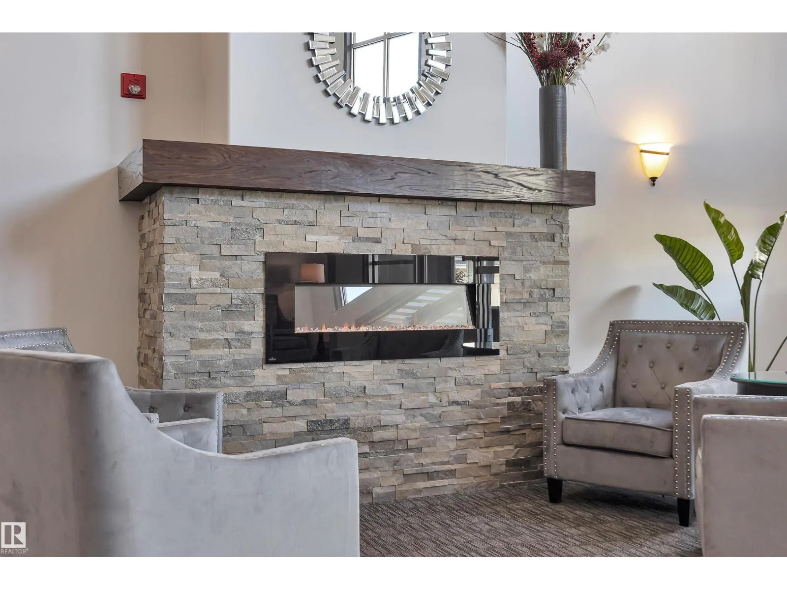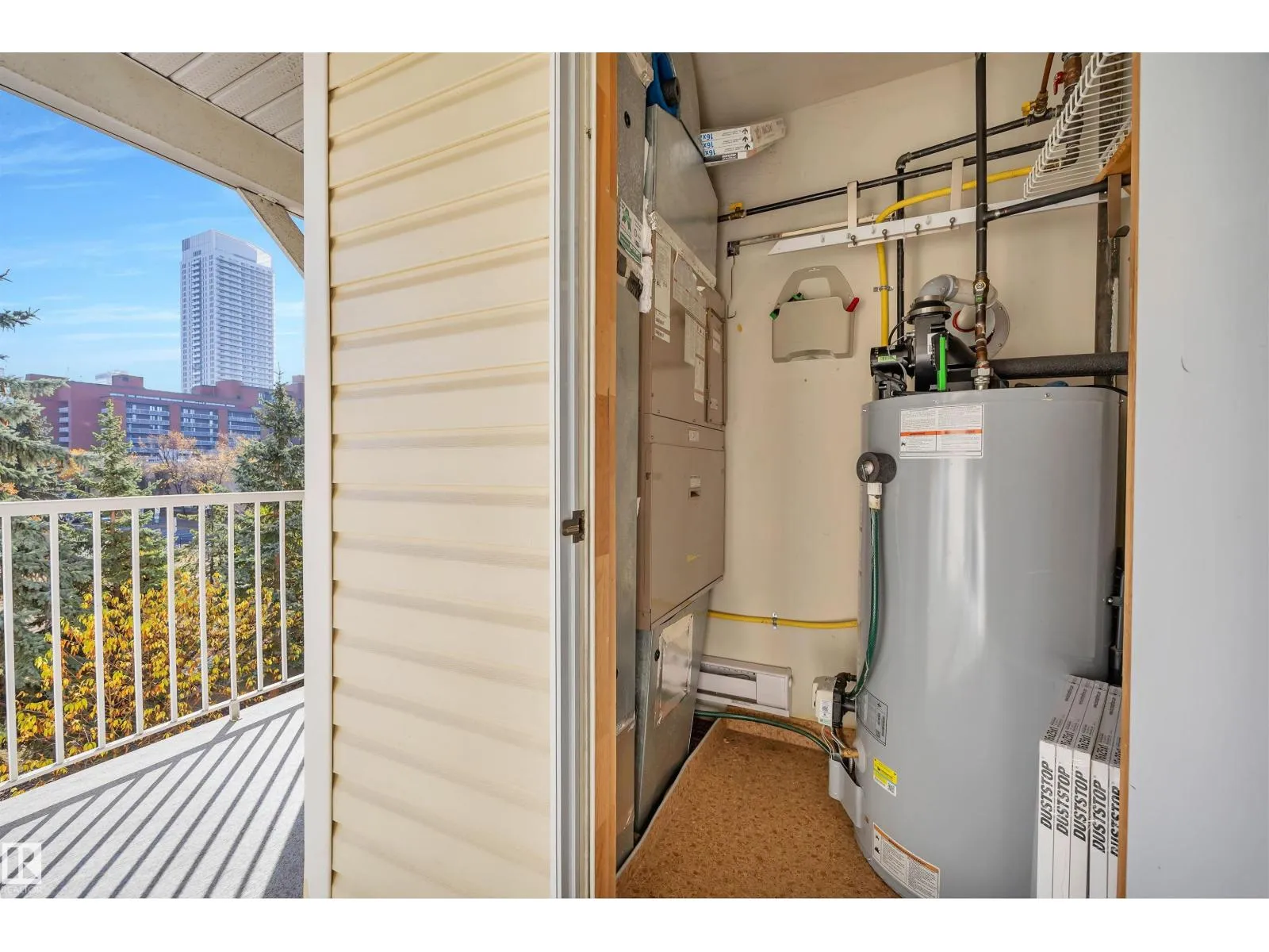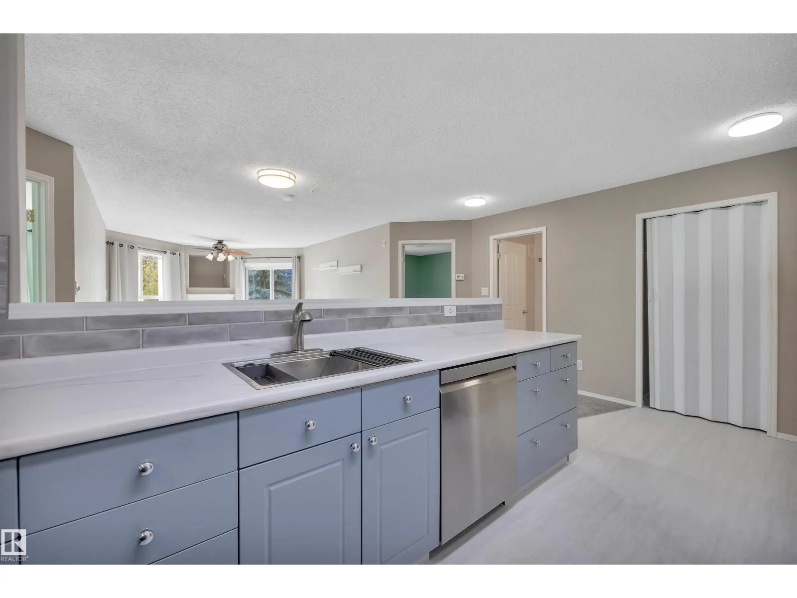 Welcome to this beautifully updated 3rd floor condo in the heart of Railtown! This bright and inviting home offers a beach house vibe with sea-blue kitchen cabinets, new white countertops, a large pantry, and top-of-the-line 2024 appliances. The cozy kitchen overlooks the open dining and living area anchored by a cozy fireplace, large windows, and patio access overlooking the trails. Enjoy a private utility room with a 5-year-old hot water tank and reconditioned furnace and A/C. The condo offers two bedrooms and two full baths, including a refreshed 3-piece ensuite with a new shower. New carpet and vinyl plank flooring throughout. The laundry room includes shelving, cabinetry, and newer washer and dryer with warranty. Located in a secure gated community with a covered parking stall, a gym, meeting room, and guest suite. Walking distance to the Ice District, shopping, and restaurantsâurban living with a relaxed coastal feel! (id:27476)