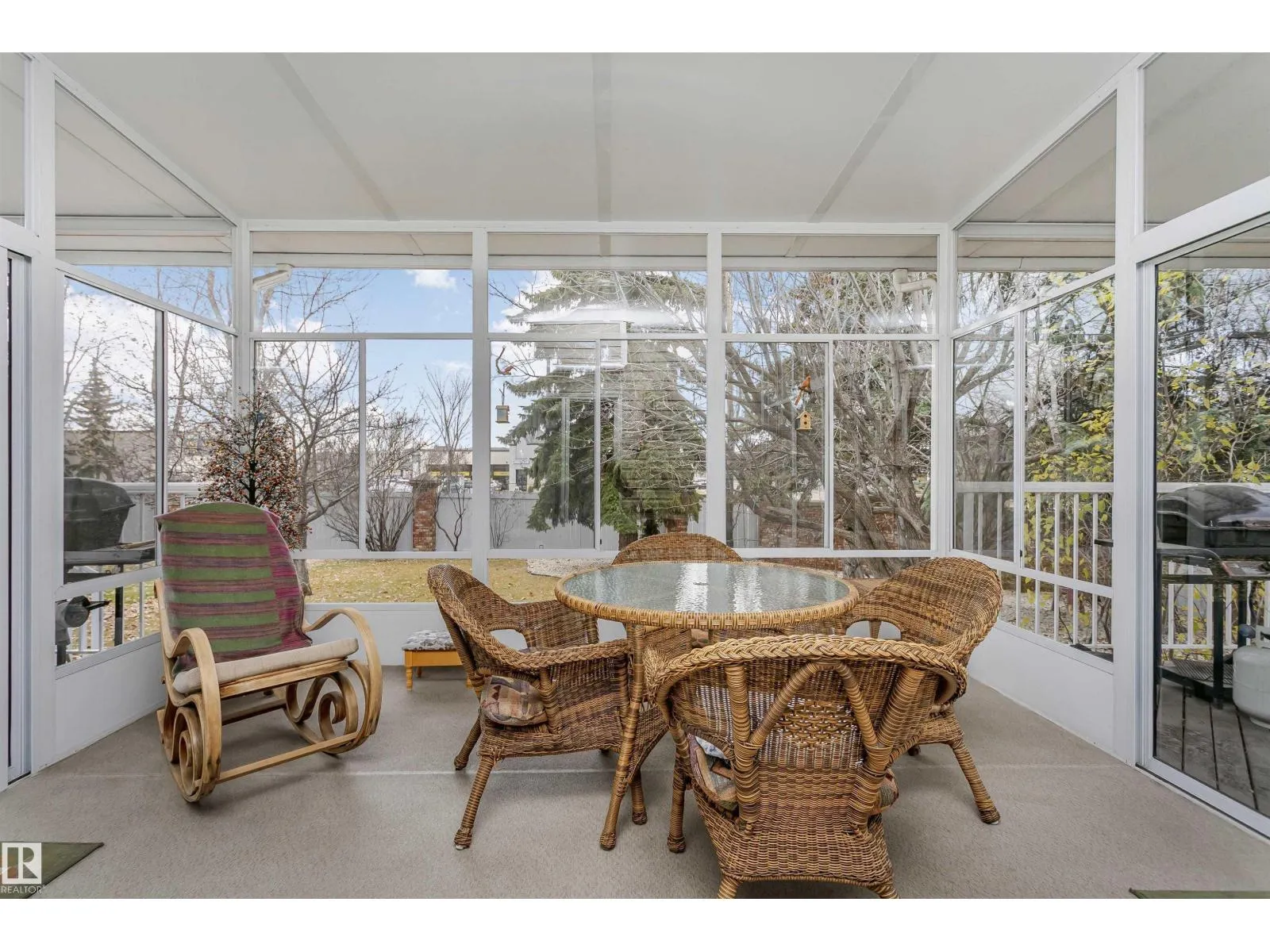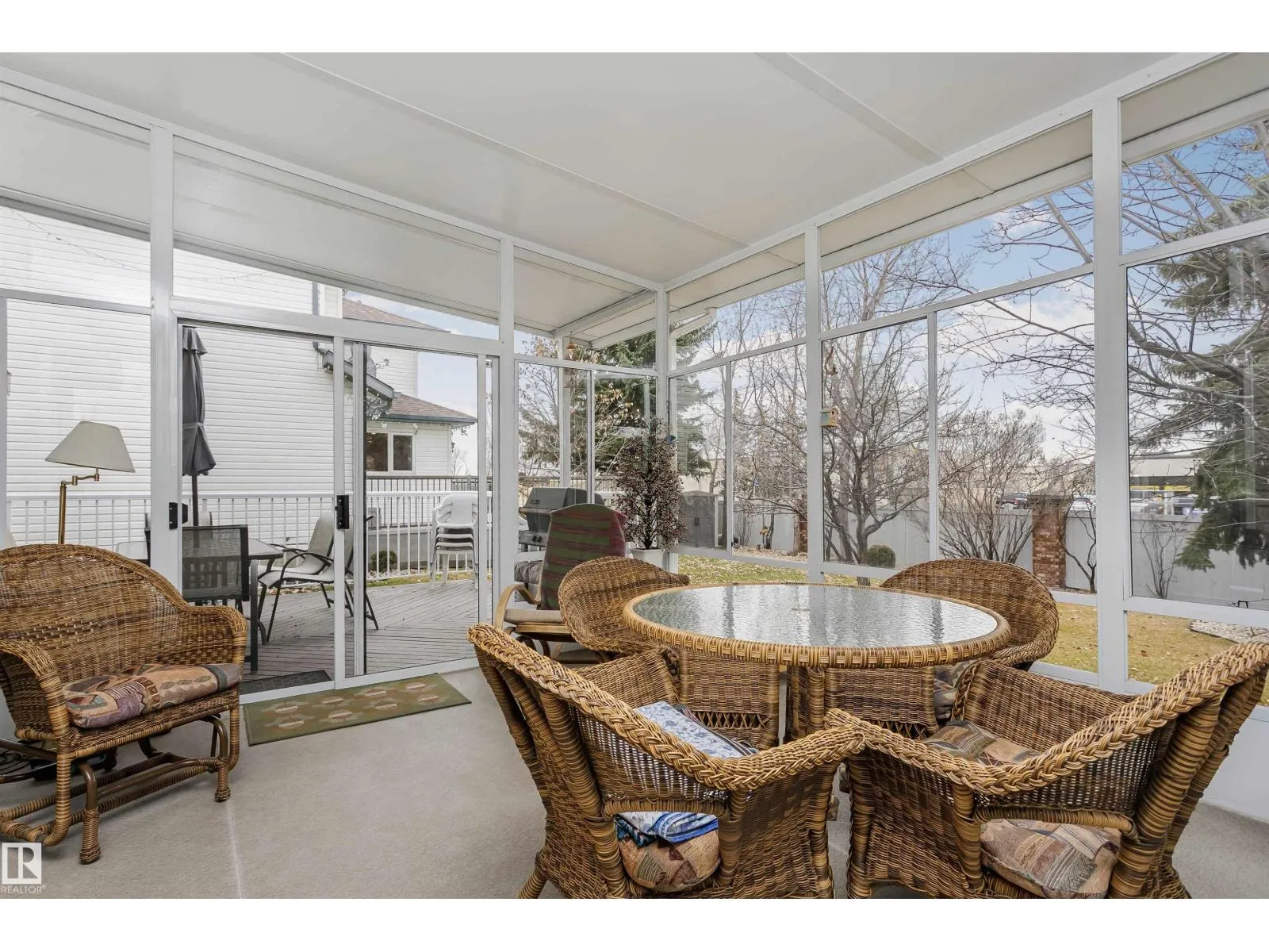 Welcome to the desirable community of Rhatigan Ridge (Riverbend). It offers over 1900 sq ft of above-grade living space, featuring 4 bedrooms, 3.5 bathrooms, and a double attached garage. As you enter the foyer, youâll immediately feel welcomed. Bright living and dining area, creating an inviting atmosphere. The kitchen is equipped with ample cabinetry, opening seamlessly to the rear family room and walking out to a sunny south-facing backyard with a four season sunroom â perfect for relaxing or entertaining. A powder room and laundry area complete the main floor. Upstairs, the primary bedroom includes a 4-piece ensuite, while two additional bedrooms and another 4-piece bath complete the upper level. The fully finished basement adds valuable living space with a comfortable family room, one bedroom, and plenty of storage. No Pets, a non-smoking home, newer roof, newer HWT, kitchen and bathrooms. Conveniently located near schools, shopping, parks, and amenities, with easy access to Whitemud Drive. (id:27476)