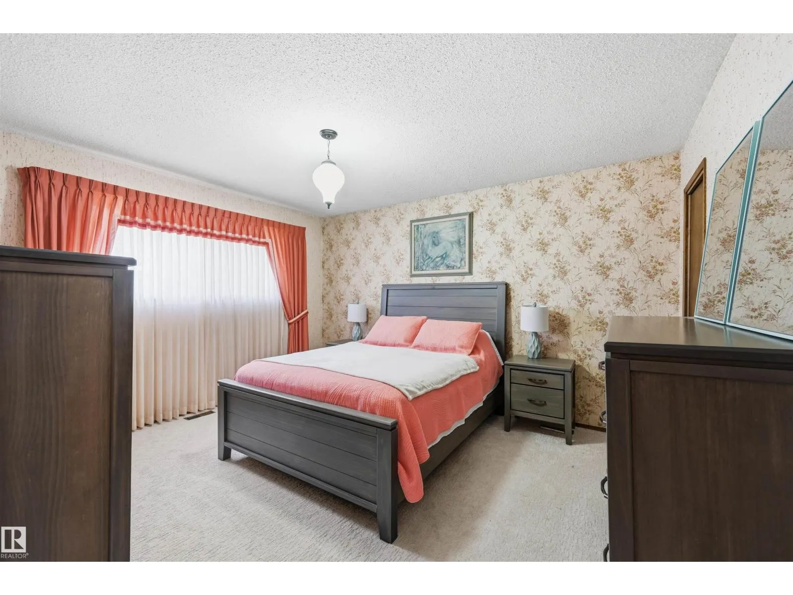 FANTASTIC LOCATION & great value for a well-maintained A-FRAME BUNGALOW boasting nearly 1,550sf ABOVE GRADE plus a finished basement. This home is bursting w/ mid-century charm! Upon entry find honey comb tiles in mint condition & Tyndall stone feature wall. The cozy living room & dining room have a beautiful vault w/ feature fluting. Meticulous kitchen w/ Corian counters, ample cabinetry/built-ins, underlighting & stainless steel appliances. 3 bedrooms w/ the primary looking into the private yard. Full 4pc bthrm next to bdrms & addtl 3-pc bthrm at back. Downstairs find large rec space w/ fireplace, 2 addtl bdrms, full 3pc bthrm & lrg storage rm w/ addtl appliances. Situated on a large lot with sizeable patio, mature trees, gardening area & shed. Plus double ATTACHED garage with man door to yard. Nestled onto a quiet cul-de-sac with easy access to walking trails & walking distance to Malcolm Tweddle School & Park. Plus Michaels Park close by & quick access to 91st & Whitemud. A must see! (id:27476)