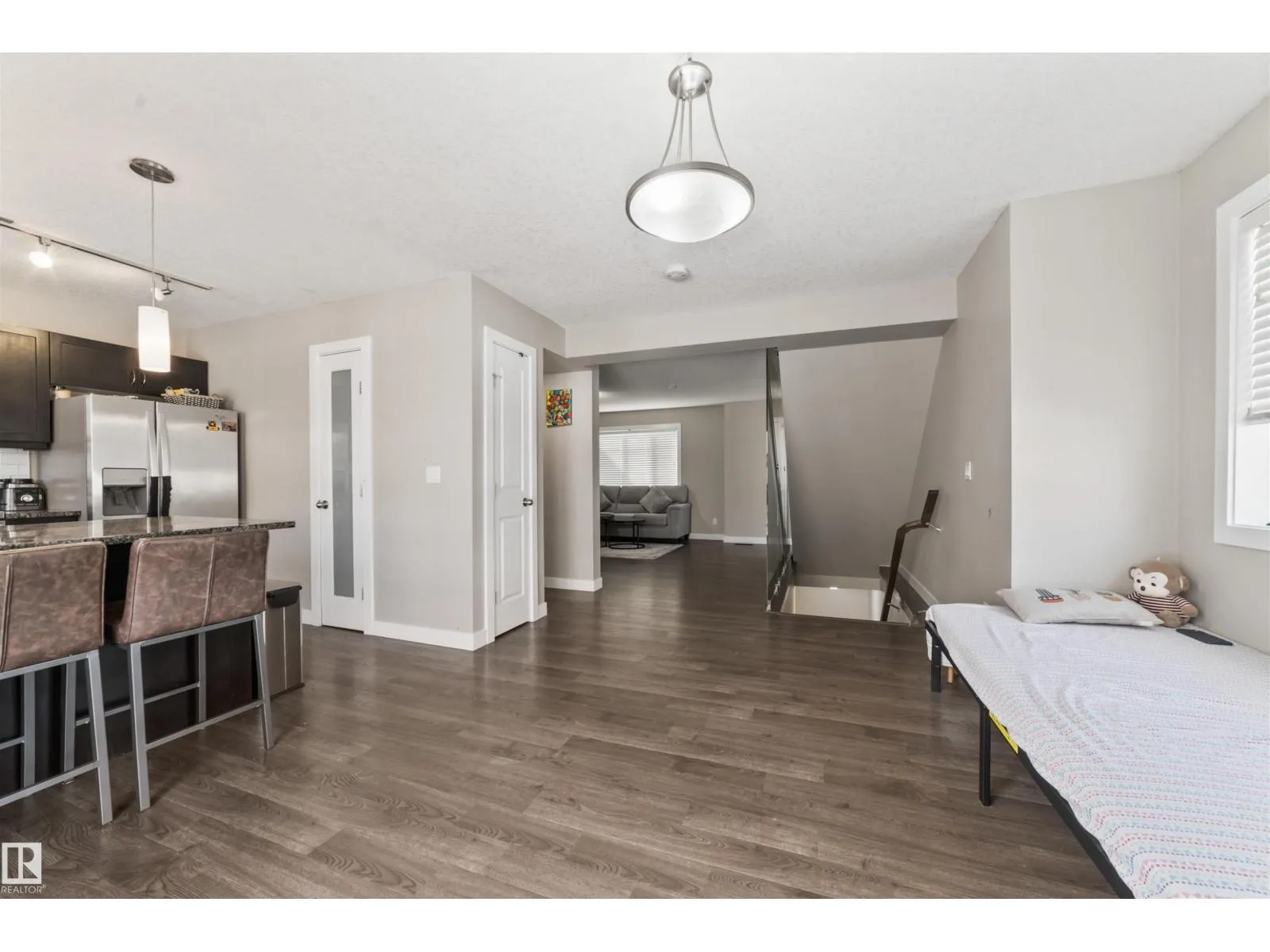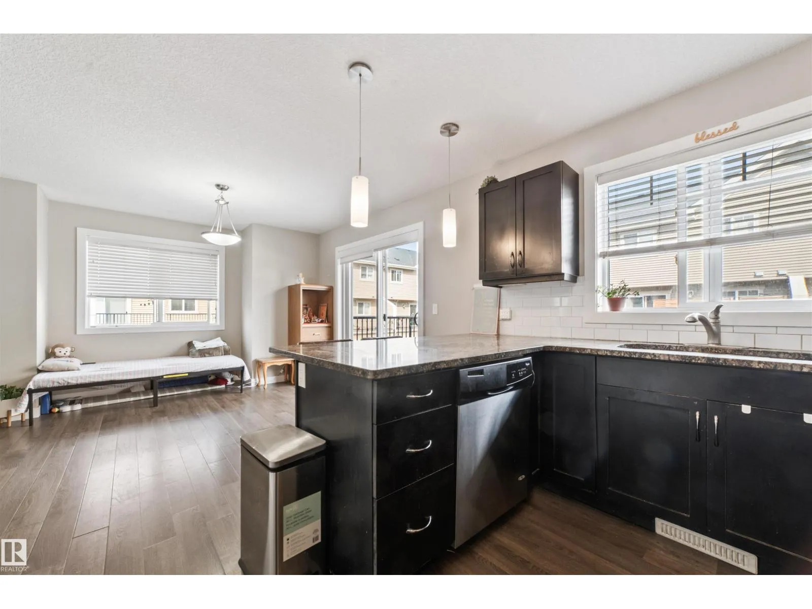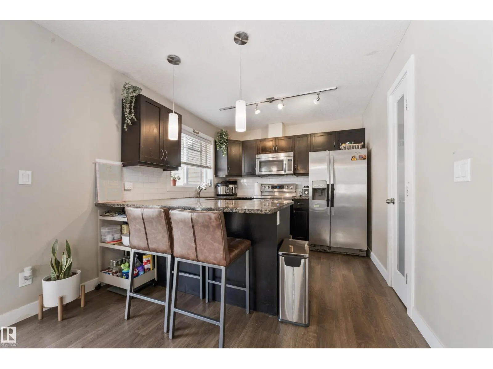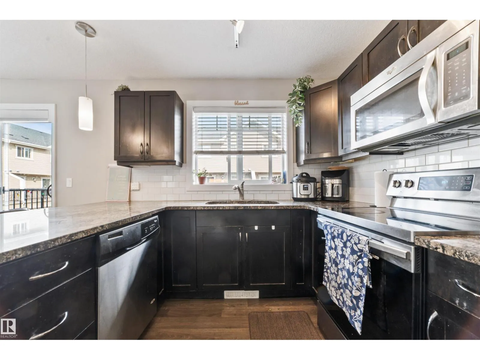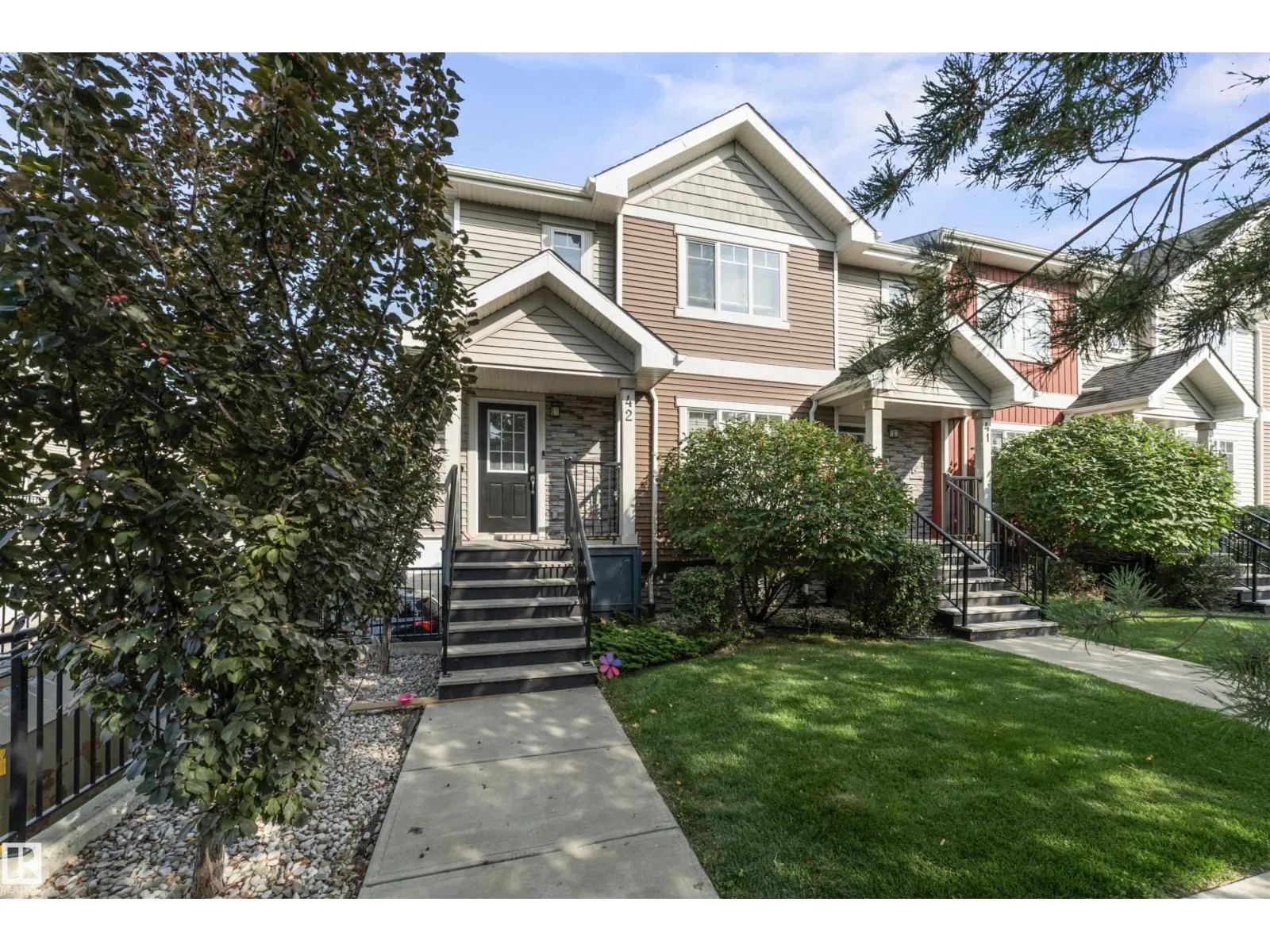 Stunning corner end-unit townhouse in highly sought-after South Terwilegar! This impeccably maintained 3 bed, 2.5 bath home features brand-new carpets, striking glass wall stairs, and extra windows that flood the home with natural light. The open-concept main floor offers laminate and ceramic tile floors, a spacious dining area, and a modern kitchen with maple cabinets, granite counters, stylish backsplash, stainless steel appliances, and pantry space. Step onto the oversized sunny south-facing deckâperfect for entertaining. Upstairs, the king-sized primary suite boasts a walk-in closet and a bright ensuite with glass shower, plus two bedrooms and a 4-piece bath. The basement includes laundry, storage, and a mudroom, while the double car garage provides plenty of space for vehicles and storage. Prime location close to schools, parks, shopping, restaurants, and quick access to Henday! (id:27476)