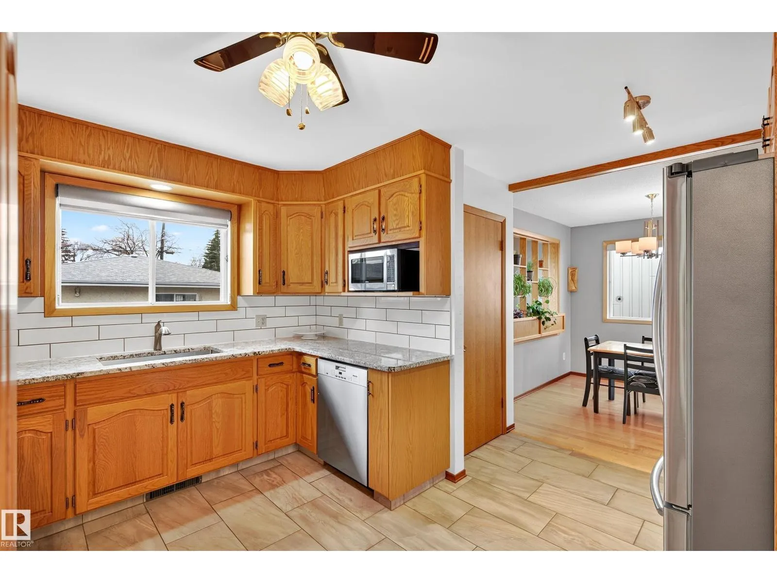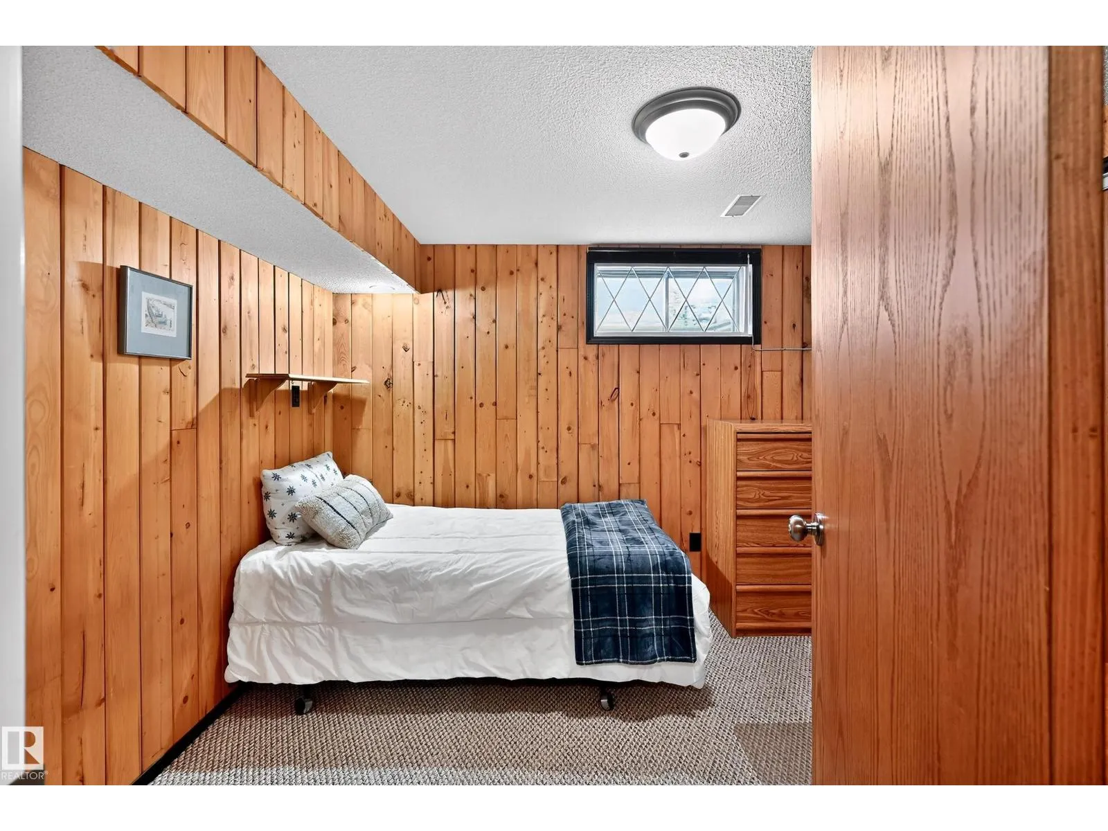 Pride of ownership is evident in this ORIGINAL OWNER custom-built bungalow home, conveniently located in west-central Edmonton - welcome to West Jasper Place. This spacious property is a HIDDEN GEM (surrounded by great neighbours!) and has been lovingly maintained throughout the years. The main floor features a spacious living room with beautiful bay window, hardwood & tile flooring, mahogany doors, lovely kitchen (with updated granite counter-tops & pantry), 3 bedrooms & a full bath. Downstairs, solid pine tongue & groove panel board throughout + a large rec room, 4th bdrm, 3 pc bath & laundry/storage space. The fully-fenced backyard is HUGE and ready for entertaining - complete with underground irrigation system, tranquil rock water feature, putting green, garlic garden, perennials, a sumac palm tree, gas plants and more! A massive 26x30 detached double garage (insulated & heated) with 3 car parking pad completes the property. Welcome home! (id:27476)