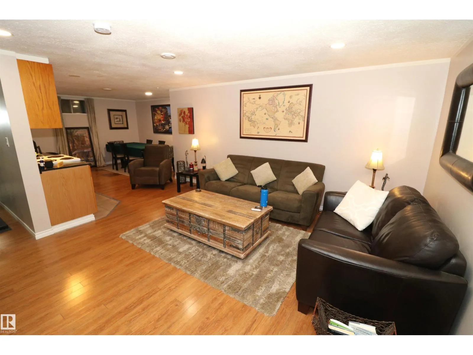 Outstanding CUL-DE-SAC location in Royal Gardens! Surrounded by great schools & parks, close to Whitemud, Southgate, LRT! This 1350sf bungalow has lots of charm with a large vaulted ceililng living room featuring a full wall of south facing windows. The kitchen is large with tons of storage in beautiful original character wood cabinets. There are 3 bedrooms up & 1.5 bathrooms. The basement is finished with a beautiful separate entrance suite. There are newer large windows in the 2 basement bedrooms & lots of space for the second kitchen, dining & rec room. Shared laundry & utilities at the bottom of the stairs. The fenced backyard has a concrete pad, sheltered grass area with a shed & a gravel pad with lots of space for a future double garage at the back alley. (id:27476)