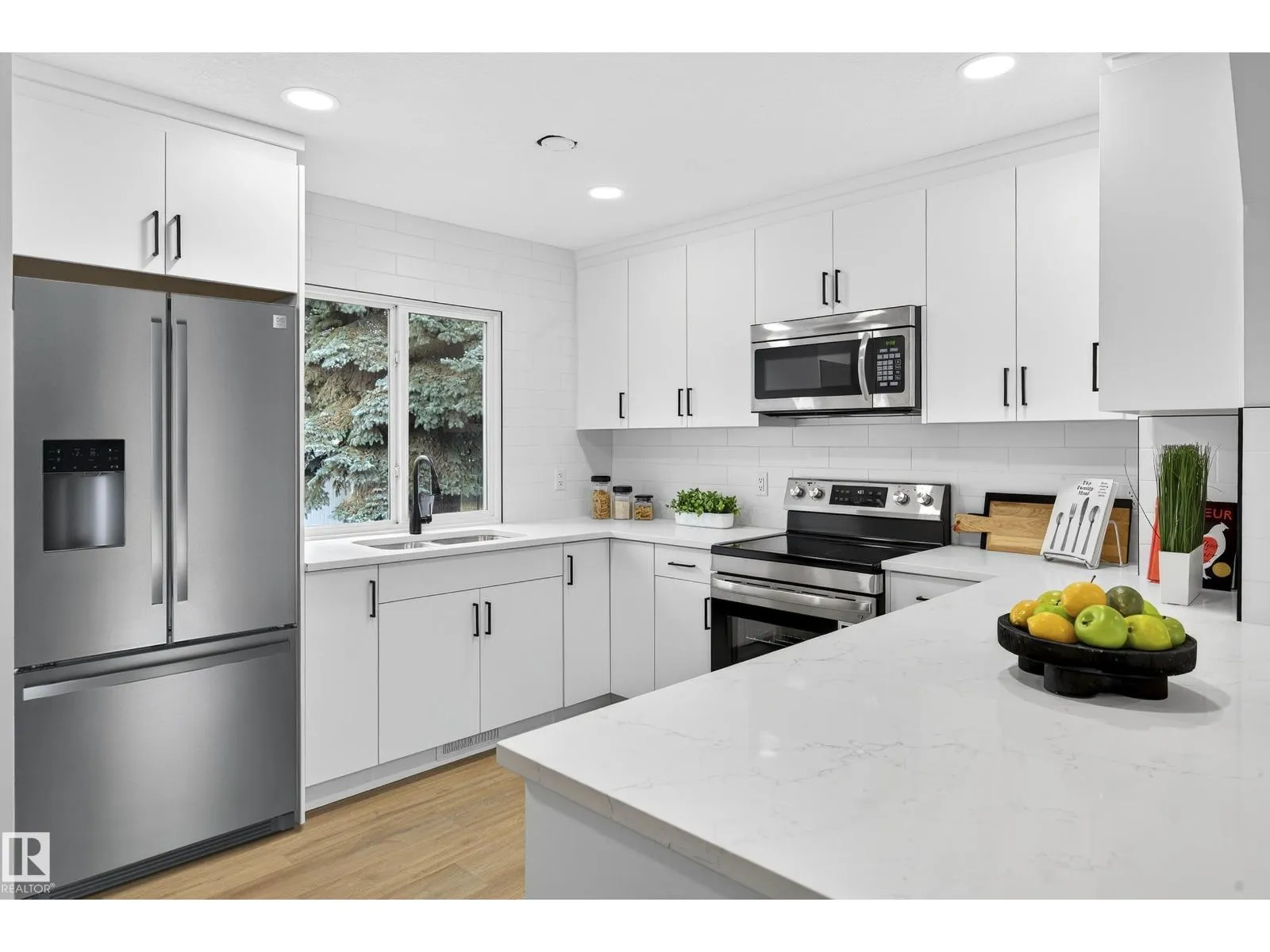 CHECK THIS ONE OUT FOLKS!**FULL INTERIOR RENOVATION**MOVE IN READY**Welcome to Mayfield Mews & nestle into this RARE, AMAZING CONDO TOWNHOME that has been completely renovated from top to bottom with new vinyl plank flooring, carpet, cabinetry, bathrooms, vanity, sinks, quartz countertops, interior doors, trim, interior lighting, paint, upscale SS kitchen appliancesâ¦you name itâ¦itâs been updated! Features 3 bedrooms boasting a king size owners suite & 1.5 bathrooms. TWO outdoor parking stalls (side by side) & ample visitor parkingâ¦PRICELESS! Efficiently run complex with reasonable condo fees in great location close to schools, church, WEM, shopping, transit & a hop away from the Whitemud & Anthony Henday for all your commuting requirements. Enjoy your weekends with an afternoon stroll through neighbouring Terra Losa or La Perle Park! Or simply stay in and admire the delightful new interior of your home. Fully fenced yard with back gate to access walking trails. Great home for 1st time buyers or investors. (id:27476)