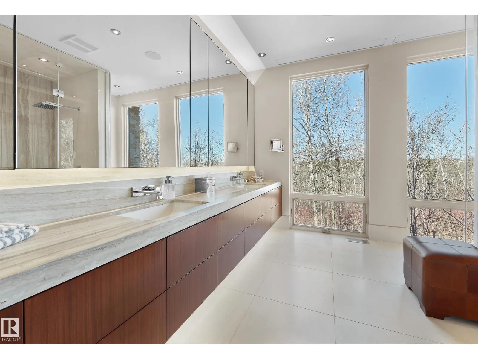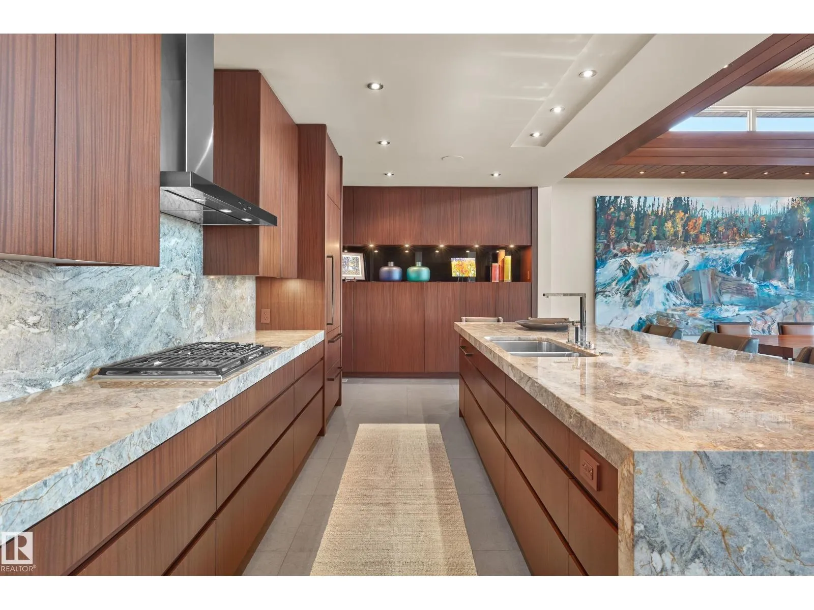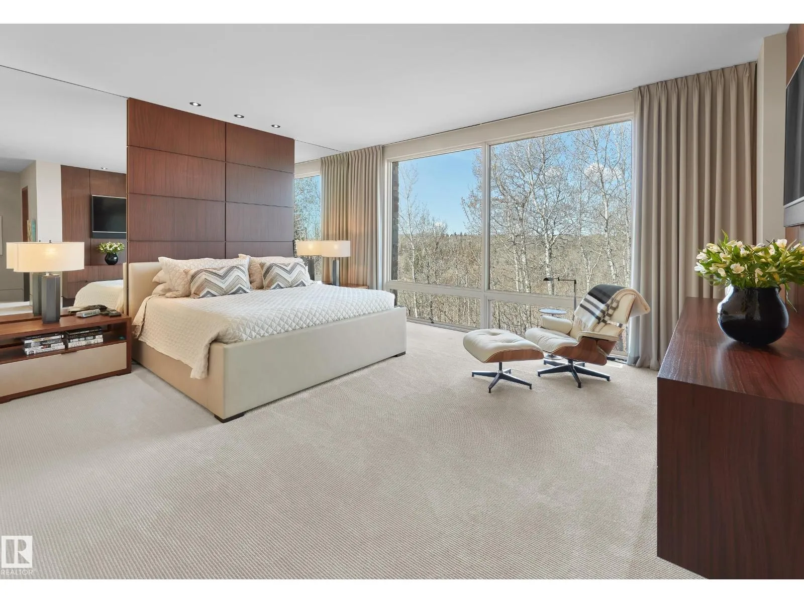 Panoramic RIVER VALLEY views â backing onto Whitemud Creek Ravine â full unobstructed view on this over 12,000sqft lot! The attention to detail provides the perfect fusion between structural strength & architectural form â Urbis Architecture, Mitchell Freedland Design/Vancouver! This home seamlessly blends indoor/outdoor spaces capturing all elements of luxury â Flawless design covers every inch of this stunning home well-appointed & sophistication throughout. The home encompasses just over 5897 SQFT of developed living space with walkout basement â luxury beds, Gym, Art Room, Office, 2.5 baths, 15ft ceilings â North & South Garages - Quad attached garage (extra height for car lifts) â the entire back of the home is floor to ceiling windows. Every finish was hand selected for a luxurious feel - custom millwork & cabinetry, superior lighting & plumbing fixtures - the craftsmanship is like no other fit & finish you have never seen before â West Coast Luxury in YEG - boasting every state-of-the-art finish. (id:27476)