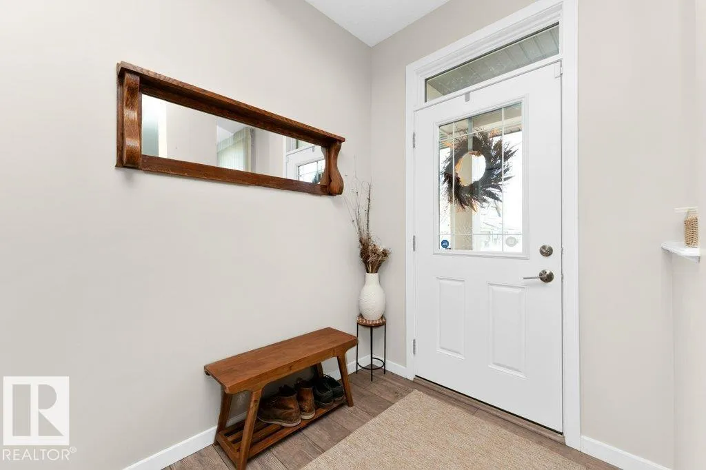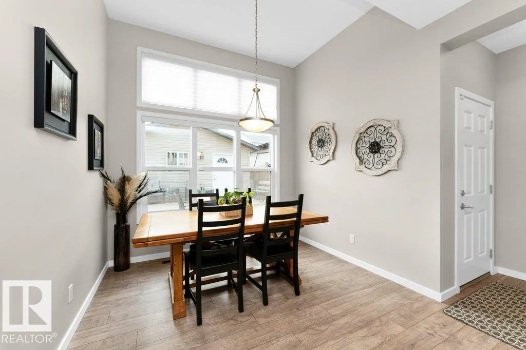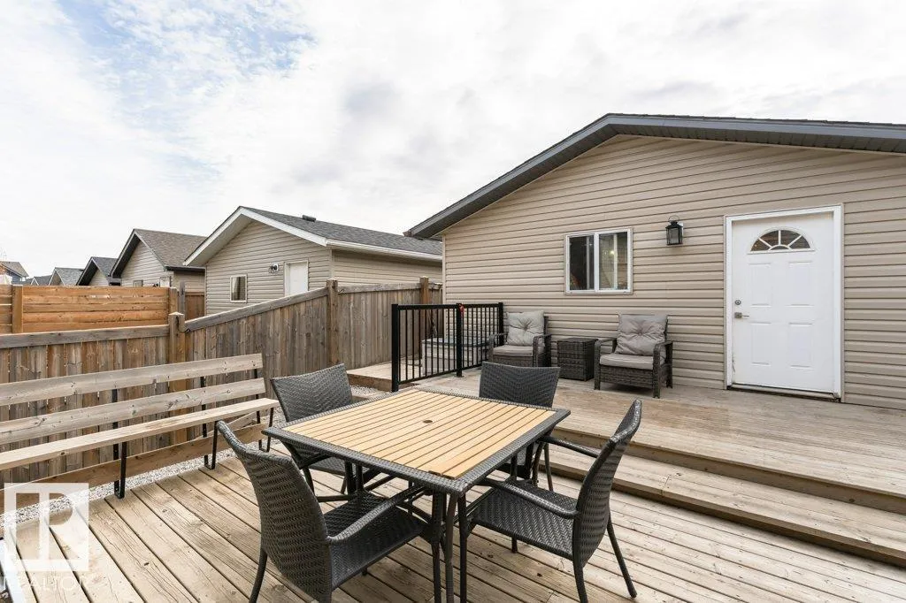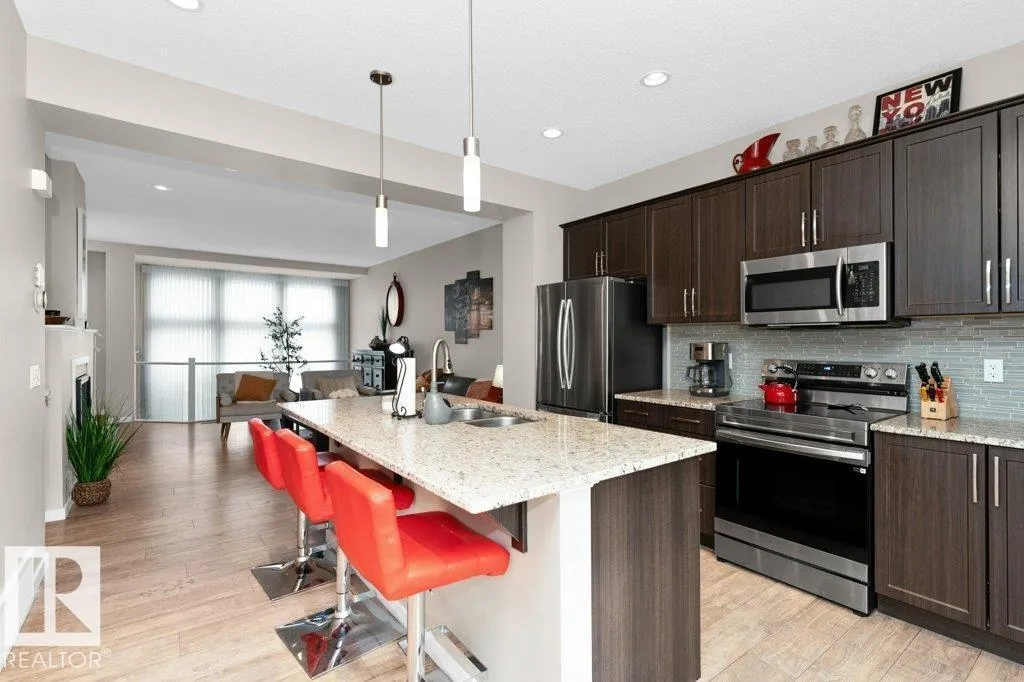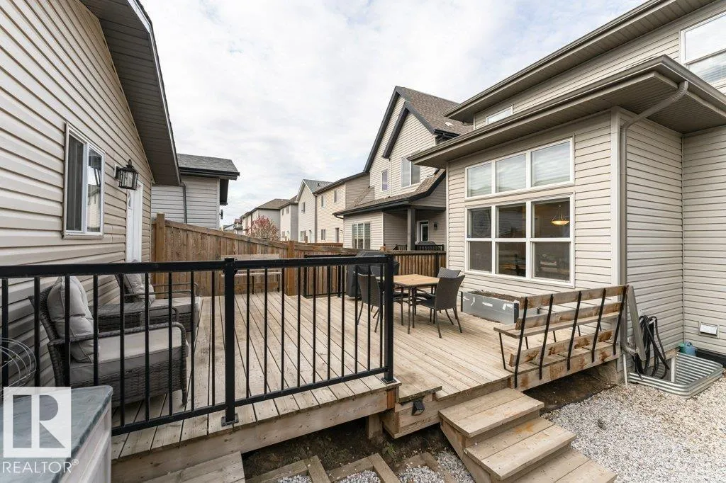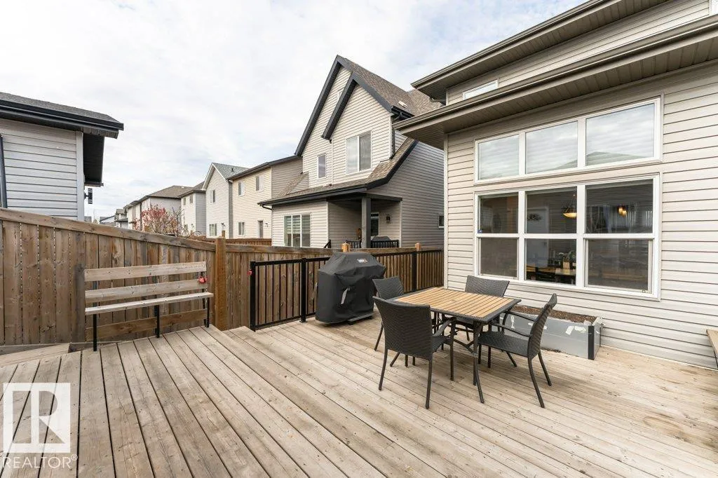 Welcome to this gorgeous 3 bdrm 2.5 bath central air conditioned two-storey home with double detached garage. It features a striking front façade with floor-to-ceiling windows. Interior glass panels highlight the open space from basement to main floor. The home's design is open and airy with the living room centering around a gas fireplace, adding warmth and ambiance to the space. The gourmet kitchen is complete with contemporary finishes, high-end stainless steel appliances, and a large eat up island with the dining area dressed with a bank of windows. Upstairs, youâll find the 3 well-proportioned bedrooms, with the primary featuring a walk-in closet and 4 pce ensuite. On the landing between the main floor and lower level is home to the half bath.The lower level offers a great rec area and utility room, housing the front load laundry duo. A massive deck expands from the house to the garage, offering a perfect space for outdoor dining, lounging, and entertainment, accompanied by smart landscaping choices. (id:27476)