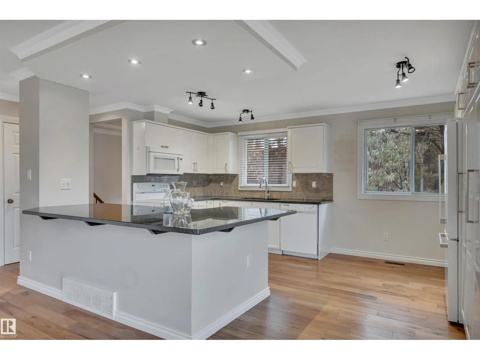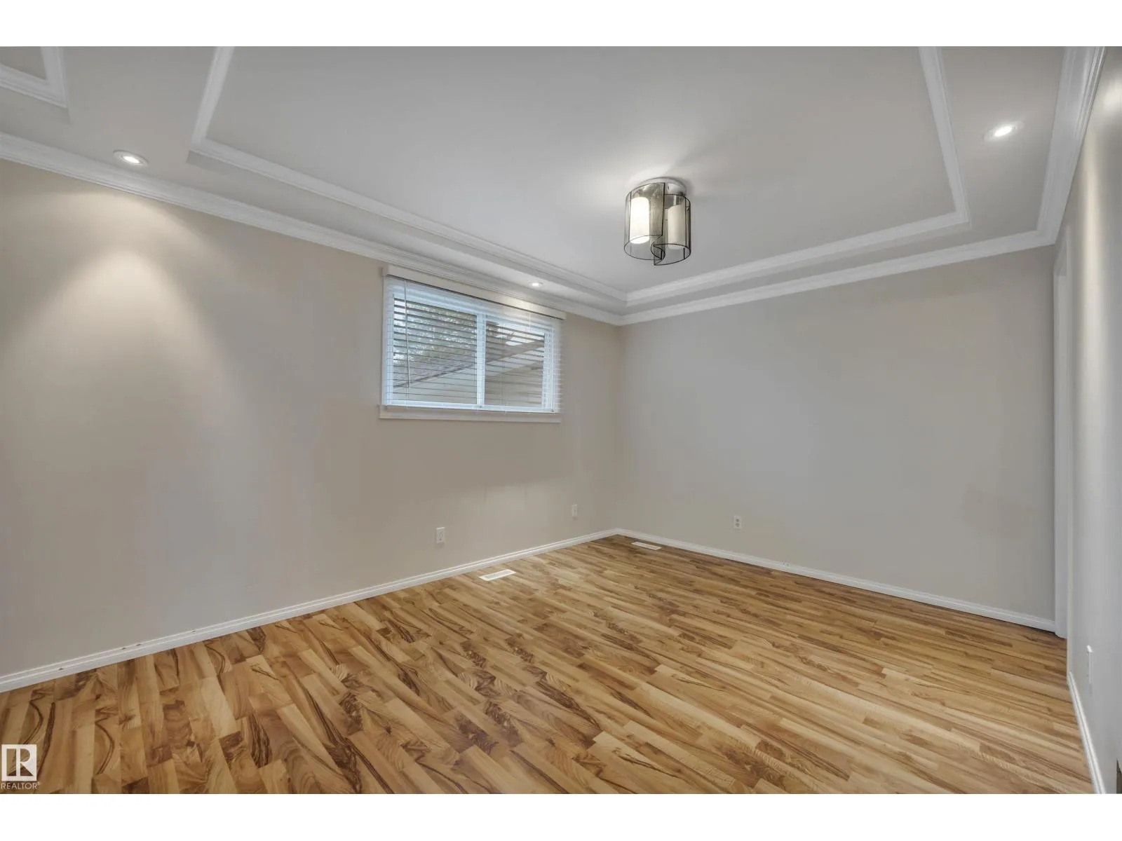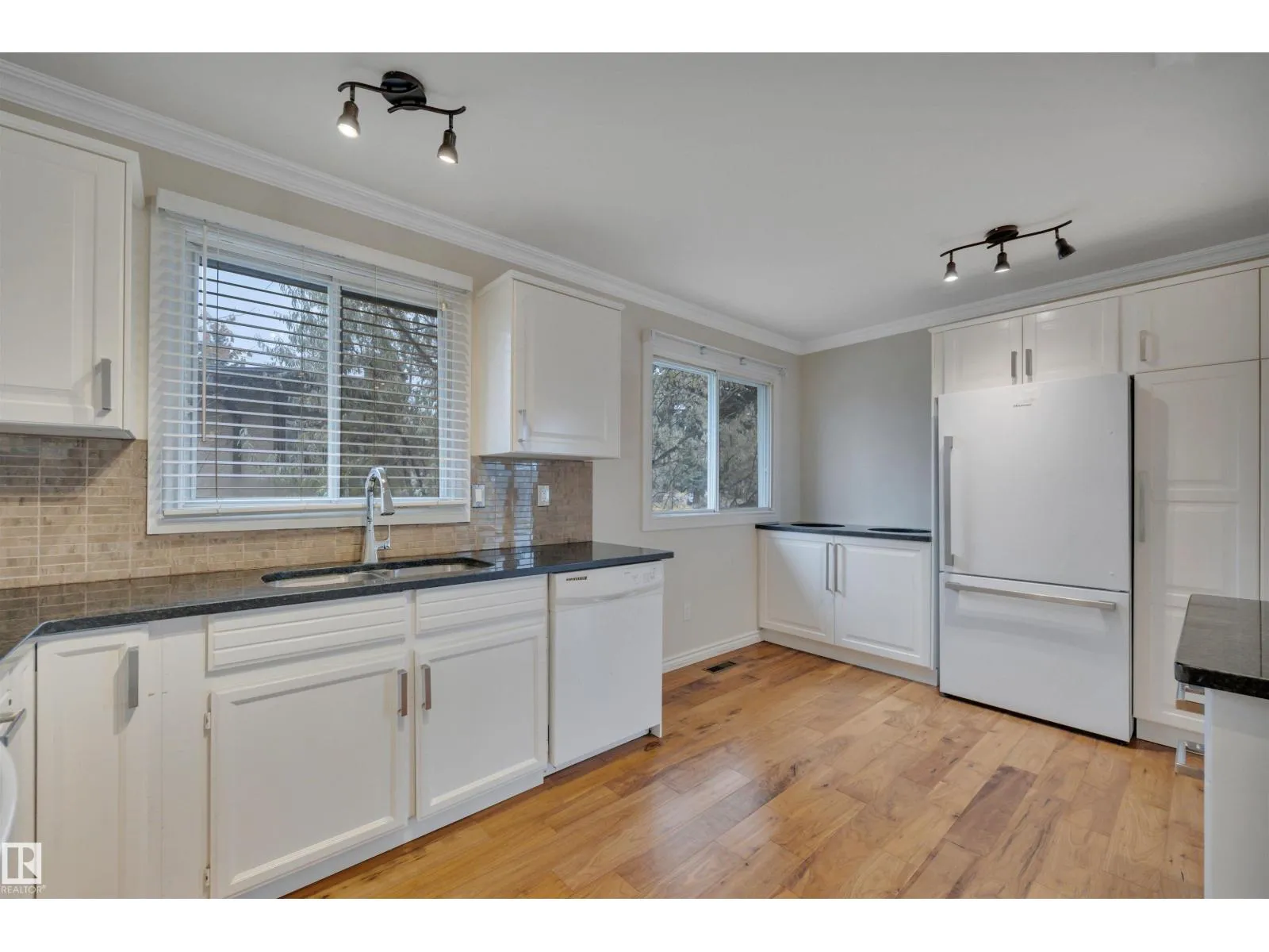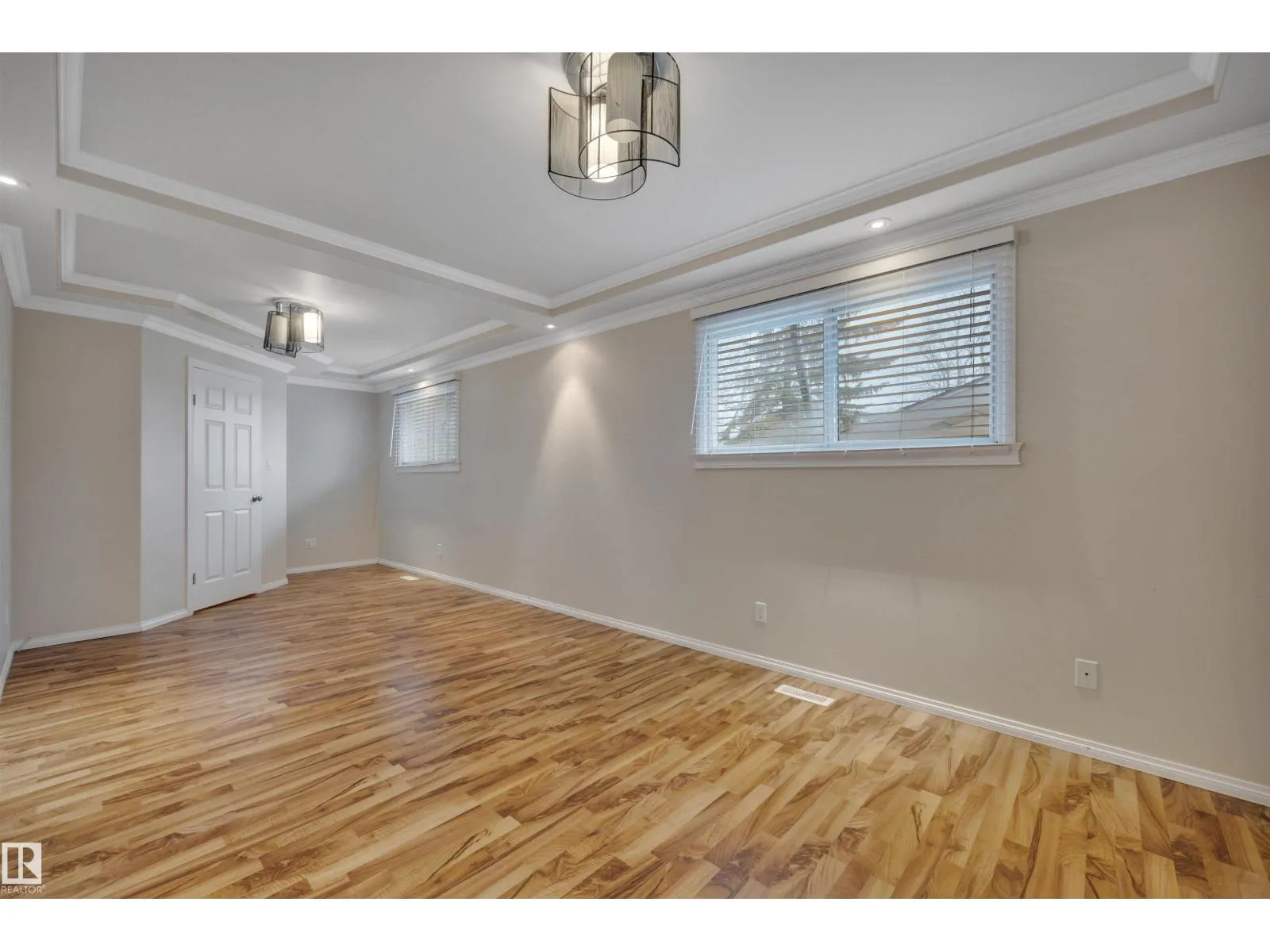 Welcome home to this beautifully upgraded 4 bedroom 3 bathroom bungalow in the family-friendly community of Sakaw! Nestled on a large pie-shaped lot, this home features an oversized heated garage and central A/C â perfect for year-round comfort. Inside, youâll love the warm hardwood floors, crown molding, granite countertops, and spacious kitchen with a large island and plenty of storage. The cozy living room with an electric fireplace is ideal for family time. The main floor offers a generous primary bedroom with a walk-in closet and 2-piece ensuite, a second bedroom, and a full 4-piece bathroom. The fully finished basement provides even more living space with a huge rec room, two additional bedrooms, a bathroom, laundry, and storage. Located close to schools, parks, shopping, public transit, Mill Woods Rec Centre, and Grey Nuns Hospital â this is the perfect place for your family to call home! (id:27476)