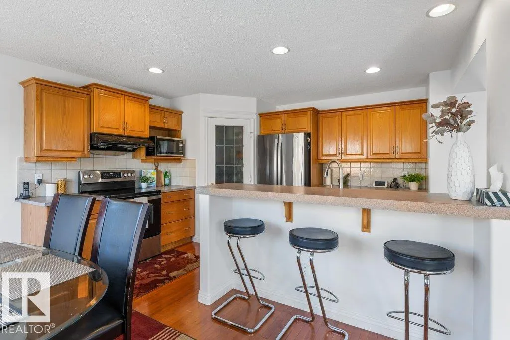 Beautifully maintained original-owner Jayman built custom 2-storey in desirable Haddow offering 2,235 sq/ft of living space plus a fully finished basement! The main floor welcomes you w/a stunning open foyer, elegant dining room & a spacious kitchen featuring oak cabinetry w/crown moulding, corner pantry, large eating nook, new fridge, stove & dishwasher. Enjoy abundant natural light from the large windows overlooking the 14âx16â red cedar deck & huge yardâperfect for kids & pets. Main floor also includes laundry, mud room & a 2-pce bath. Upstairs features a spacious primary suite w/walk-in closet & 4-pce ensuite w/corner soaker tub, along with a bonus room, two large bedrooms, full bath & ample linen storage. The fully finished basement offers a huge rec room, large bedroom, 4-pce bath & storage. Finished double attached garage completes this fantastic family home in a great community close to schools, parks, amenities, & major roadways including Anthony Henday Dr, Terwillegar Dr & Whitemud Dr! (id:27476)