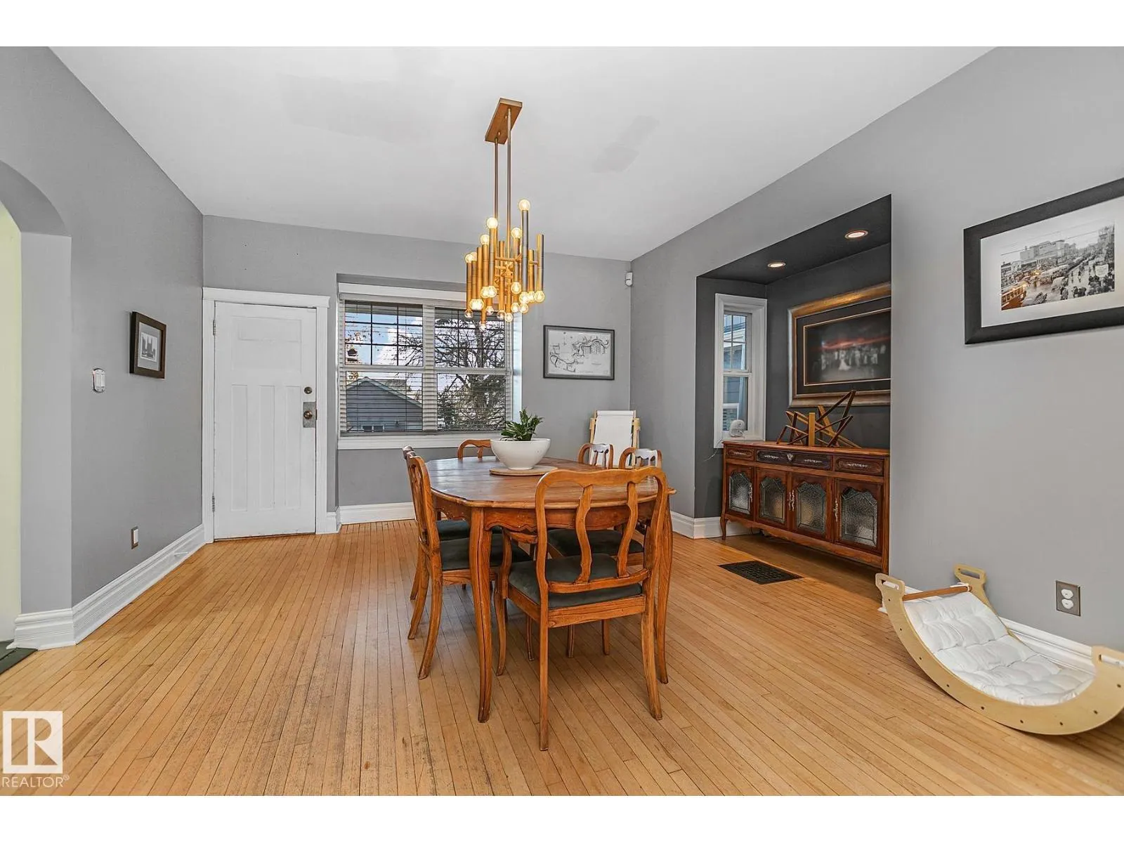 Your opportunity to live your best life in the sought-after Westmount Architectural Heritage Area! Just steps from vibrant 124th Street with its amazing restaurants & shops, this captivating 1,453 SqFt 2-Storey (built 1913) blends timeless character with modern comfort. Step inside and feel the charmâstarting with the spacious Living Room, perfect for cozy movie nights (Gas Fireplace and Surround Sound). The separate Dining Room leads to the Kitchen featuring newer Cabinets & Quartz Countertops. Upstairs, Hardwood flows through 3 Bedrooms. The large Primary offers 2 Walk-In Closets (California Closet design) & a Wardrobe, while the 3rd Bedroom opens to a 3-Season Sunroom. The Updated Bathroom showcases a Standalone Tub & Tiled Shower. The stunning low-maintenance yard includes Turf, a Concrete Block Patio & a Newer Double Garage ('09). Recent Upgrades: LED Exterior Lights ($13k) & Landscaping ($60k) in 2023; newer windows; light fixtures; Ext & Int Paint ('24-25); New Washer/Dryer ('25); D/W & Oven ('24) (id:27476)