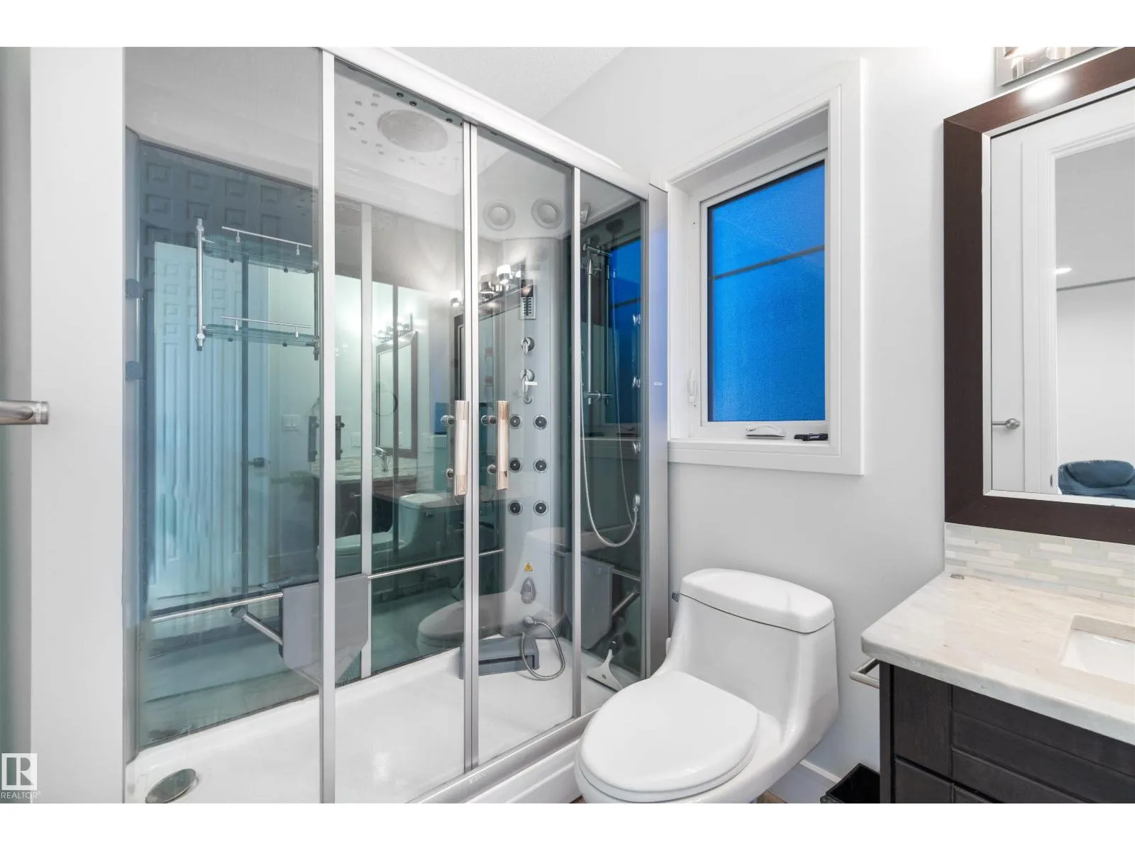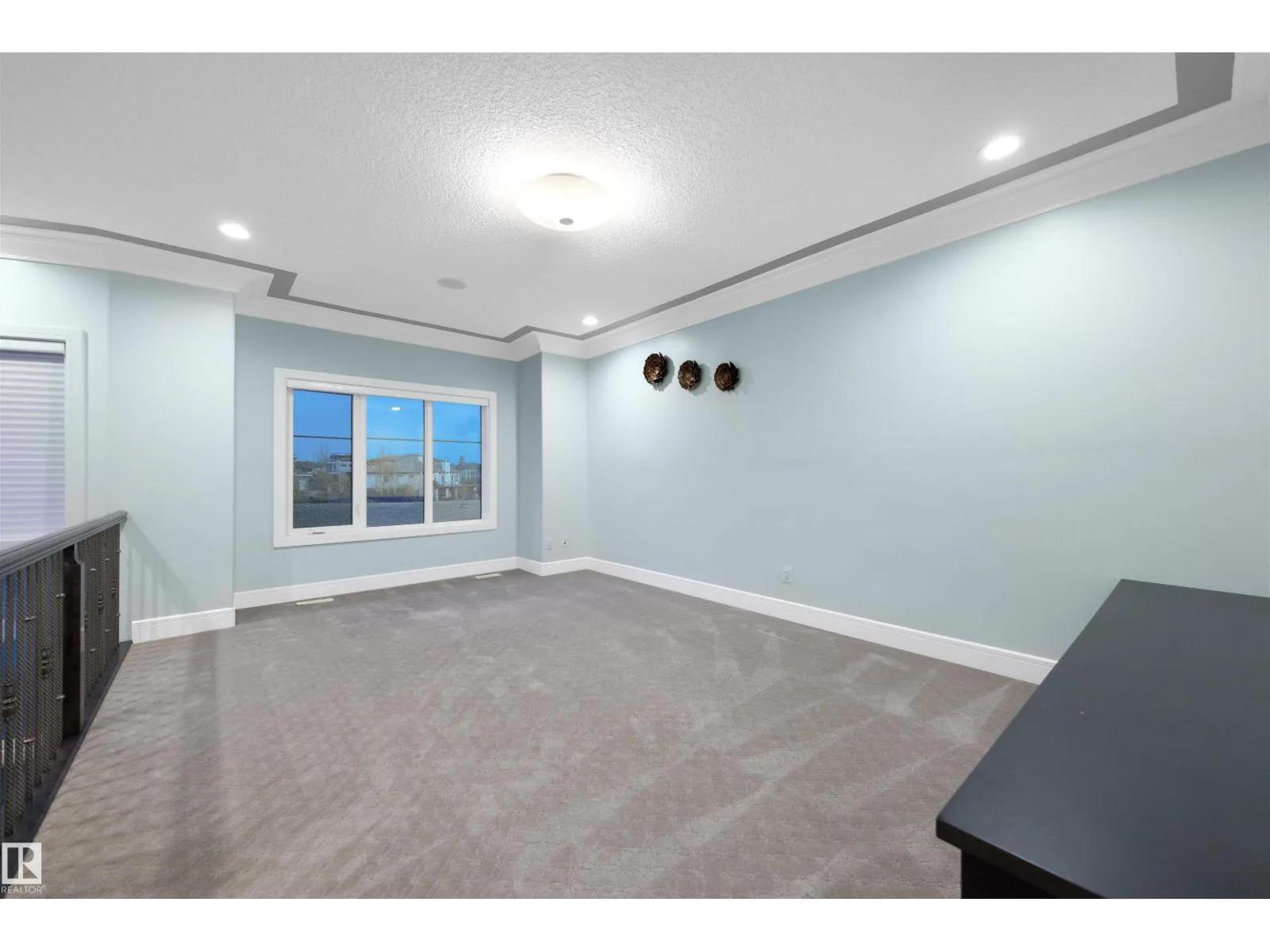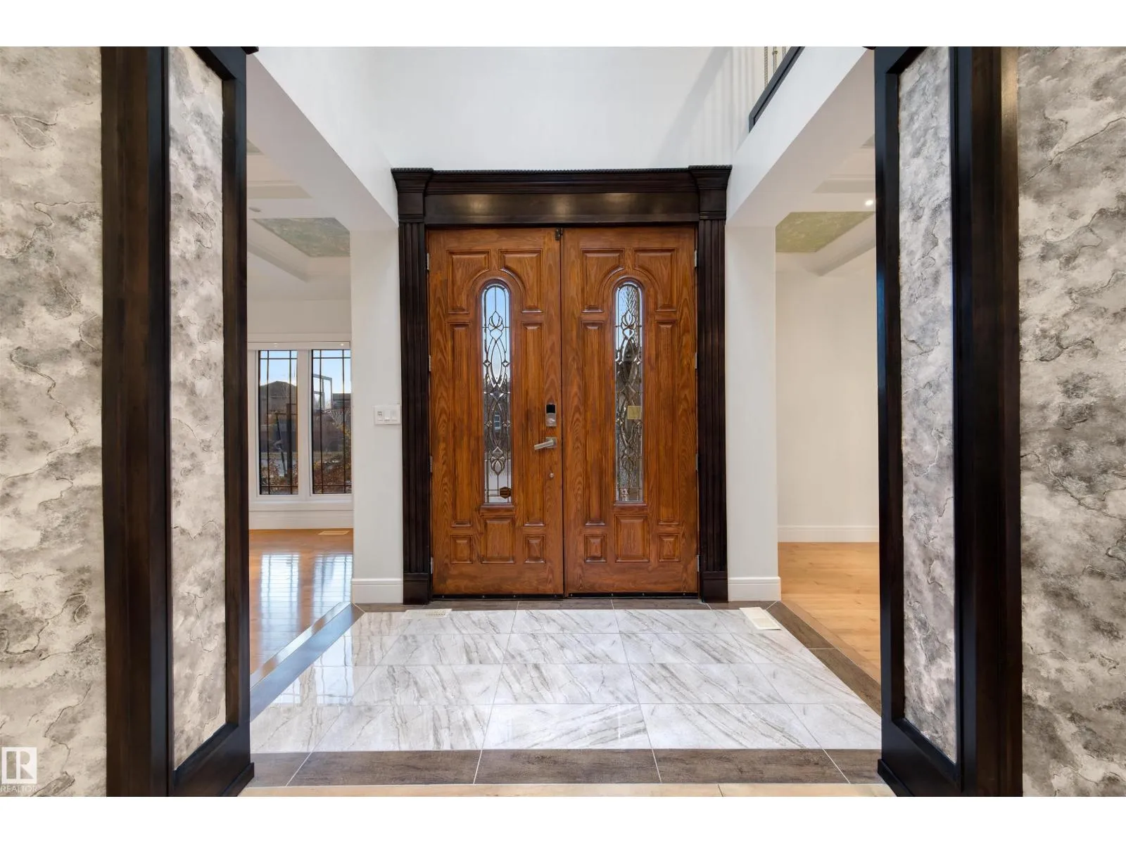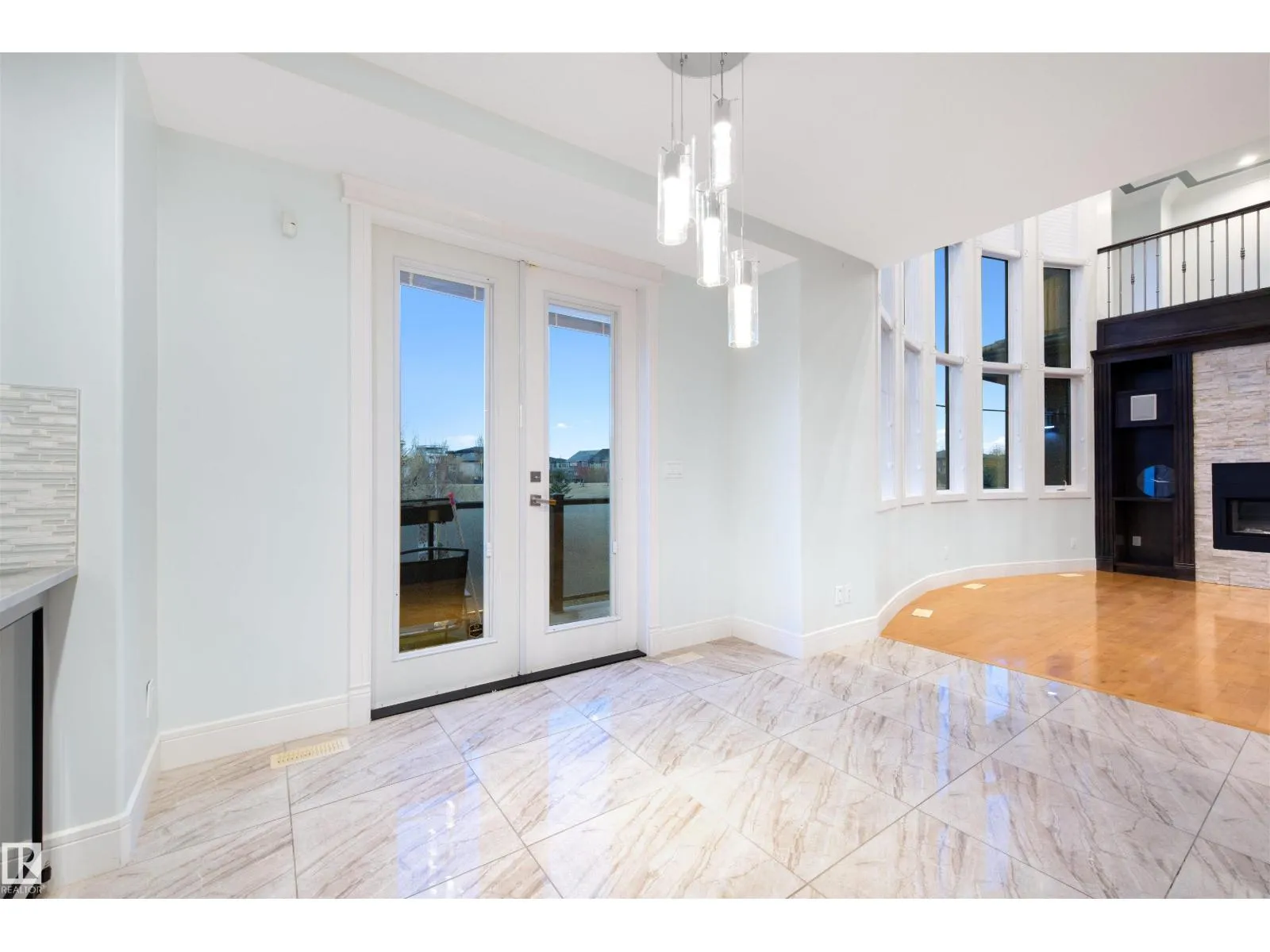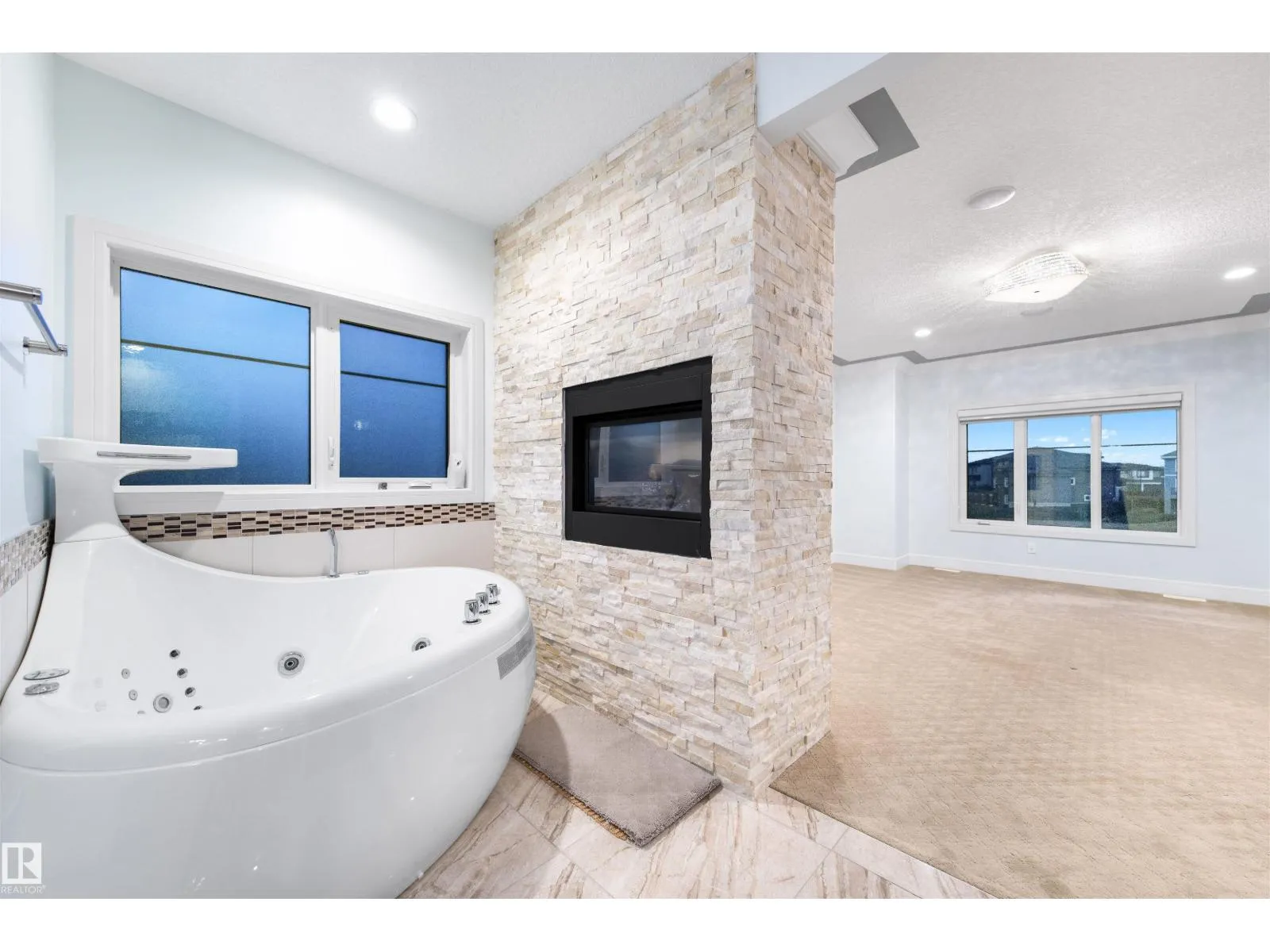 Exquisite WALKOUT ESTATE in prestigious Westpointe of Windermere, offering 6,152 sq.ft. of living space and BACKING ONTO SERENE GREEN SPACE. This thoughtfully designed custom home features: spacious 6 bedrooms, 6 baths (including 4 en-suites), a HEATED TRIPLE GARAGE, central A/C, high-end appliances, spice kitchen, elegant feature walls, open-to-above living area, formal dining & living rooms, BALCONY, HEATED BASEMENT FLOOR, plus a main-floor bedroom with full bath. The upper level includes: a bonus room overlooking the park and a luxurious primary suite with spa-style ensuite, jacuzzi, fireplace, and steam shower. The walkout lower level is designed for entertainment with a large recreation room, gym, bedroom, full bath, and access to a covered patio. Fully landscaped with statues and a fountain, this exceptional home combines elegance, comfort, and craftsmanship. (id:27476)