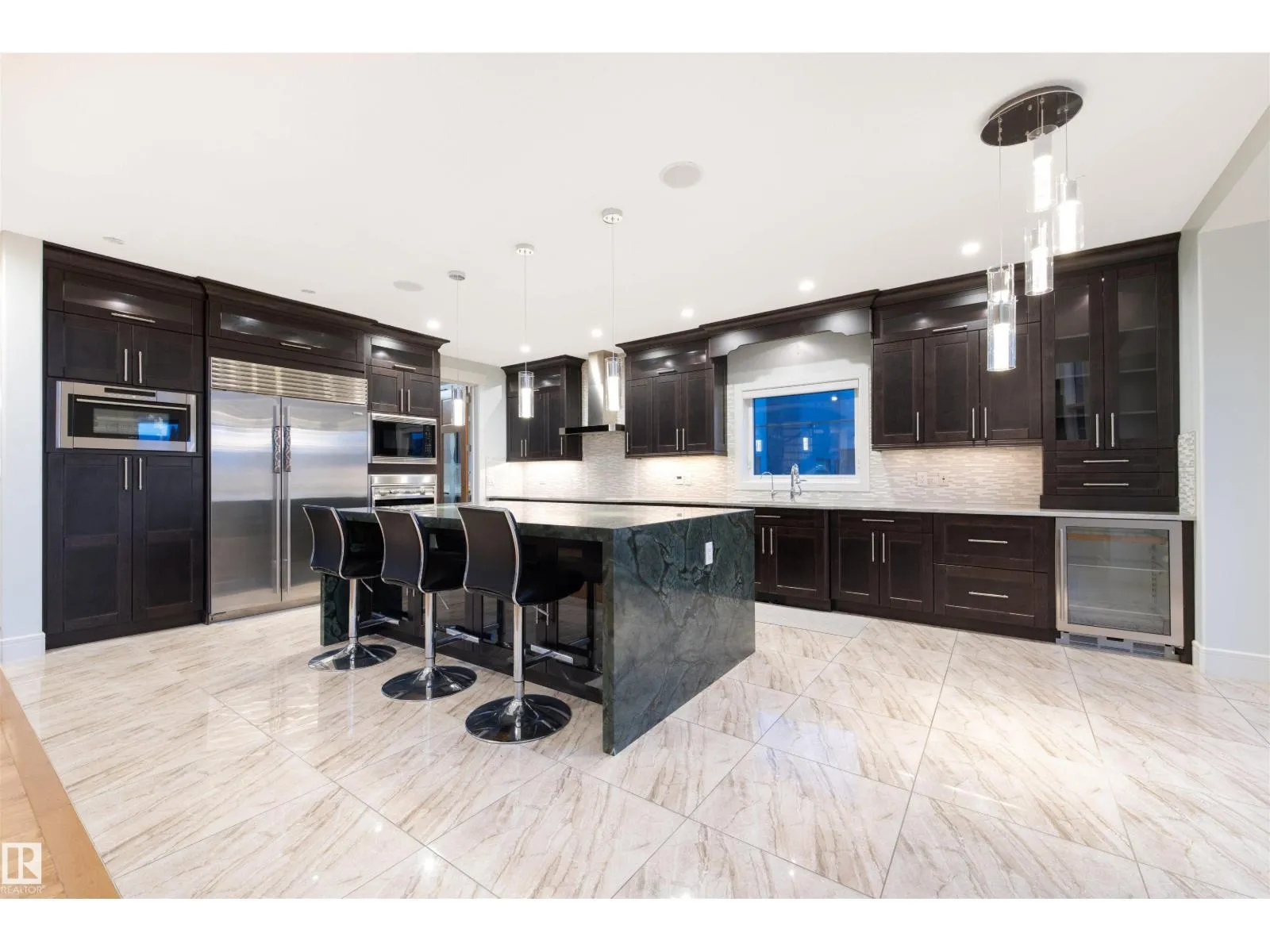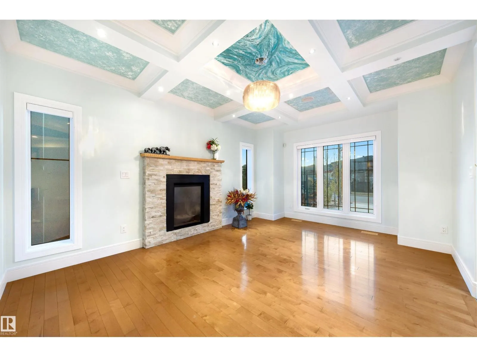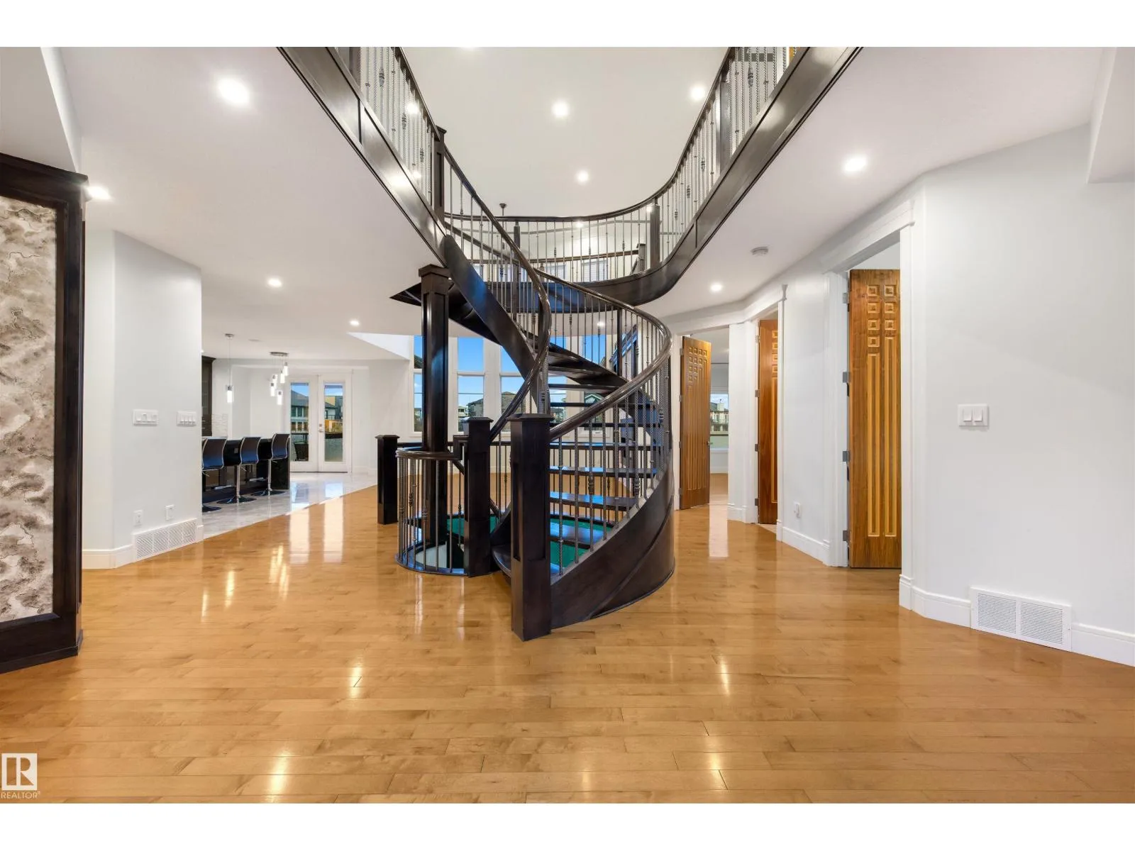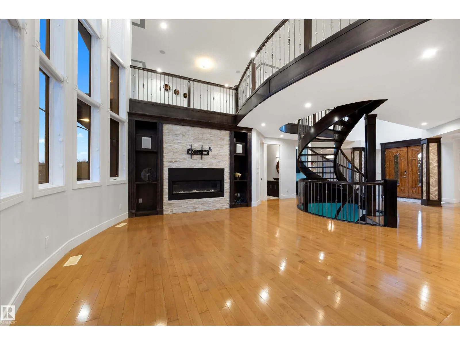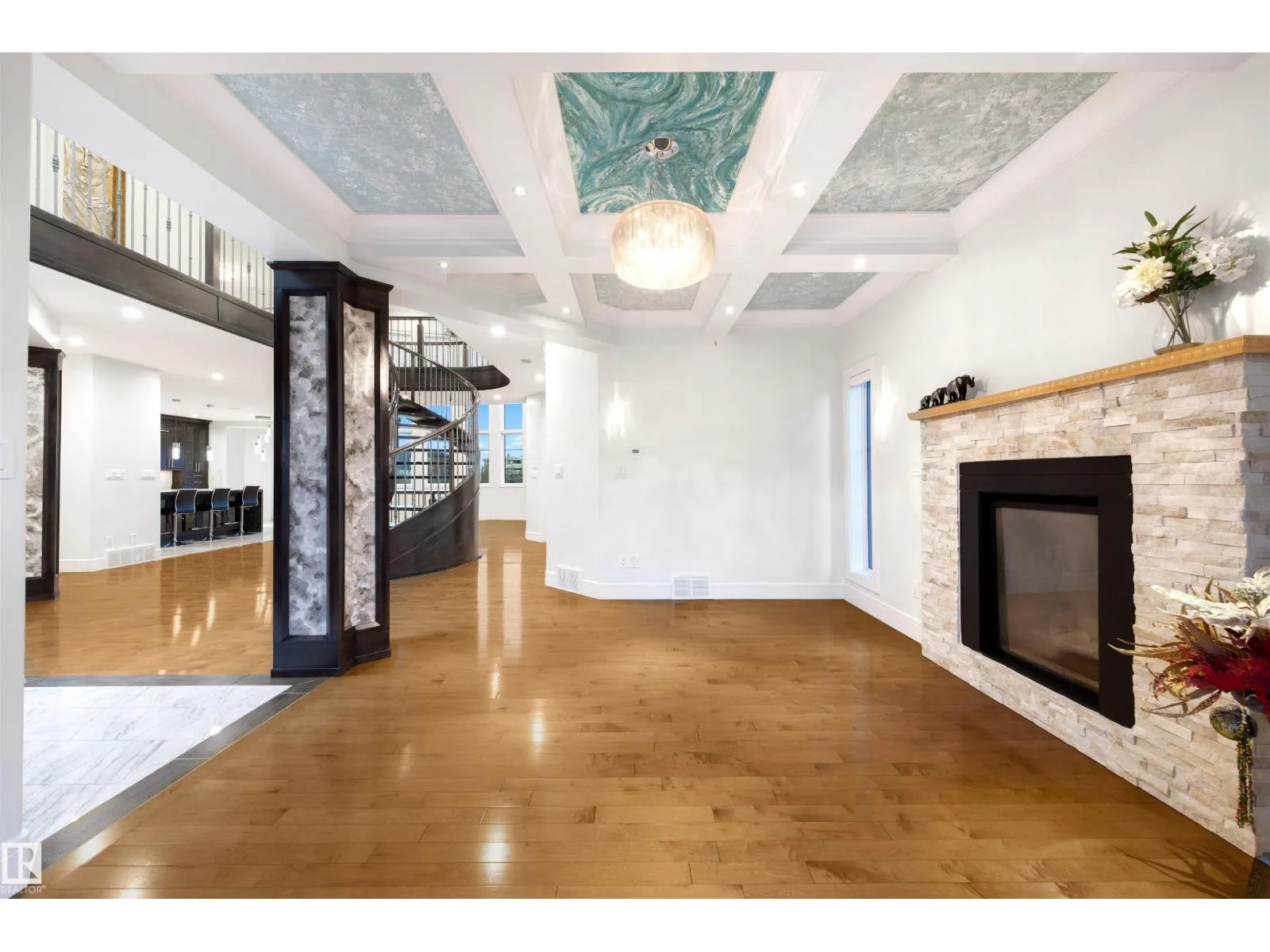 Exquisite WALKOUT ESTATE in prestigious Westpointe of Windermere, offering 6,152 sq.ft. of living space and BACKING ONTO SERENE GREEN SPACE. This thoughtfully designed custom home features: spacious 6 bedrooms, 6 baths (including 4 en-suites), a HEATED TRIPLE GARAGE, central A/C, high-end appliances, spice kitchen, elegant feature walls, open-to-above living area, formal dining & living rooms, BALCONY, HEATED BASEMENT FLOOR, plus a main-floor bedroom with full bath. The upper level includes: a bonus room overlooking the park and a luxurious primary suite with spa-style ensuite, jacuzzi, fireplace, and steam shower. The walkout lower level is designed for entertainment with a large recreation room, gym, bedroom, full bath, and access to a covered patio. Fully landscaped with statues and a fountain, this exceptional home combines elegance, comfort, and craftsmanship. (id:27476)