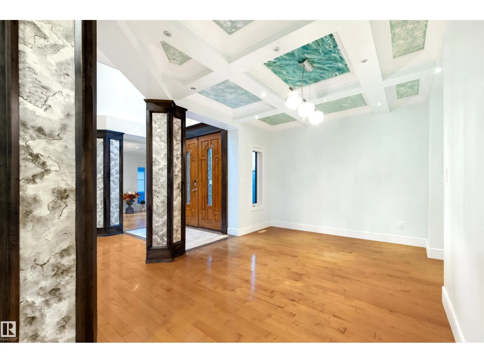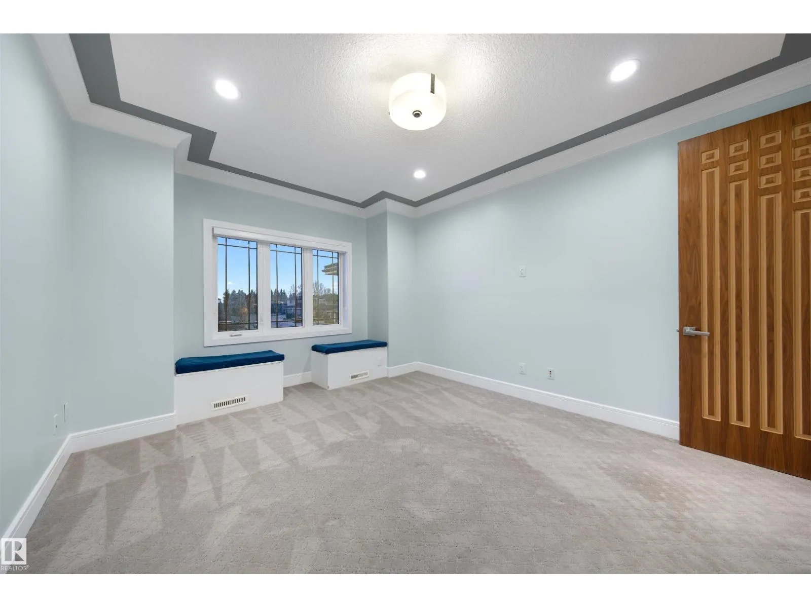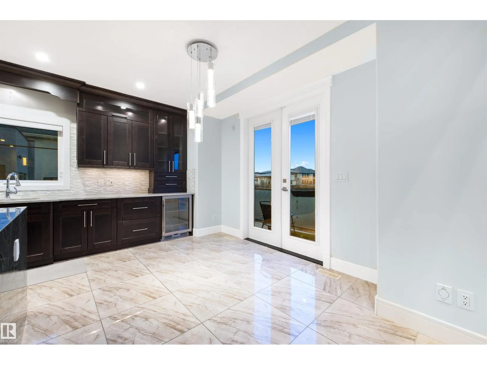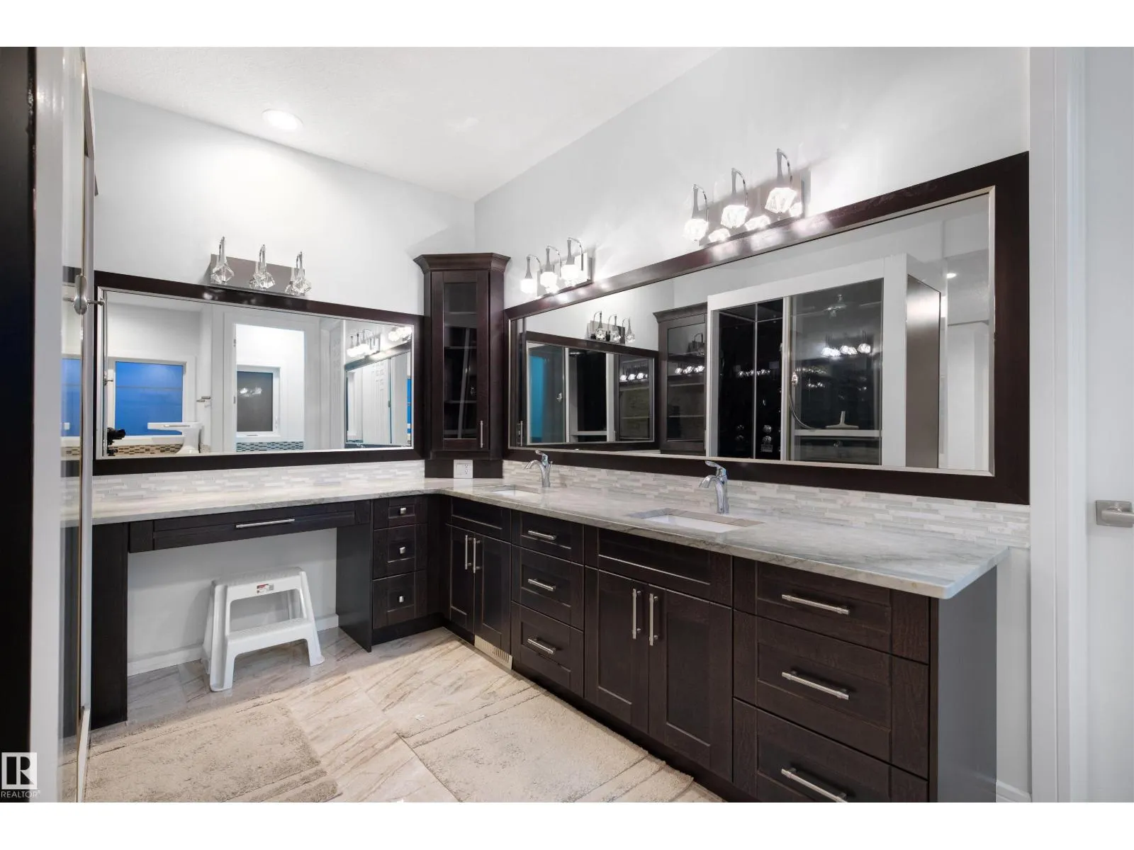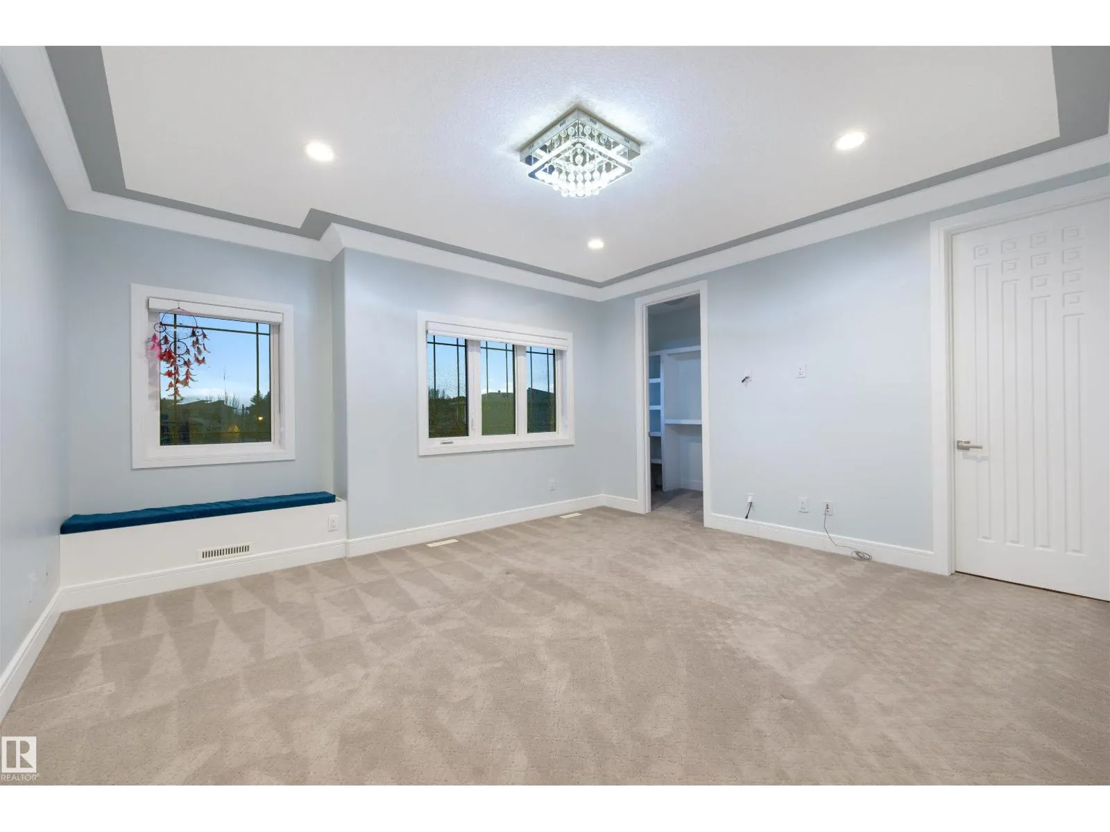 Exquisite WALKOUT ESTATE in prestigious Westpointe of Windermere, offering 6,152 sq.ft. of living space and BACKING ONTO SERENE GREEN SPACE. This thoughtfully designed custom home features: spacious 6 bedrooms, 6 baths (including 4 en-suites), a HEATED TRIPLE GARAGE, central A/C, high-end appliances, spice kitchen, elegant feature walls, open-to-above living area, formal dining & living rooms, BALCONY, HEATED BASEMENT FLOOR, plus a main-floor bedroom with full bath. The upper level includes: a bonus room overlooking the park and a luxurious primary suite with spa-style ensuite, jacuzzi, fireplace, and steam shower. The walkout lower level is designed for entertainment with a large recreation room, gym, bedroom, full bath, and access to a covered patio. Fully landscaped with statues and a fountain, this exceptional home combines elegance, comfort, and craftsmanship. (id:27476)