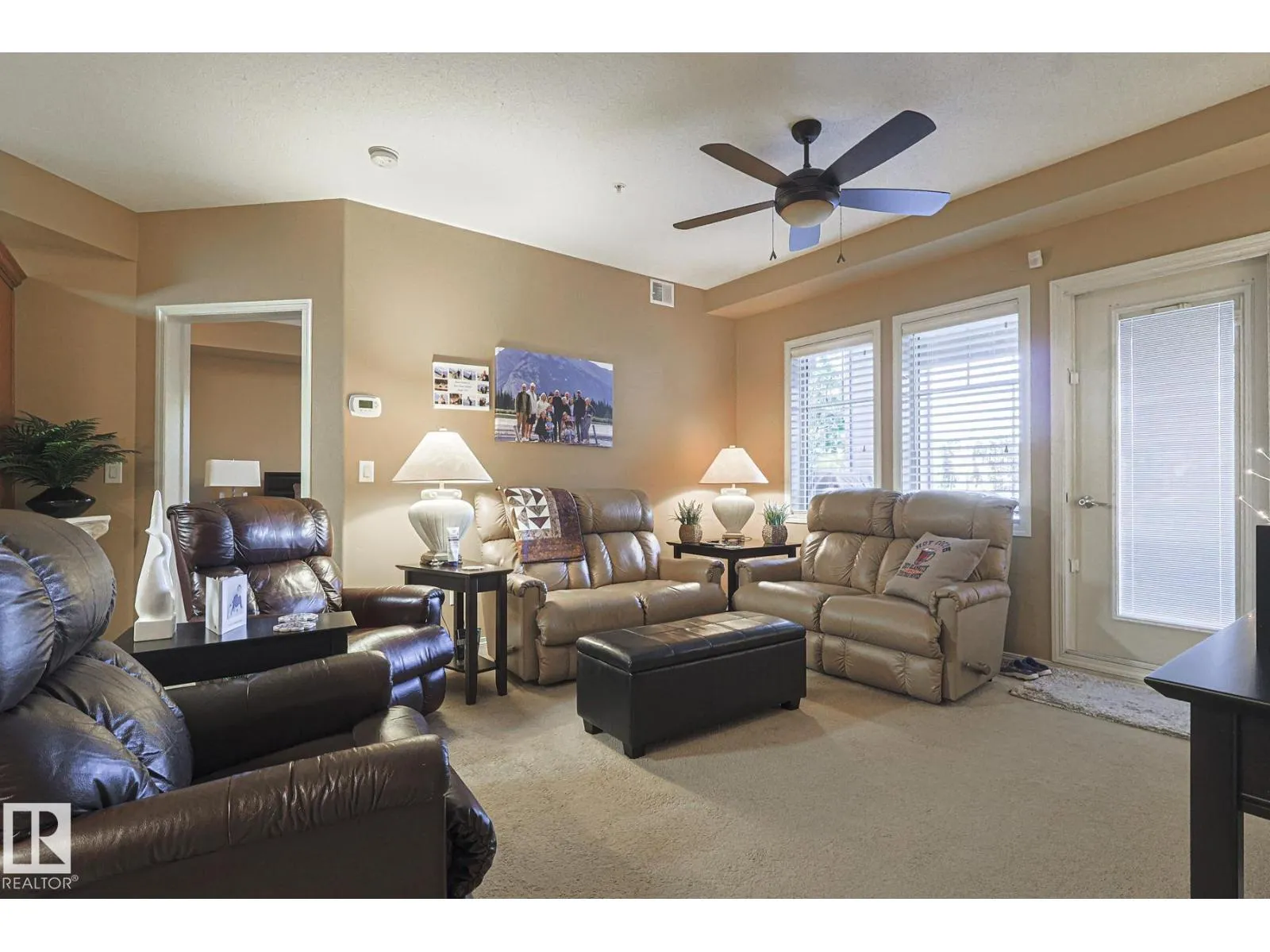 Welcome to carefree living in the heart of Griesbach â a vibrant, master-planned community designed for connection, comfort, and convenience. This beautifully appointed ground level 2-bedroom, 2-bath condo offers a bright open-concept layout perfect for relaxing or entertaining. The spacious kitchen flows seamlessly into the inviting living and dining areas, where large windows bathe the space in natural light. Retreat to the generous primary suite featuring a private 3-piece ensuite, while the second bedroom and full 4-piece bath provide flexibility for guests or hobbies. Enjoy morning coffee or evening sunsets on the covered patio, or take advantage of the buildingâs exceptional amenities â a fitness center, party room, and guest suite for visiting friends and family. With heated underground parking, nearby shopping, and easy transit access, this is low-maintenance living at its finest â the perfect home base for snowbirds or those ready to embrace an active, lock-and-leave lifestyle. (id:27476)