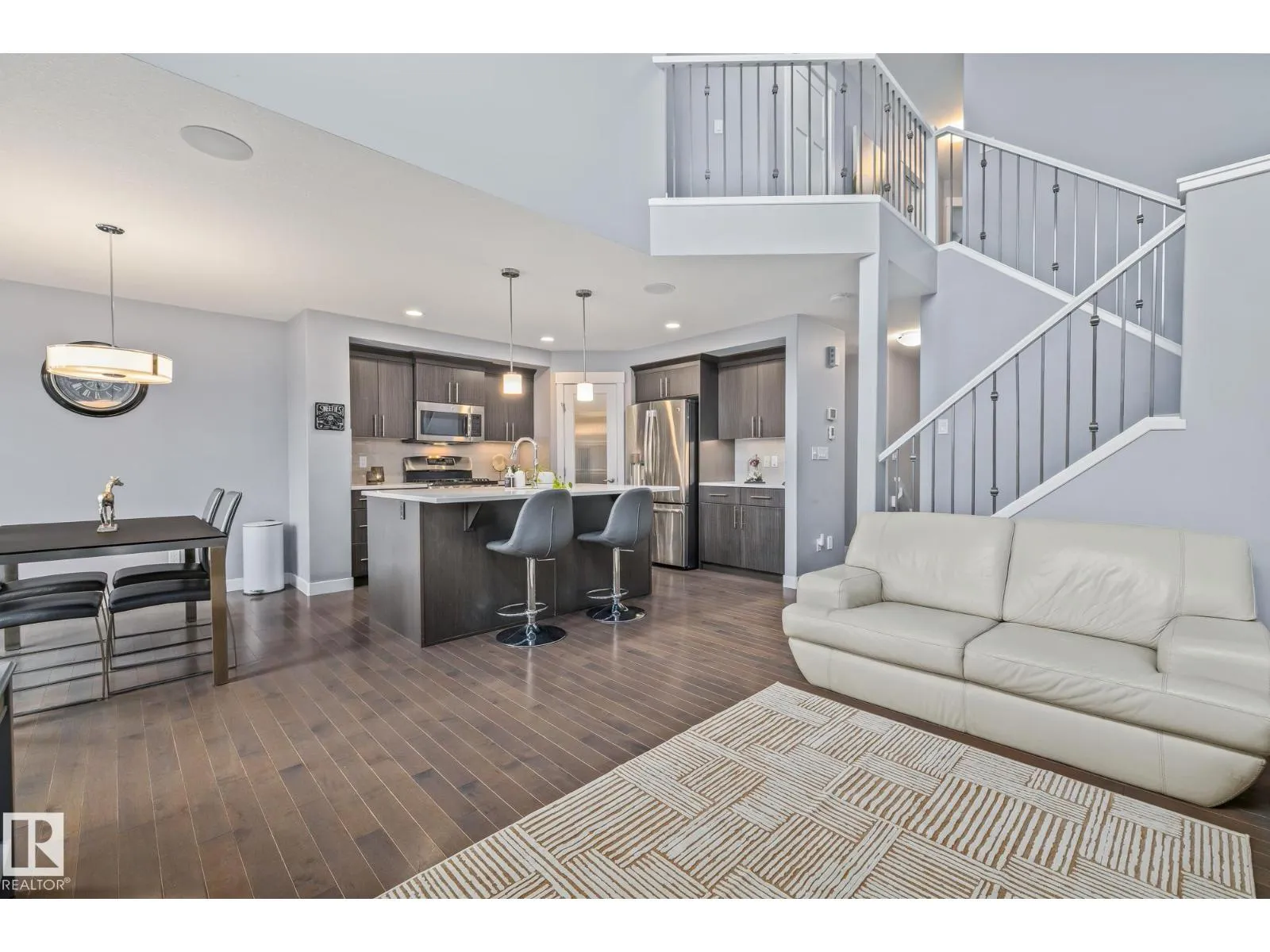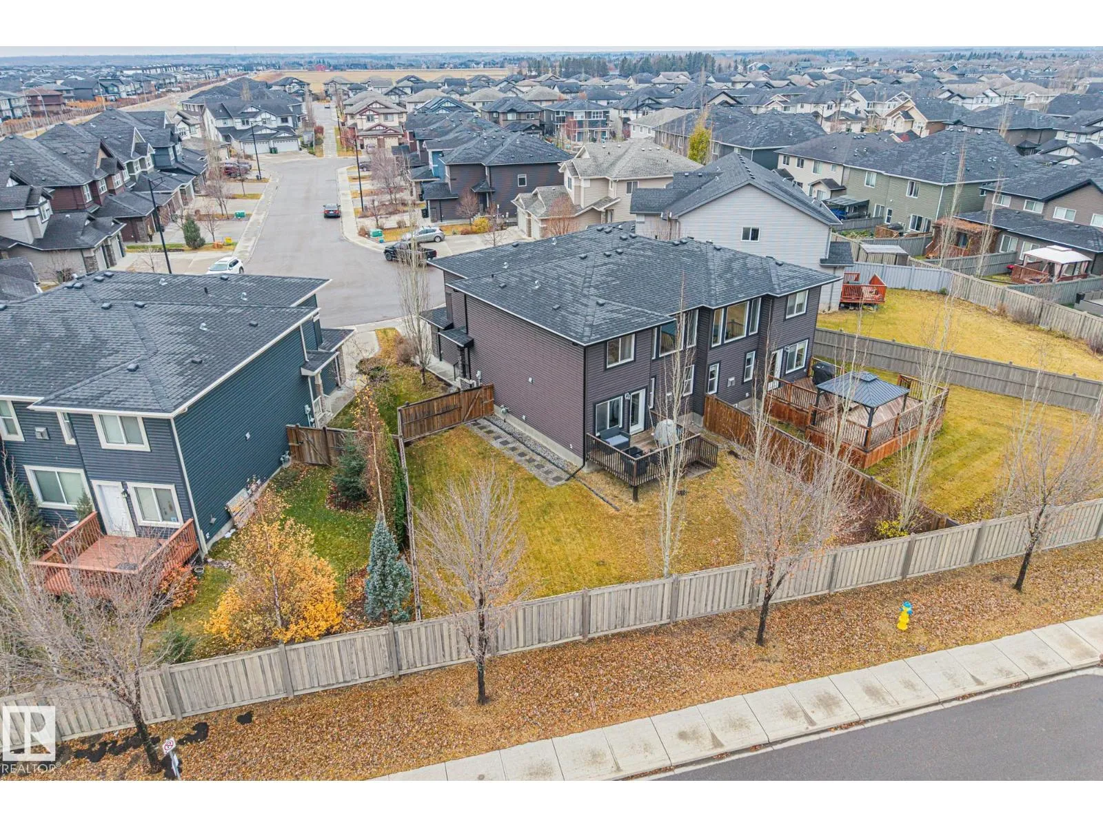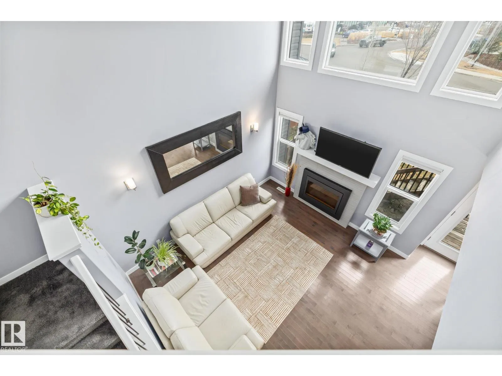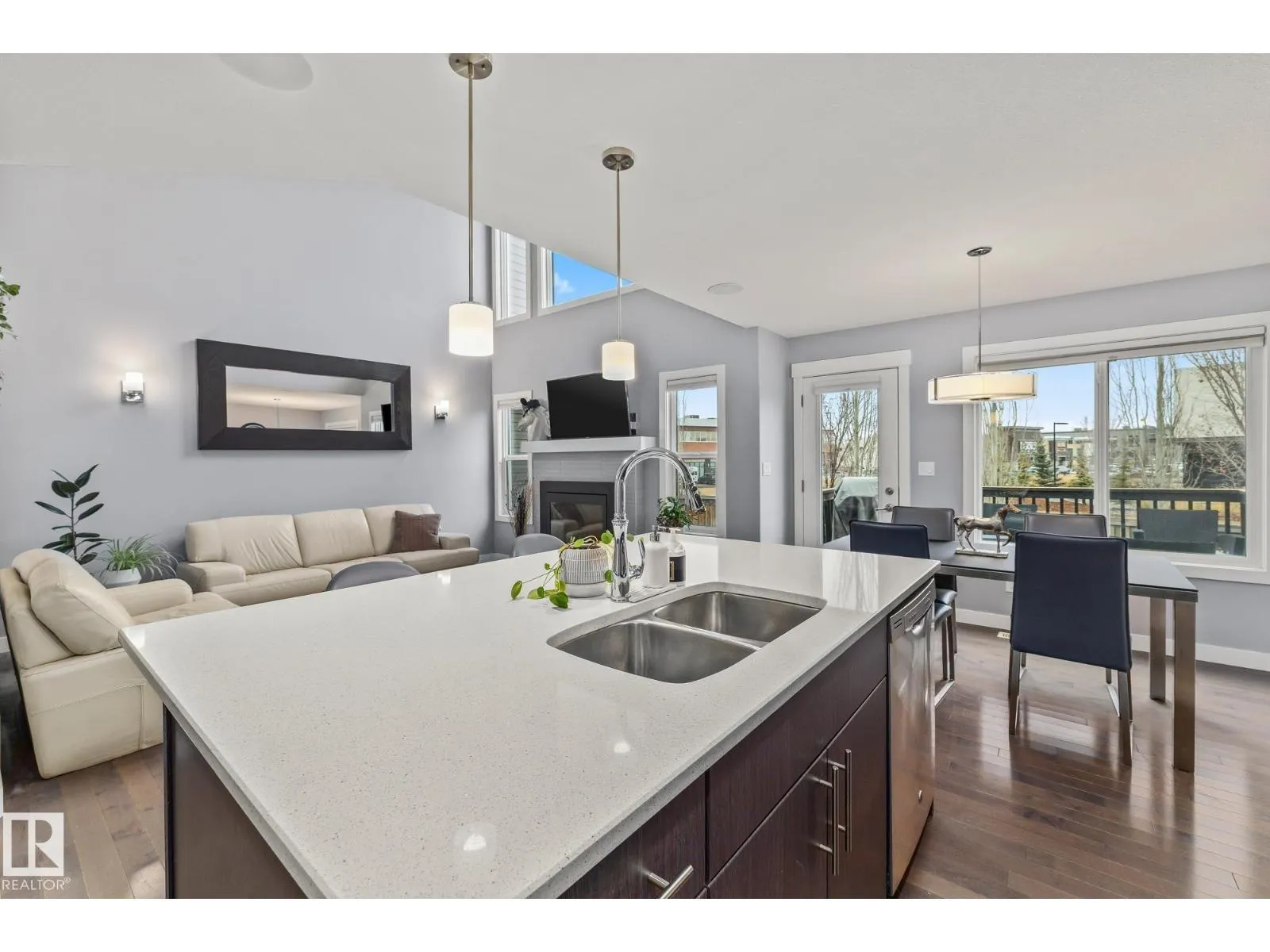 Rarely do you come across a half duplex that features an open-to-below concept, making it feel more open and spacious than any others. This fully upgraded Dolce Vita home is located in a quiet cul de sac in the heart of Windermere, which is surrounded by amenities, and even has an upgraded adjoining wall with extra insulation to minimize noise travel. The main floor welcomes you with a large entryway that leads into the cozy living room with soaring 18ft ceilings, a gas fireplace, and large windows that allow in plenty of sunshine. The kitchen boasts a large island w/ seating, quartz countertops, stainless steel appliances, a gas stove, a walk-in pantry, a comfy dining area, and a central vac kick plate. Upstairs hosts the large primary bedroom with a walkthrough ensuite, featuring dual sinks, and a spacious walk-in closet. Upstairs also has 2 more bedrooms, a 4pc bathroom w/ built-in shelving, and a laundry room for added convenience. The basement is roughed-in and awaits your final touch. Welcome home! (id:27476)