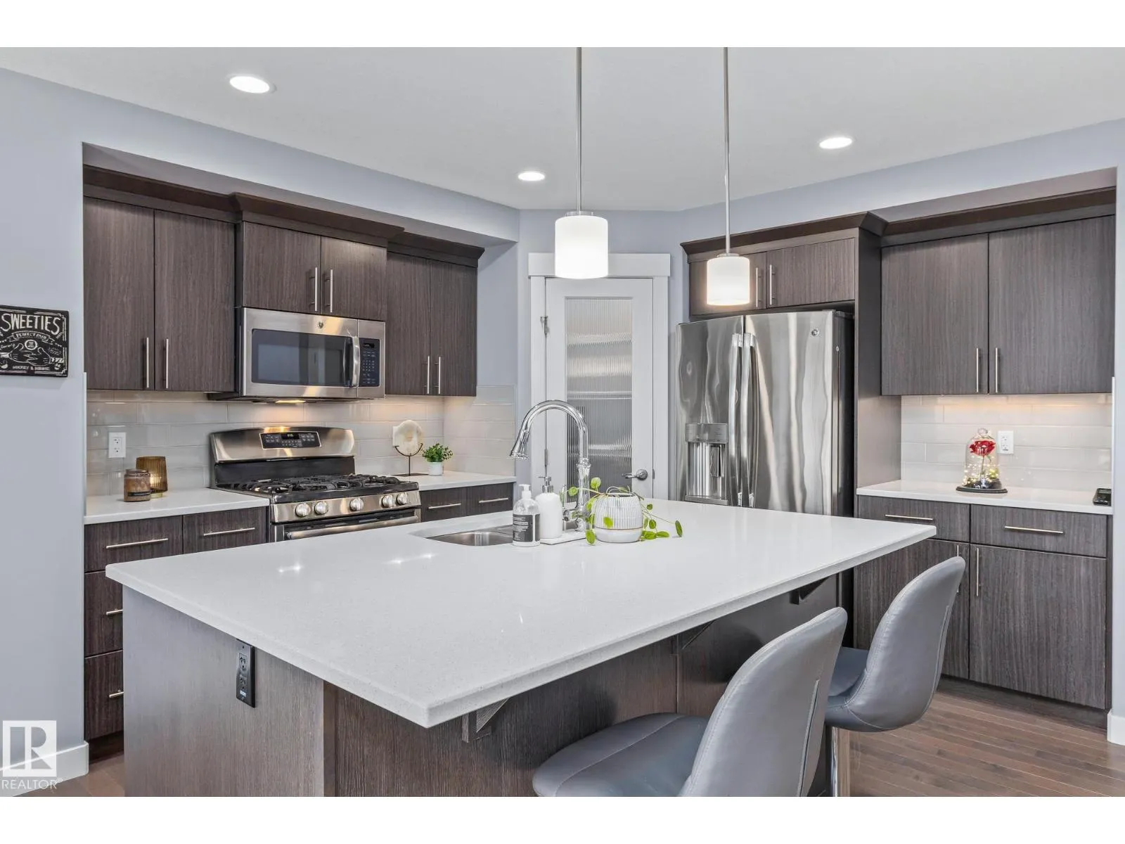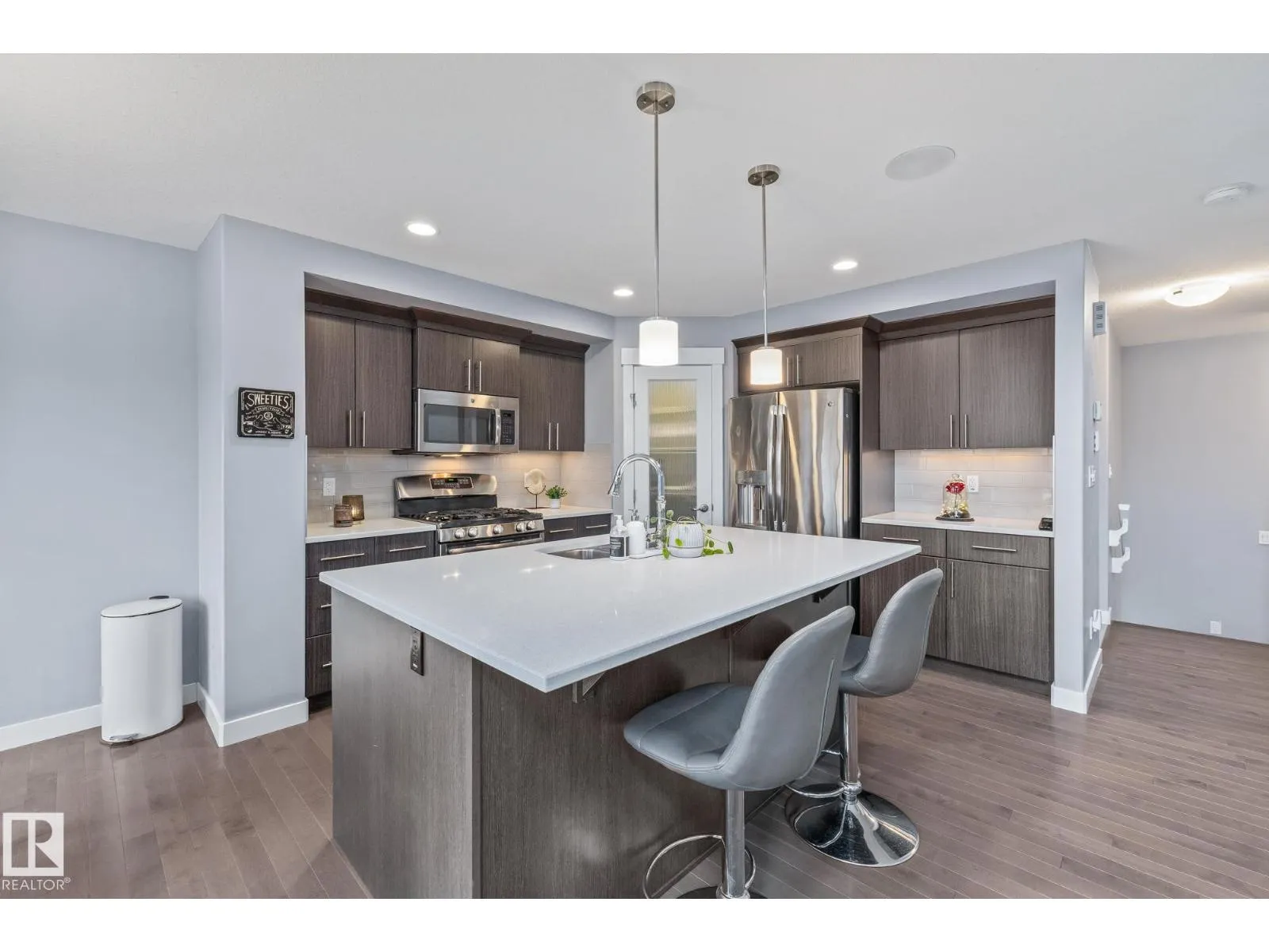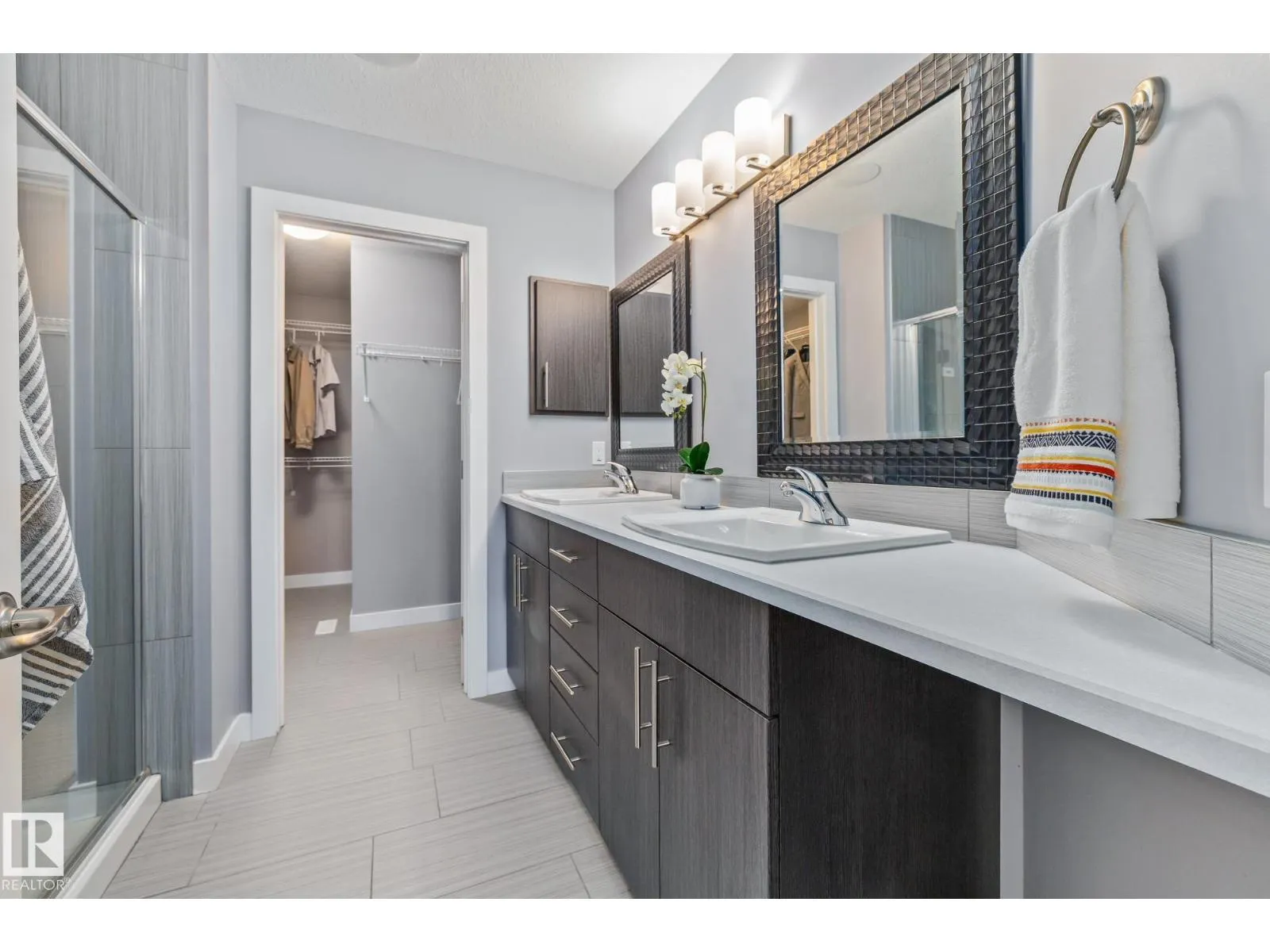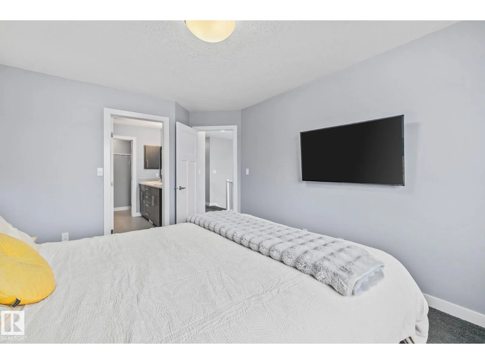 Rarely do you come across a half duplex that features an open-to-below concept, making it feel more open and spacious than any others. This fully upgraded Dolce Vita home is located in a quiet cul de sac in the heart of Windermere, which is surrounded by amenities, and even has an upgraded adjoining wall with extra insulation to minimize noise travel. The main floor welcomes you with a large entryway that leads into the cozy living room with soaring 18ft ceilings, a gas fireplace, and large windows that allow in plenty of sunshine. The kitchen boasts a large island w/ seating, quartz countertops, stainless steel appliances, a gas stove, a walk-in pantry, a comfy dining area, and a central vac kick plate. Upstairs hosts the large primary bedroom with a walkthrough ensuite, featuring dual sinks, and a spacious walk-in closet. Upstairs also has 2 more bedrooms, a 4pc bathroom w/ built-in shelving, and a laundry room for added convenience. The basement is roughed-in and awaits your final touch. Welcome home! (id:27476)