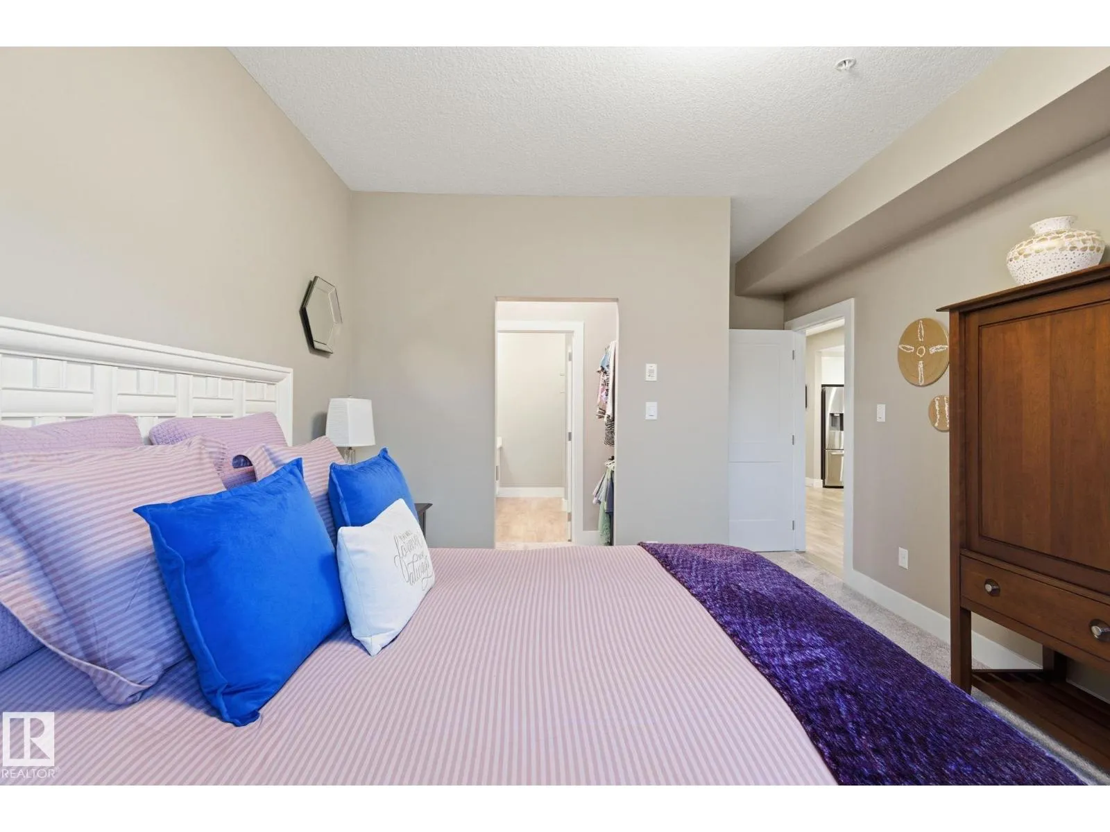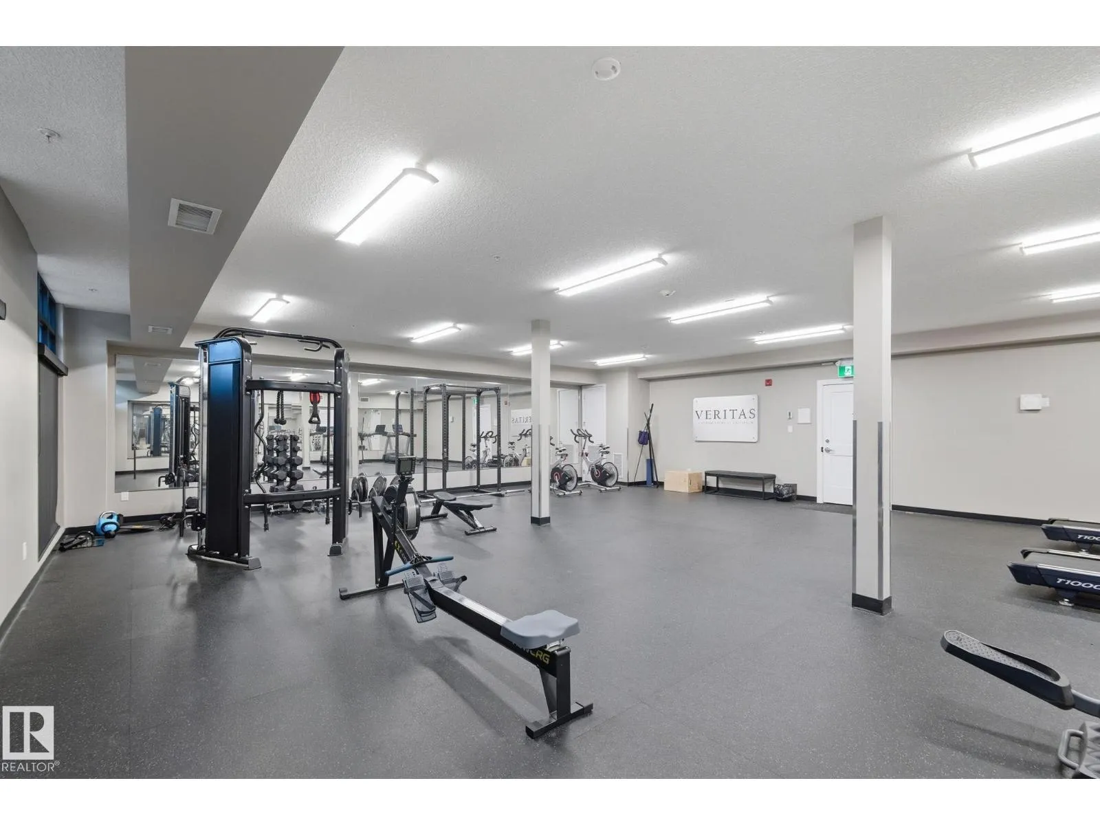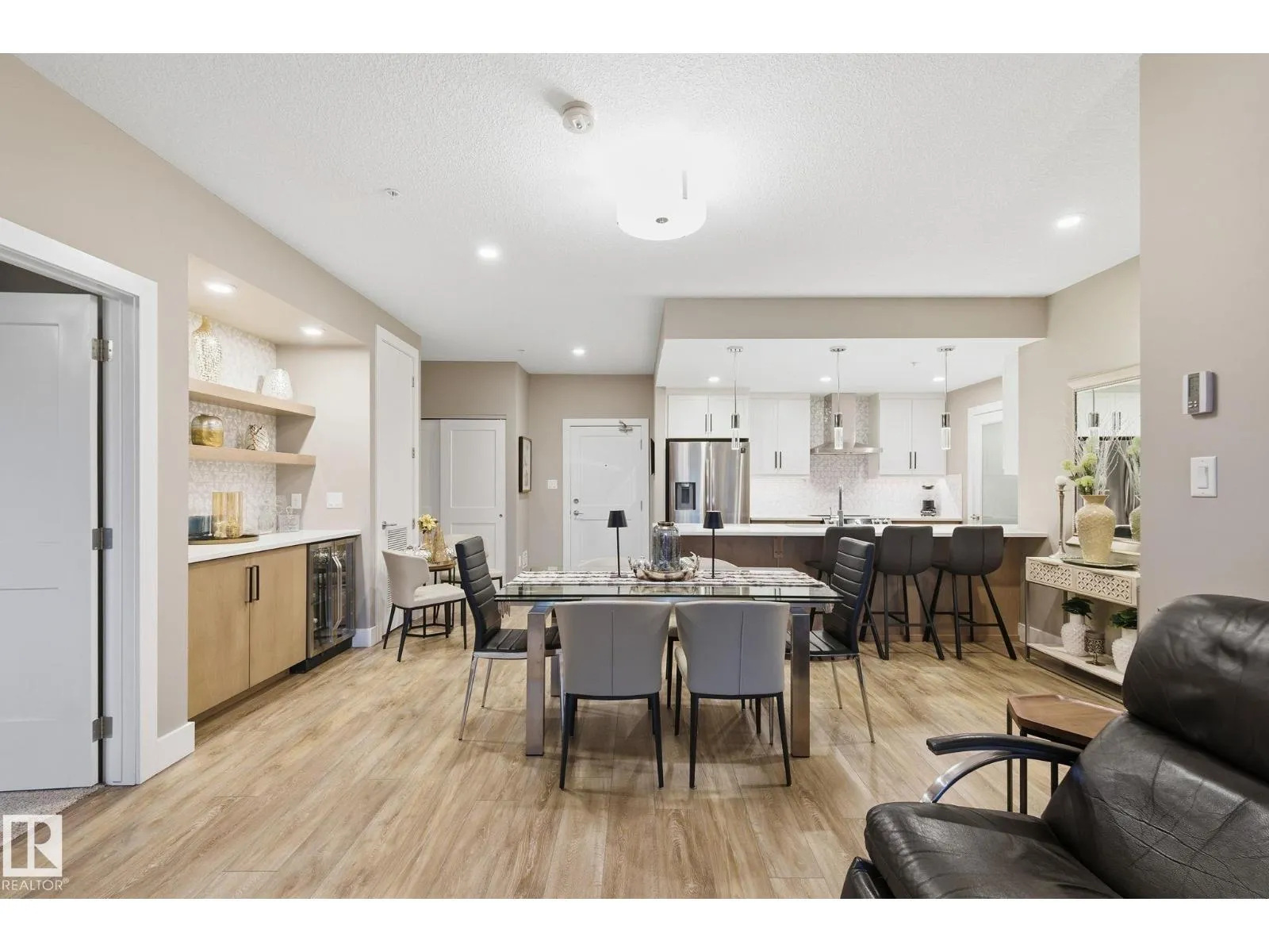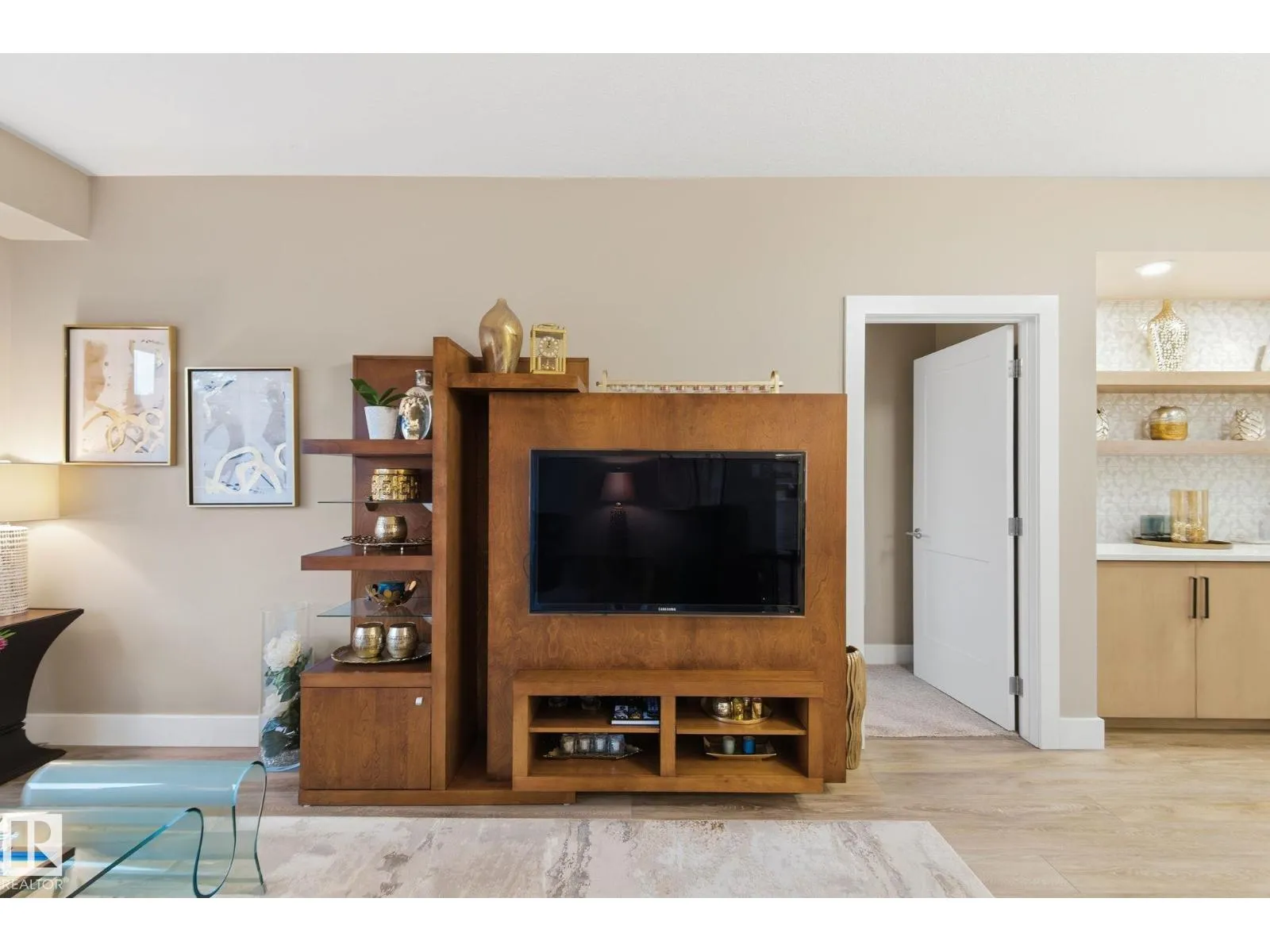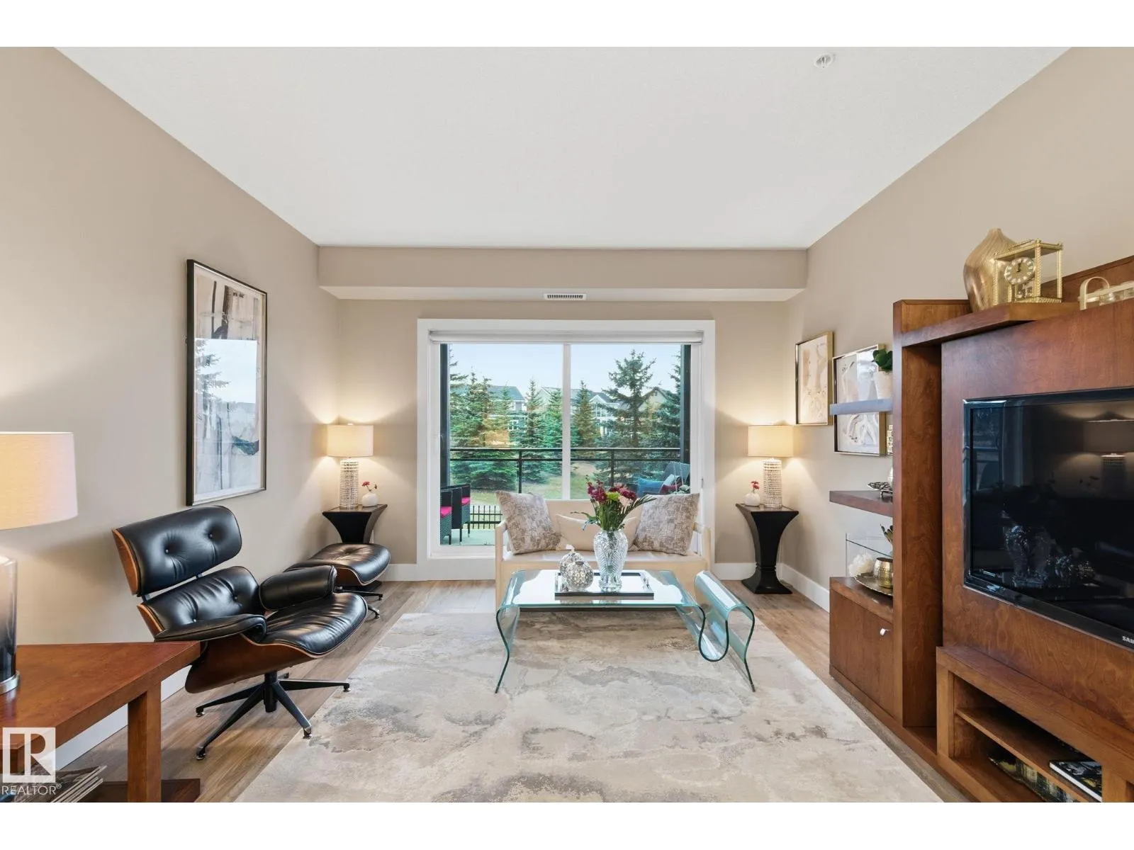 Experience refined luxury living at Veritas, the premier condominium residence in the community of Griesbach. This exquisite former show suite blends elegance and comfort, showcasing over $25,000 in designer upgrades with captivating park and lake views. Thoughtfully designed, this main-floor retreat features gourmet-inspired quartz countertops, a custom laundry room with counter and built-in cabinetry, a pantry, and a stylish bar area with wine fridge. Sophisticated finishes, open-concept living, and serene surroundings create an atmosphere of quiet indulgence. Enjoy the convenience of two titled parking stalls and access to Veritasâ exceptional amenities, including a state-of-the-art fitness centre, beautiful social lounge complete with billiard table, and a spacious guest suite for overnight guests. This unit is perfect for discerning professionals or empty nesters seeking a lifestyle of elegance, comfort, and effortless sophistication in one of Edmontonâs most sought-after residences. (id:27476)