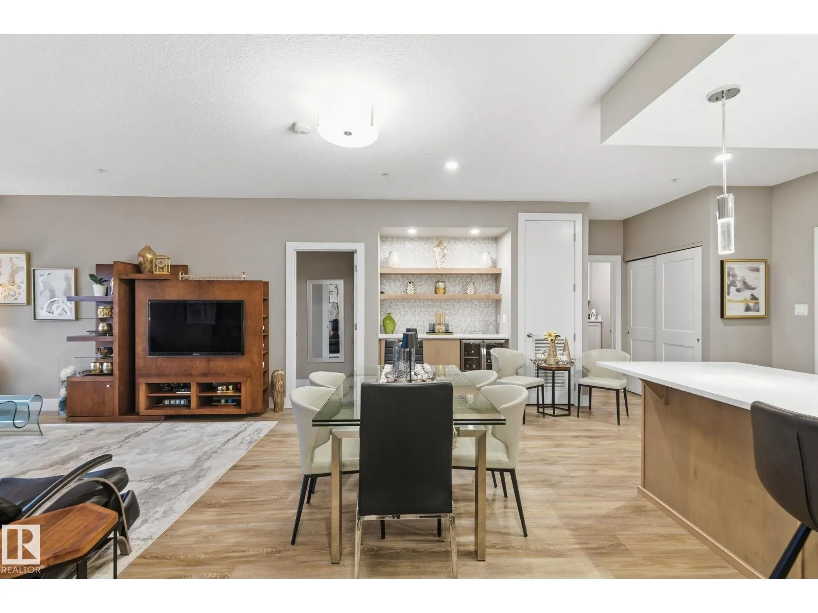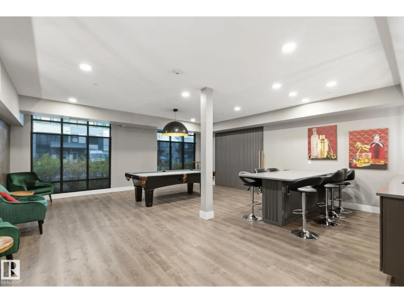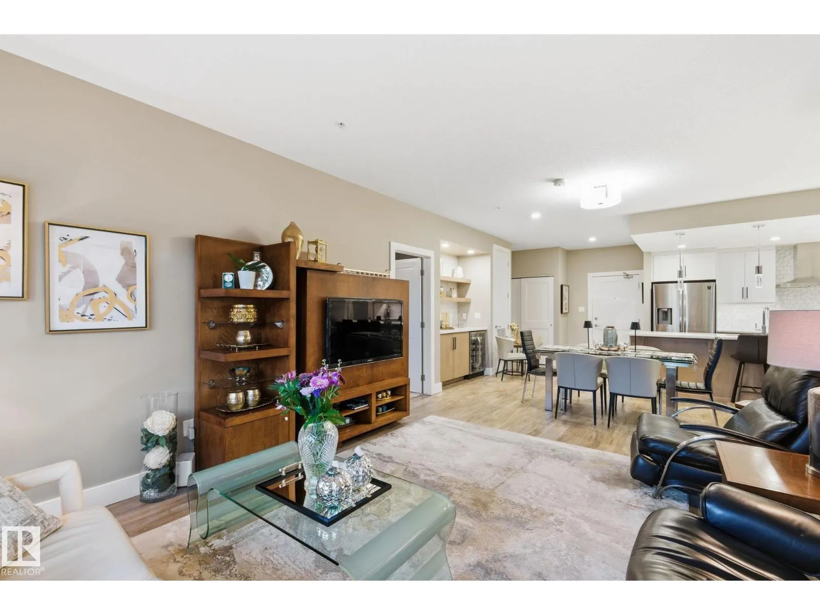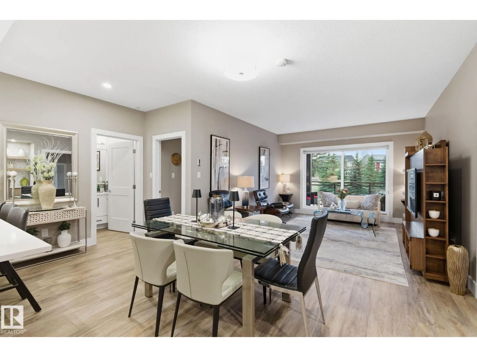 Experience refined luxury living at Veritas, the premier condominium residence in the community of Griesbach. This exquisite former show suite blends elegance and comfort, showcasing over $25,000 in designer upgrades with captivating park and lake views. Thoughtfully designed, this main-floor retreat features gourmet-inspired quartz countertops, a custom laundry room with counter and built-in cabinetry, a pantry, and a stylish bar area with wine fridge. Sophisticated finishes, open-concept living, and serene surroundings create an atmosphere of quiet indulgence. Enjoy the convenience of two titled parking stalls and access to Veritasâ exceptional amenities, including a state-of-the-art fitness centre, beautiful social lounge complete with billiard table, and a spacious guest suite for overnight guests. This unit is perfect for discerning professionals or empty nesters seeking a lifestyle of elegance, comfort, and effortless sophistication in one of Edmontonâs most sought-after residences. (id:27476)