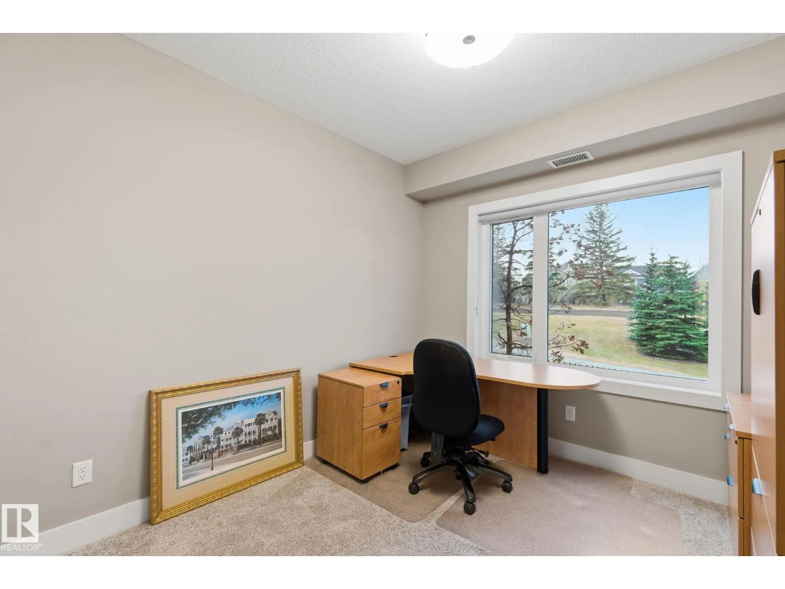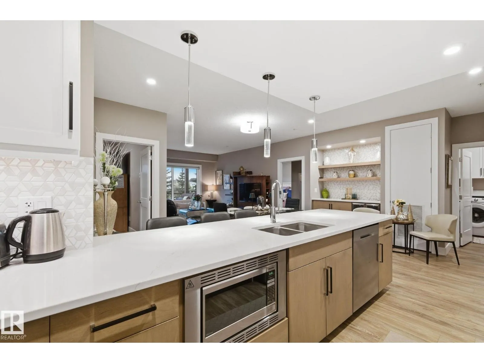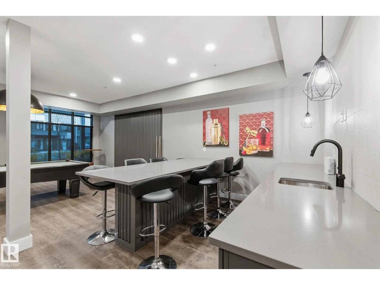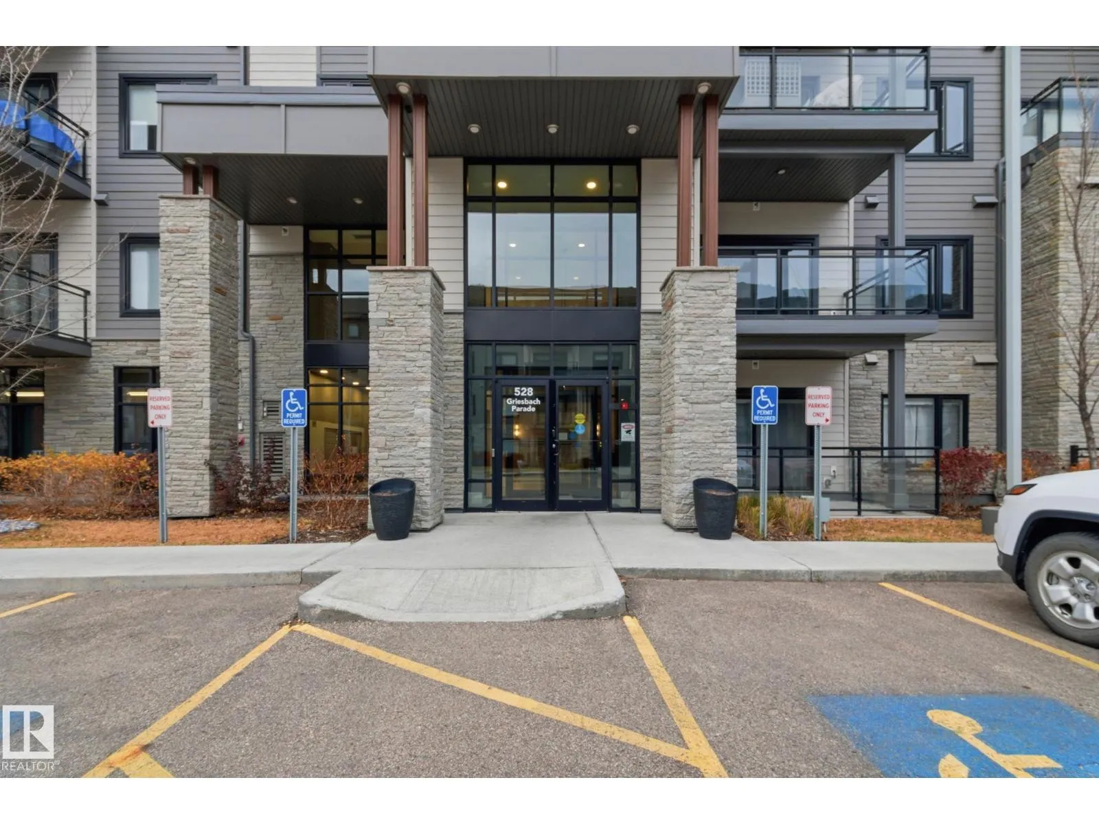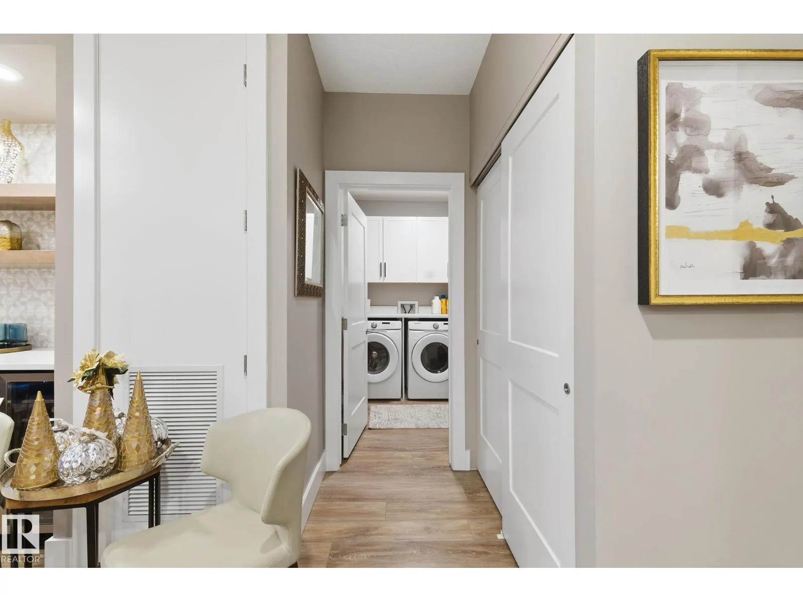 Experience refined luxury living at Veritas, the premier condominium residence in the community of Griesbach. This exquisite former show suite blends elegance and comfort, showcasing over $25,000 in designer upgrades with captivating park and lake views. Thoughtfully designed, this main-floor retreat features gourmet-inspired quartz countertops, a custom laundry room with counter and built-in cabinetry, a pantry, and a stylish bar area with wine fridge. Sophisticated finishes, open-concept living, and serene surroundings create an atmosphere of quiet indulgence. Enjoy the convenience of two titled parking stalls and access to Veritasâ exceptional amenities, including a state-of-the-art fitness centre, beautiful social lounge complete with billiard table, and a spacious guest suite for overnight guests. This unit is perfect for discerning professionals or empty nesters seeking a lifestyle of elegance, comfort, and effortless sophistication in one of Edmontonâs most sought-after residences. (id:27476)