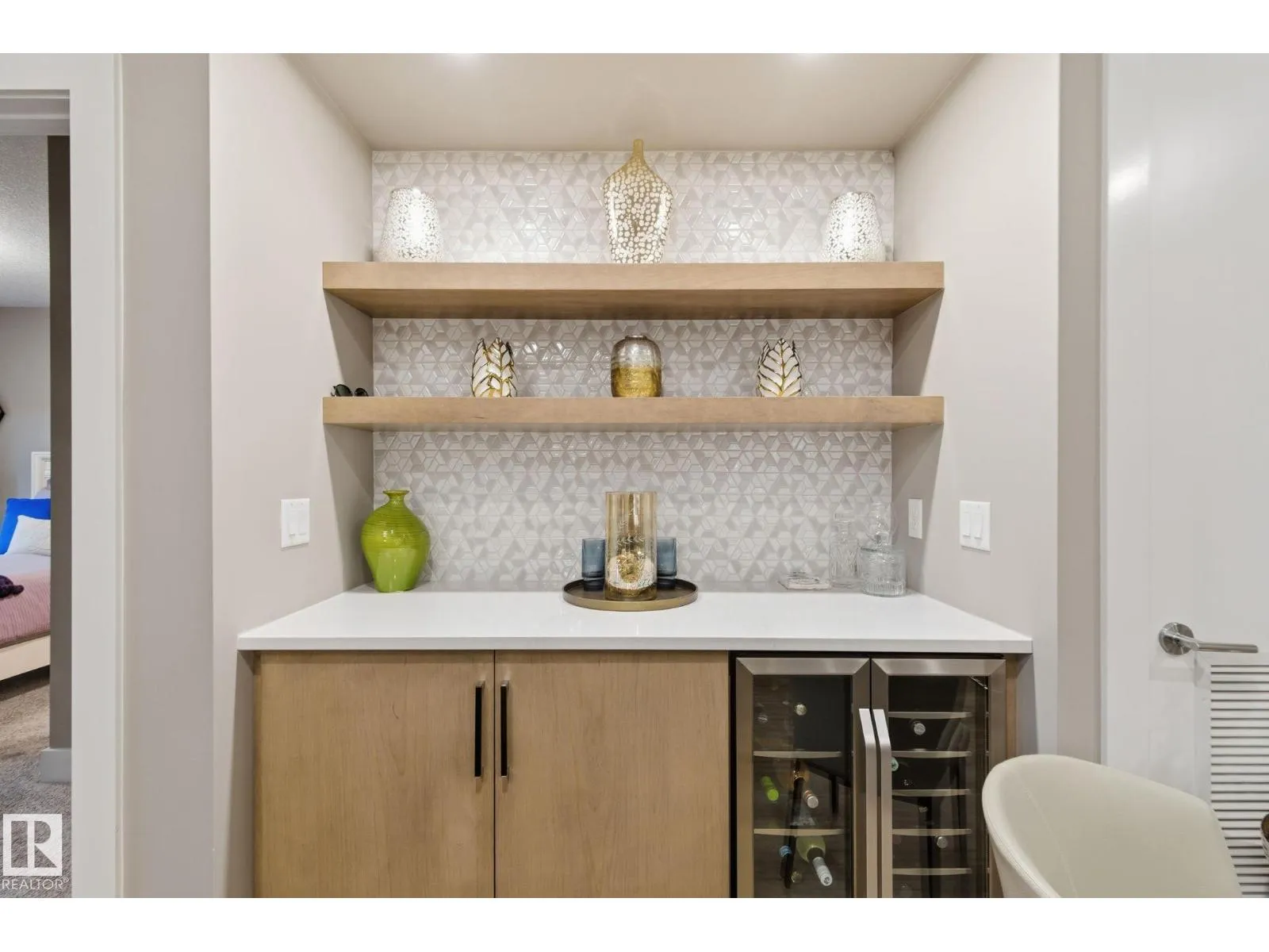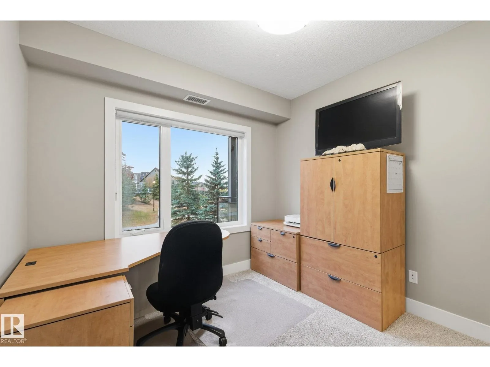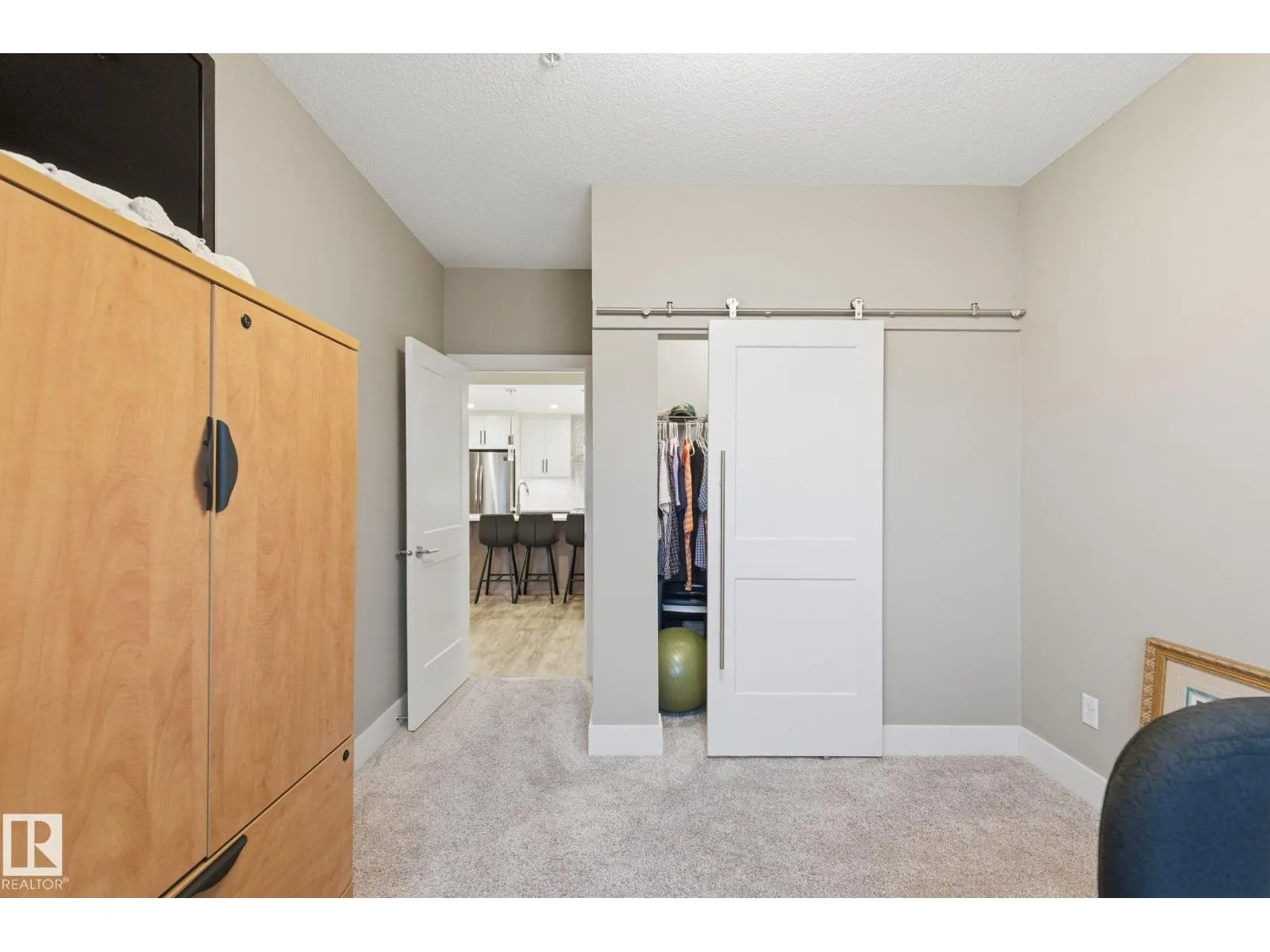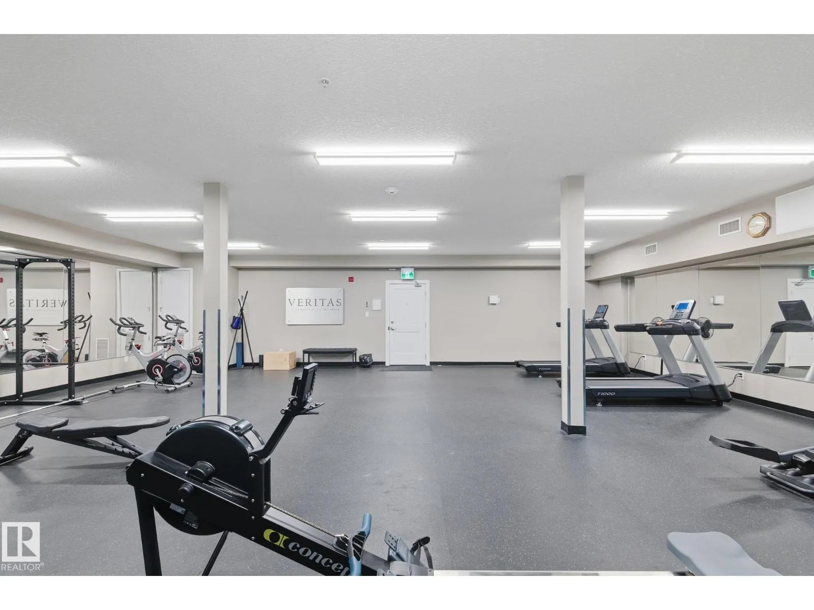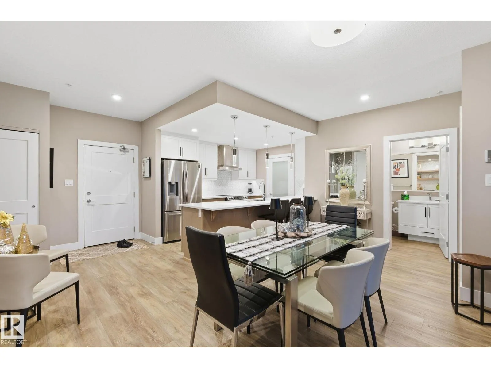 Experience refined luxury living at Veritas, the premier condominium residence in the community of Griesbach. This exquisite former show suite blends elegance and comfort, showcasing over $25,000 in designer upgrades with captivating park and lake views. Thoughtfully designed, this main-floor retreat features gourmet-inspired quartz countertops, a custom laundry room with counter and built-in cabinetry, a pantry, and a stylish bar area with wine fridge. Sophisticated finishes, open-concept living, and serene surroundings create an atmosphere of quiet indulgence. Enjoy the convenience of two titled parking stalls and access to Veritasâ exceptional amenities, including a state-of-the-art fitness centre, beautiful social lounge complete with billiard table, and a spacious guest suite for overnight guests. This unit is perfect for discerning professionals or empty nesters seeking a lifestyle of elegance, comfort, and effortless sophistication in one of Edmontonâs most sought-after residences. (id:27476)