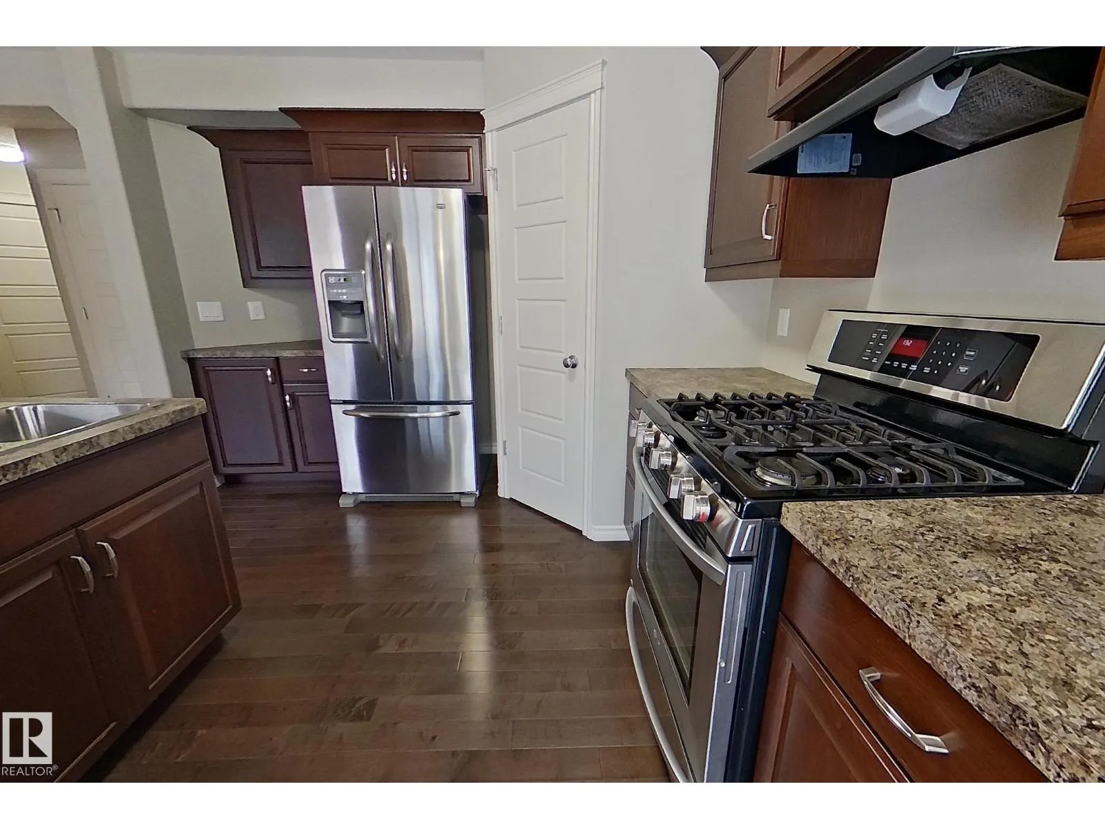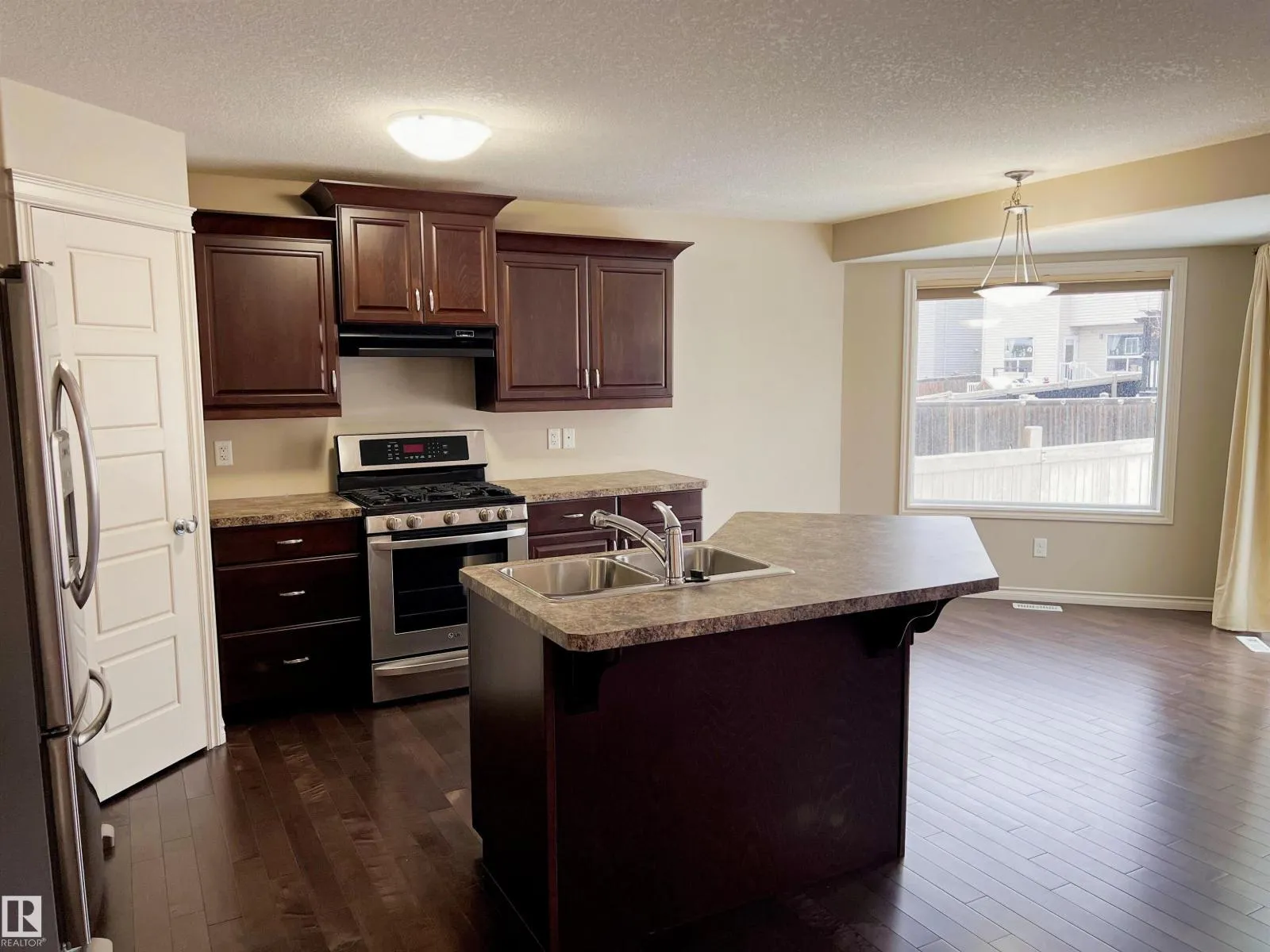 Welcome to the desirable community of Walker Lakes! This well-maintained 2-storey home offers over 1775 Sq Feet of bright, functional living space designed for family comfort. The main floor features an open-concept layout with a spacious living and dining area, a modern kitchen with ample cabinetry, a gas stove, and convenient main-floor laundry. Upstairs, a large bonus room with a cozy gas fireplace provides the perfect space for family movie nights or quiet relaxation. The primary suite includes a walk-in closet and a 4-piece ensuite, complemented by two additional bedrooms and another full bath. The unspoiled basement awaits your personal touch. Outside, enjoy a fully landscaped and fenced yard with a deck ideal for BBQs and summer gatherings. A double attached garage completes this inviting home. Ideally located near schools, parks, public transit, shopping at Harvest Pointe, and with quick access to Ellerslie Road and Anthony Henday Drive, this is the perfect place to call home. (id:27476)