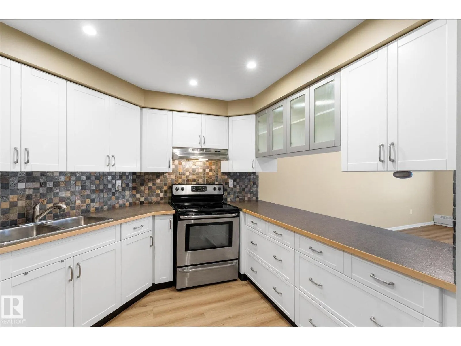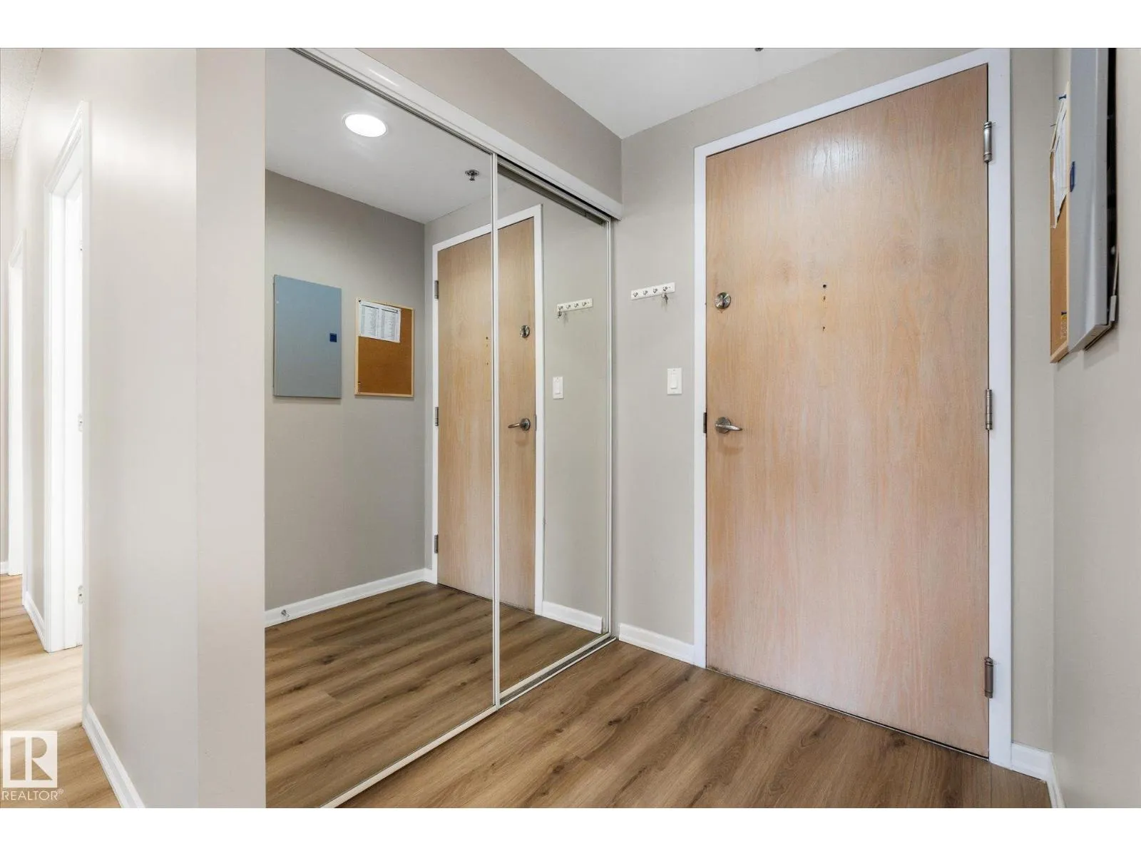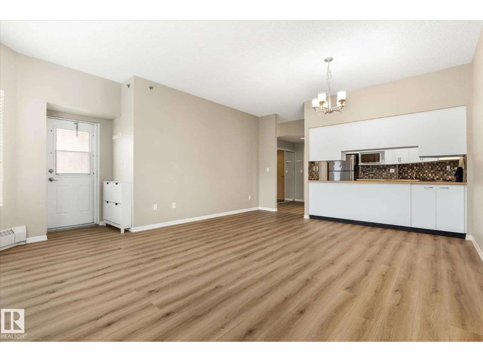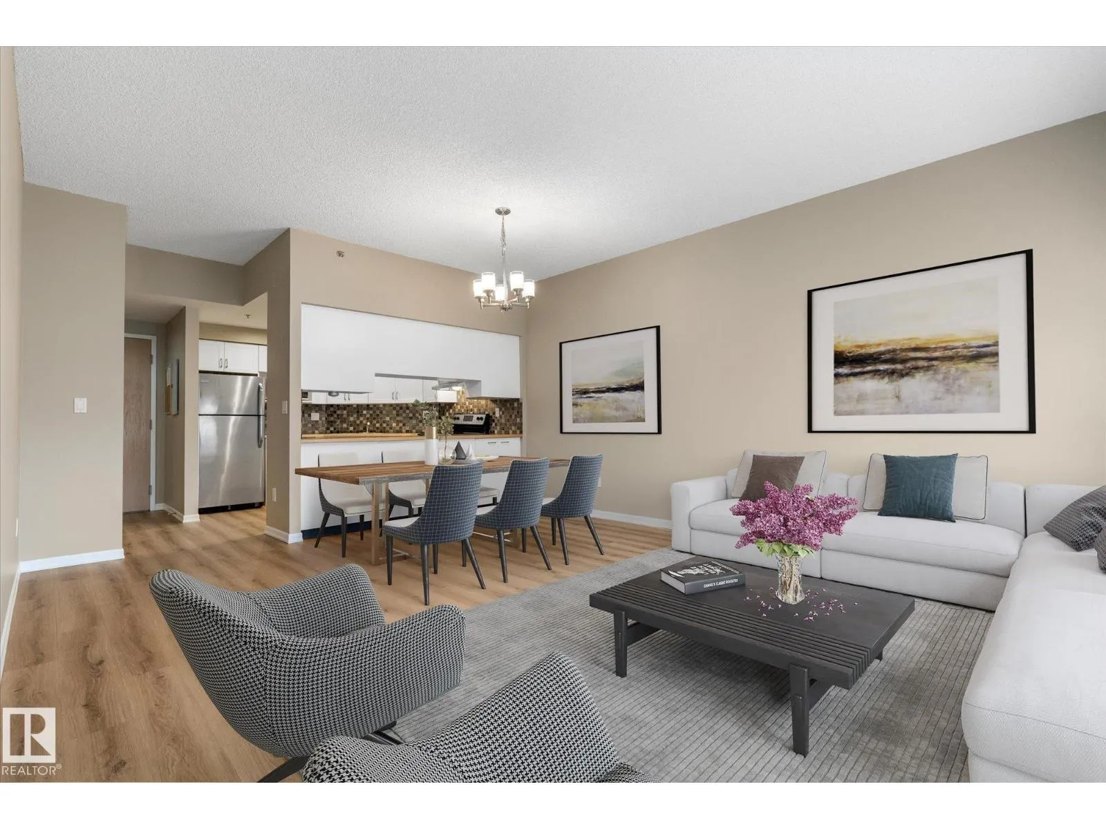Immaculate and move-in ready! This stunning condo feels like a show suite and is located in a highly sought-after concrete and steel building overlooking Edmontonâs beautiful river valley. The updated kitchen features stylish cabinetry, stainless steel appliances, a designer hood fan, and endless counter space that opens to a spacious dining area and bright living room. Large windows flood the space with natural light, and a garden door leads to your patio. Recent upgrades include brand-new vinyl plank flooring throughout. The primary bedroom offers a large walk-in closet with convenient in-suite laundry, plus there is a 2nd bedroom down the hall, additional storage room, and a separate storage cage on the basement level. Heated underground parking includes a car wash bay, and owners enjoy top-tier amenities: library, social lounge, billiards room, craft space, and workshop. Steps from river valley trails, shopping, and transit, this one truly checks all the boxes! (id:27476)