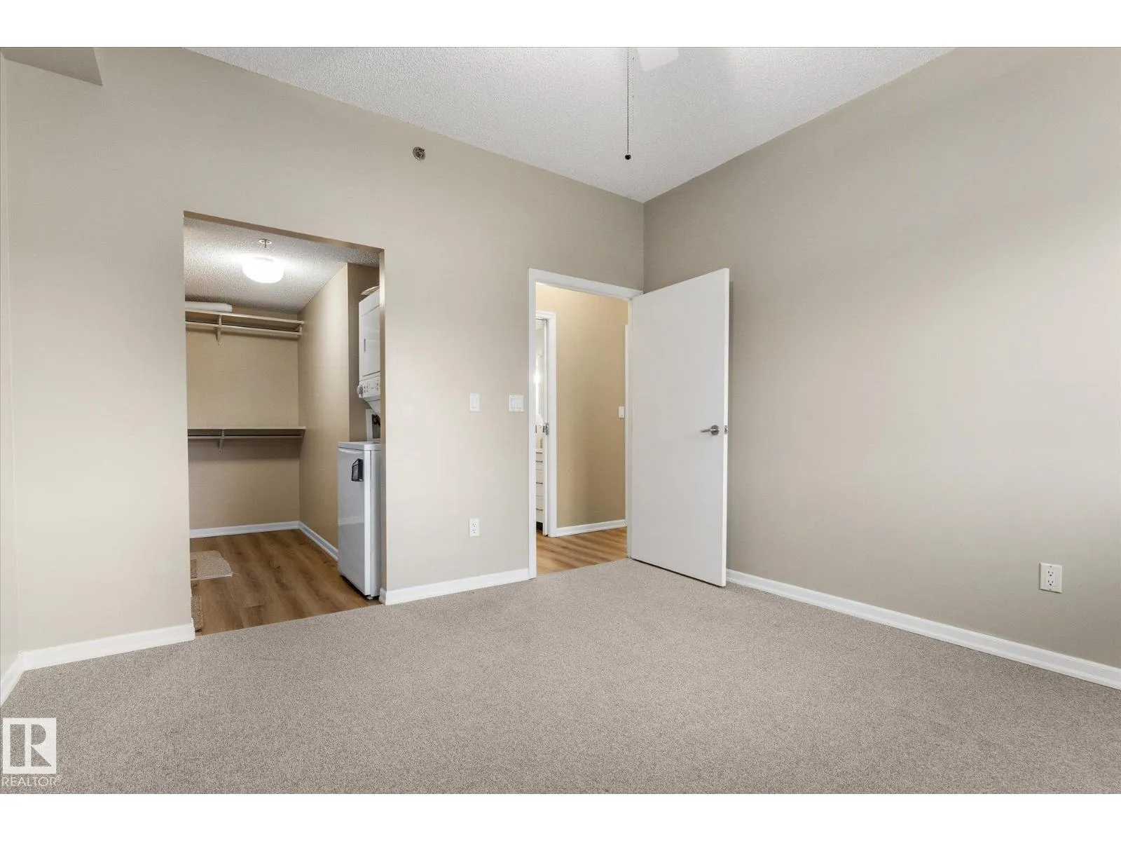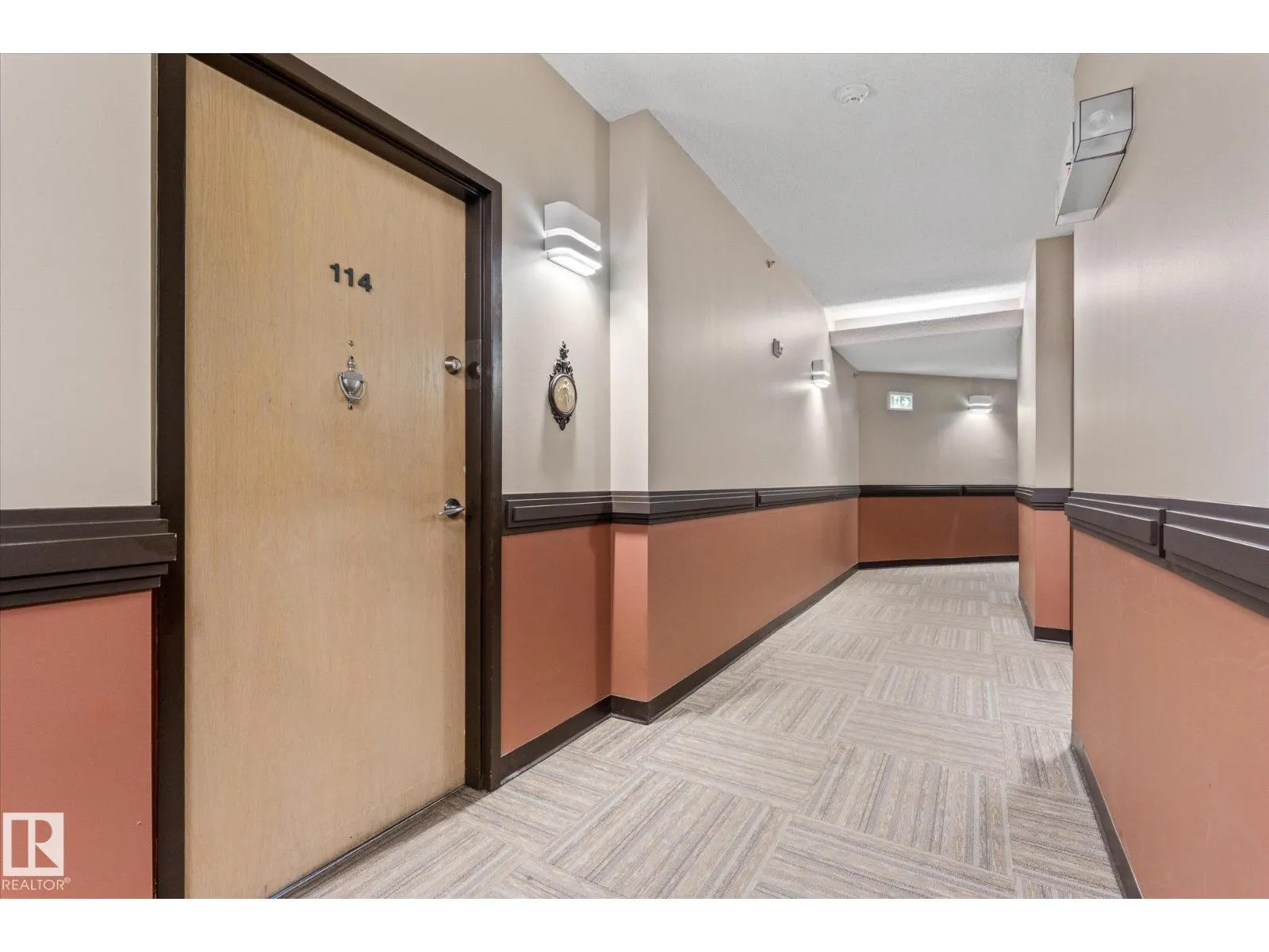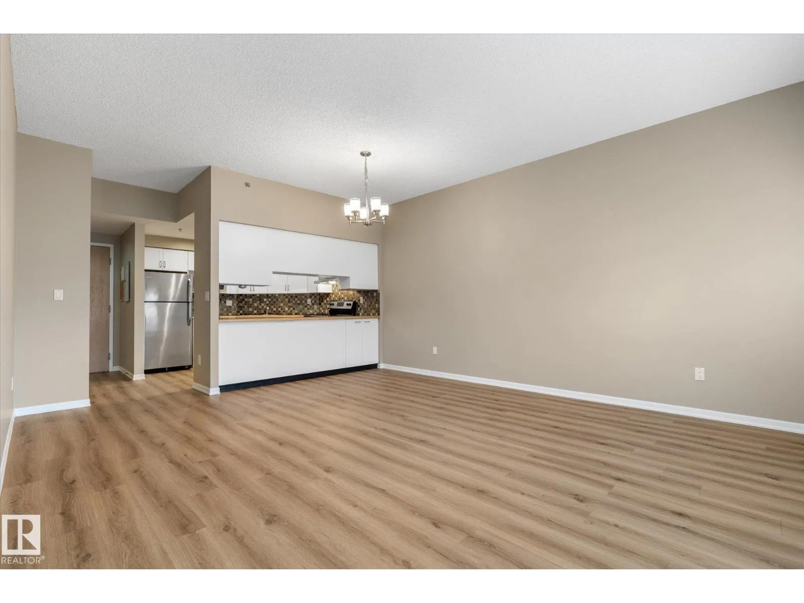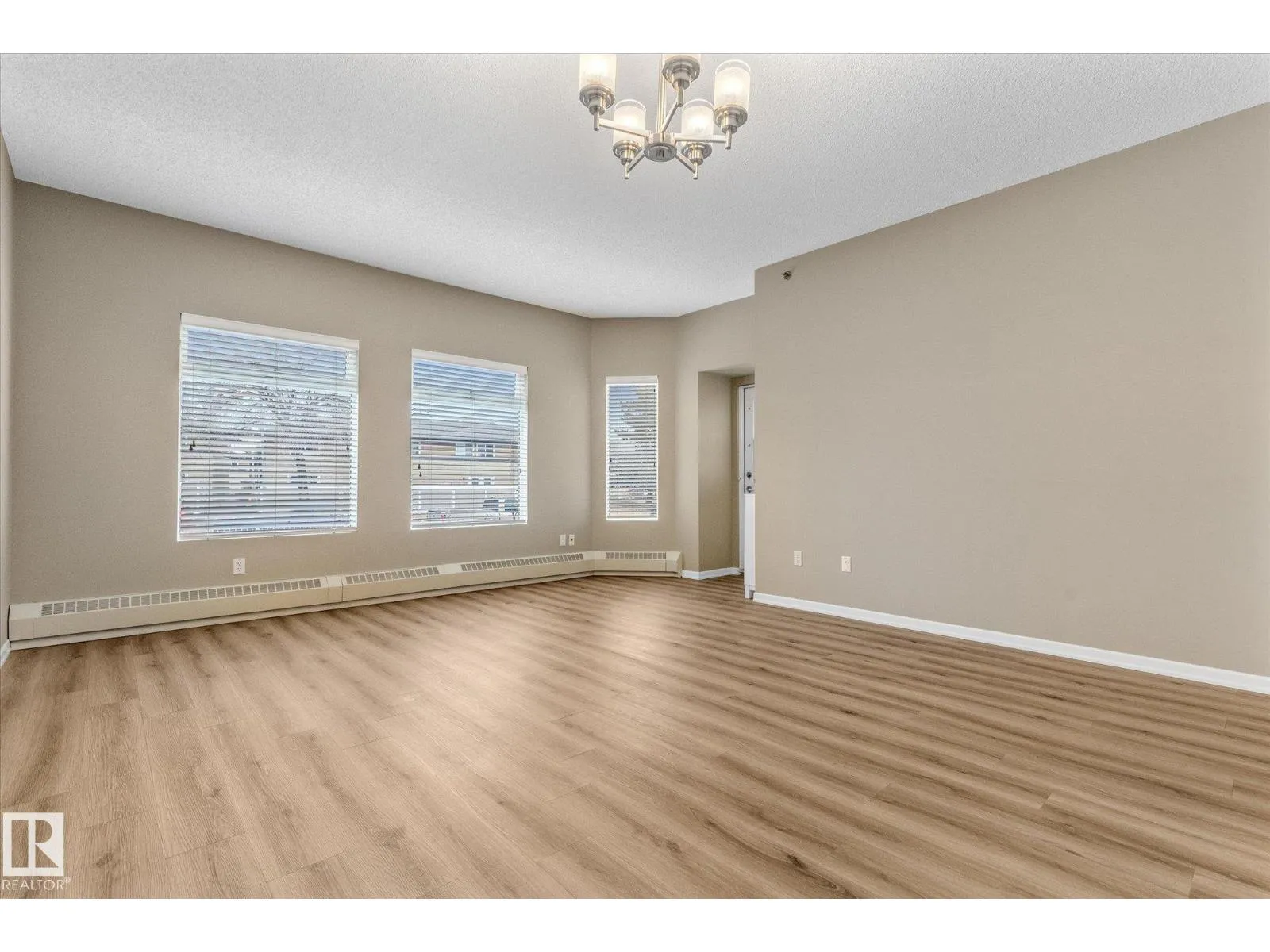 Immaculate and move-in ready! This stunning condo feels like a show suite and is located in a highly sought-after concrete and steel building overlooking Edmontonâs beautiful river valley. The updated kitchen features stylish cabinetry, stainless steel appliances, a designer hood fan, and endless counter space that opens to a spacious dining area and bright living room. Large windows flood the space with natural light, and a garden door leads to your patio. Recent upgrades include brand-new vinyl plank flooring throughout. The primary bedroom offers a large walk-in closet with convenient in-suite laundry, plus there is a 2nd bedroom down the hall, additional storage room, and a separate storage cage on the basement level. Heated underground parking includes a car wash bay, and owners enjoy top-tier amenities: library, social lounge, billiards room, craft space, and workshop. Steps from river valley trails, shopping, and transit, this one truly checks all the boxes! (id:27476)