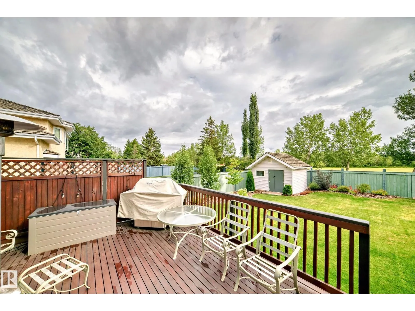 Backing onto serene Wolf Willow Park, this exceptional, elegant family home offers over 4,000 sq ft of refined living space. With an impeccably landscaped yard and private gate access to the park, the tranquil setting is a remedy for the soul. An exquisite chef inspired kitchen (with newer appliances), sunlit dinette and a spacious family room all have a view of the park. A blend of luxury and lifestyle, this home includes a stunning primary suite with dream walk-in closet/dressing room, gorgeous ensuite, two additional bedrooms, and an ultra-efficient laundry room with extensive built-in storageâideal for busy family life. Elegant coffered ceilings, custom California Closets throughout, and many thoughtful upgrades elevate this home to an exceptional standard. The developed basement is both impressive and highly functional, a refined space for living and entertaining. A triple tandem garage with hot/cold taps, drain, and impressive ceiling height is the finishing touch to this beautifully appointed home. (id:27476)