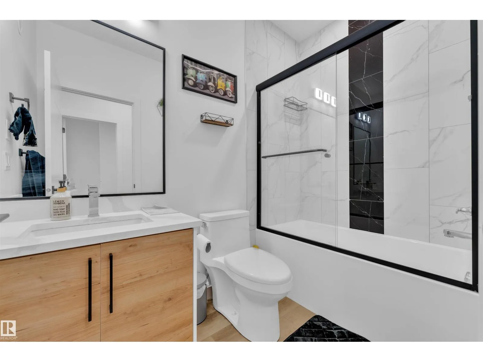 *2-BEDROOM LEGAL SUITE* *MAIN FLOOR BEDROOM AND FULL BATHROOM* Welcome to this beautifully designed house featuring modern finishes and thoughtful details throughout! The main floor offers a bedroom and full bathroom, ideal for guests or extended family. The contemporary kitchen is equipped with top-of-the-line appliances, complemented by sleek glass railings and a covered deck for year-round enjoyment. Upstairs, youâll find a spacious primary suite with its own ensuite, two additional bedrooms, another full bathroom, and a cozy bonus room â perfect for family relaxation. Convenient second-floor laundry with sink adds everyday ease. The home also includes a 2-bedroom legal basement suite for rental income or extended living, a double detached garage, and central air conditioning for ultimate comfort. Transit and school bus pickup right in front of the house! Located just minutes from The Hills Plaza for shopping and dining, this home truly combines modern style, functionality, and investment potential! (id:27476)