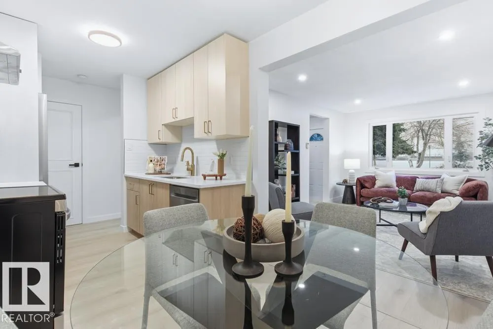 Welcome to this beautifully renovated two-storey townhome in the desirable complex of Callingwood Court. Featuring 3 bedrooms and 1.5 bathrooms, this stylish property has been completely updated with high-end finishes and a functional layout. The main floor offers a spacious living and dining area centered around a modern electric fireplace, along with a beautifully upgraded kitchen showcasing stainless steel appliances, elegant countertops, and sleek cabinetry. A convenient half bathroom completes the main level. Upstairs, youâll find three comfortable bedrooms and a full 4-piece bathroom. The finished basement provides additional living space and includes a wet barâperfect for entertaining. Ideally located close to West Edmonton Mall, major transit lines, and quick access to Whitemud Drive and Anthony Henday, this move-in-ready townhome offers exceptional style, comfort, and convenience in one of Edmontonâs most accessible west-end locations. (id:27476)